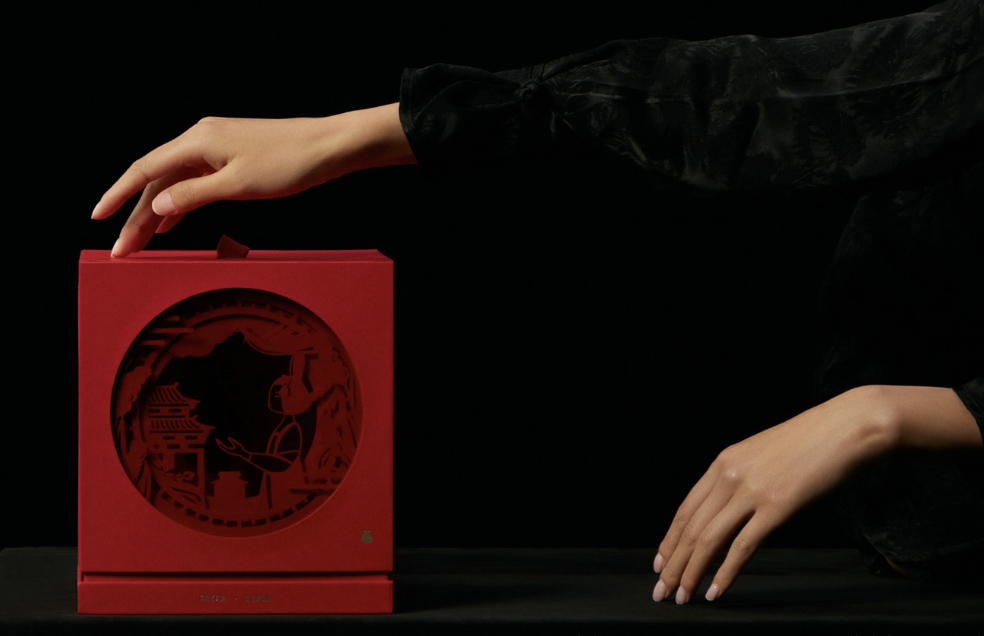 这次礼盒的设计,四面刚好是四段与非遗有关的故事,首先是三草两木之前联名过的非遗花丝技艺和油纸伞技艺。其中还包含了拜年贺岁的场景,唐宫娃娃和剪纸小老虎一起点亮灯笼拜年,寓意吉祥。礼盒采用了3层剪纸的灯笼造型,轻轻按下按钮,灯笼就能被点亮,红光四溢喜庆非凡,特别有新春的氛围感!在工艺方面,唐宫夜宴礼盒也非常考究,四面镂空,还有东方红结合烫哑金的最高规格配色。细节元素的构思中,充分融合了唐宫夜宴、油纸伞、红藜麦穗、老虎(新一年生肖)等元素,最实用的就是,礼盒还配有8枚限定红包,让美一代代传承不息。