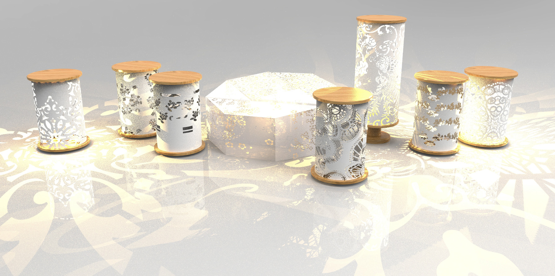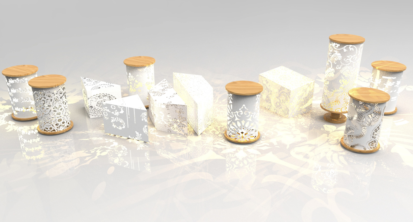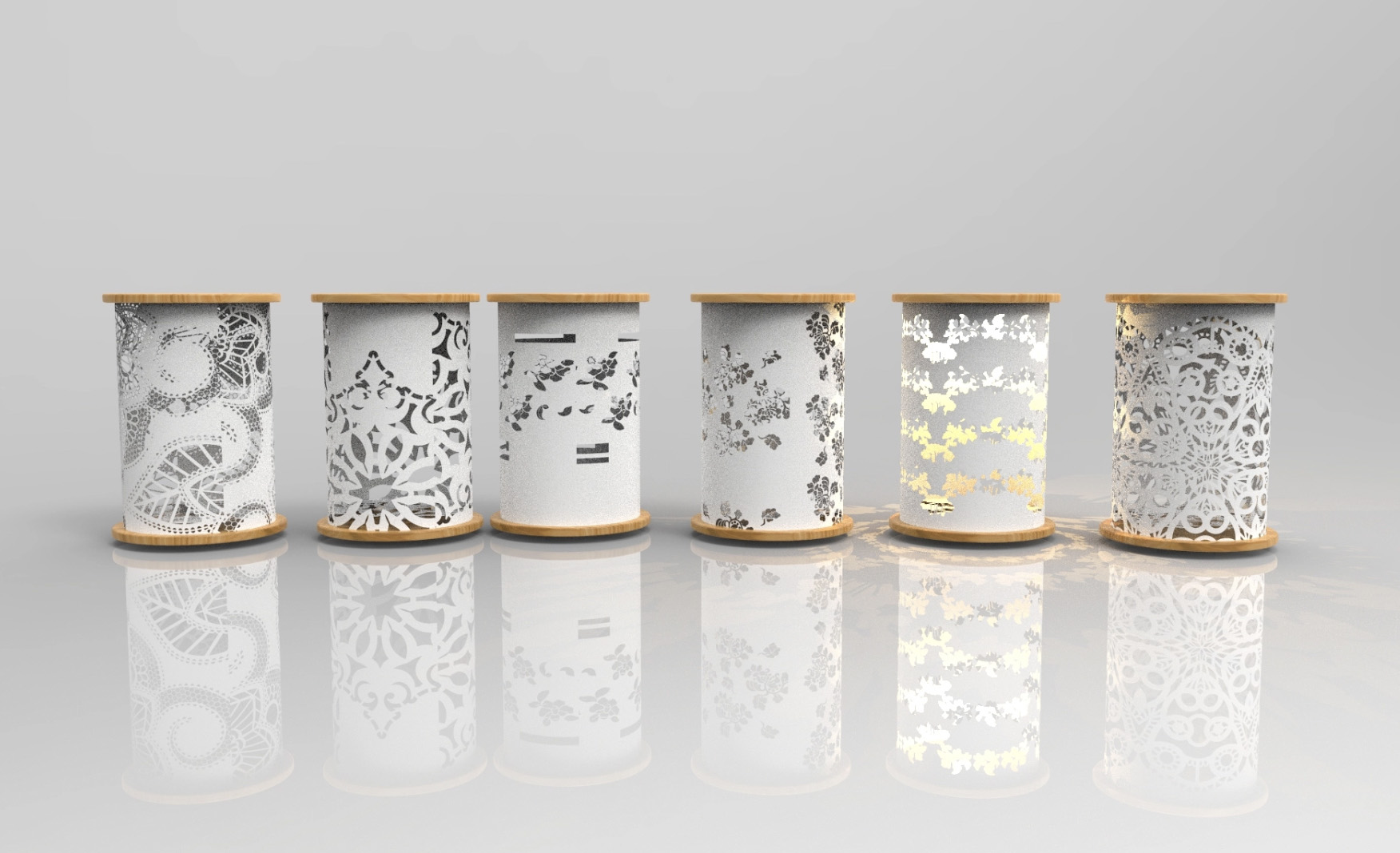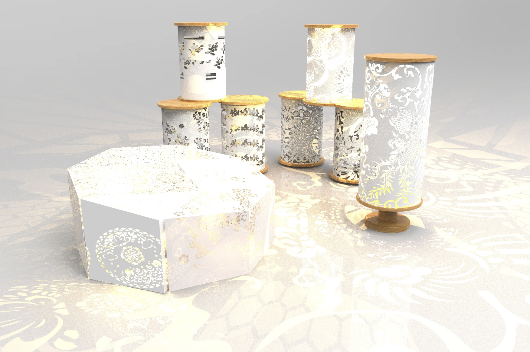 灯光:可以选择细小灯珠,也可以选择稍大的灯泡,灯光颜色可以固定暖黄(仿阳光照射效果)也可以是变换颜色的呼吸灯,当光透过剪纸外壳射出,将会映在周围美丽的花纹影子。