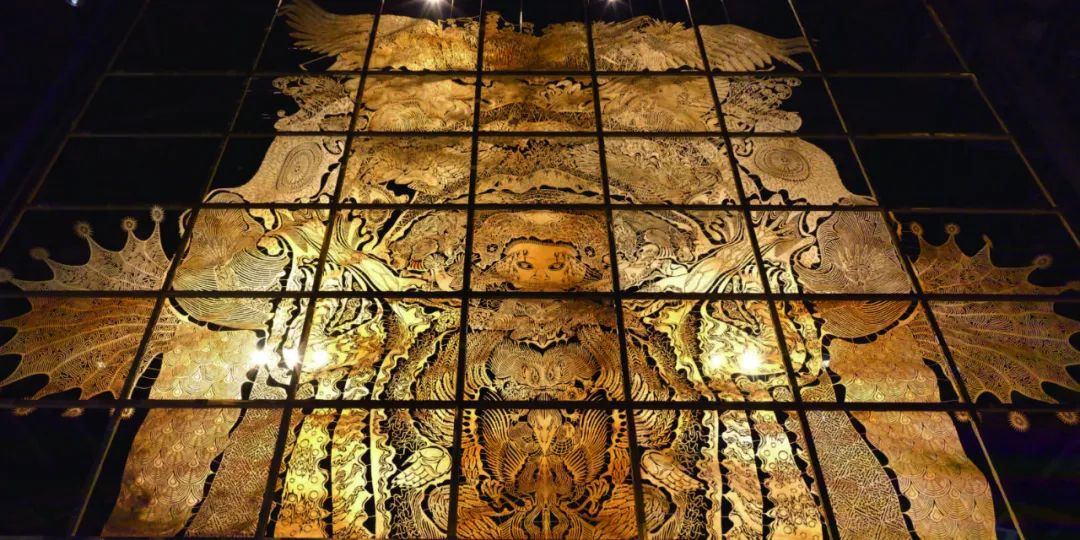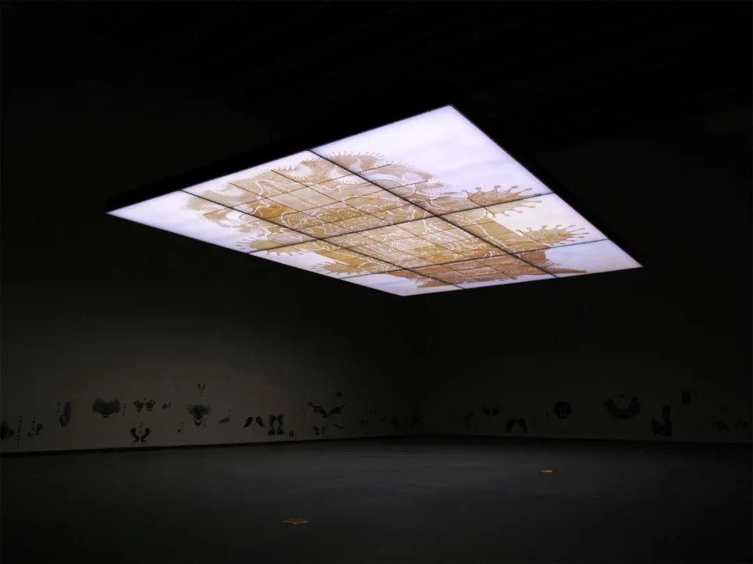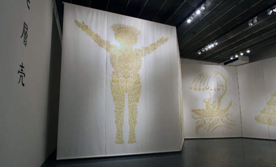 图 2 《九重天》548×391×23cm 手工镂刻牛皮、LED灯箱 ,2008 ,前波画廊展览现场