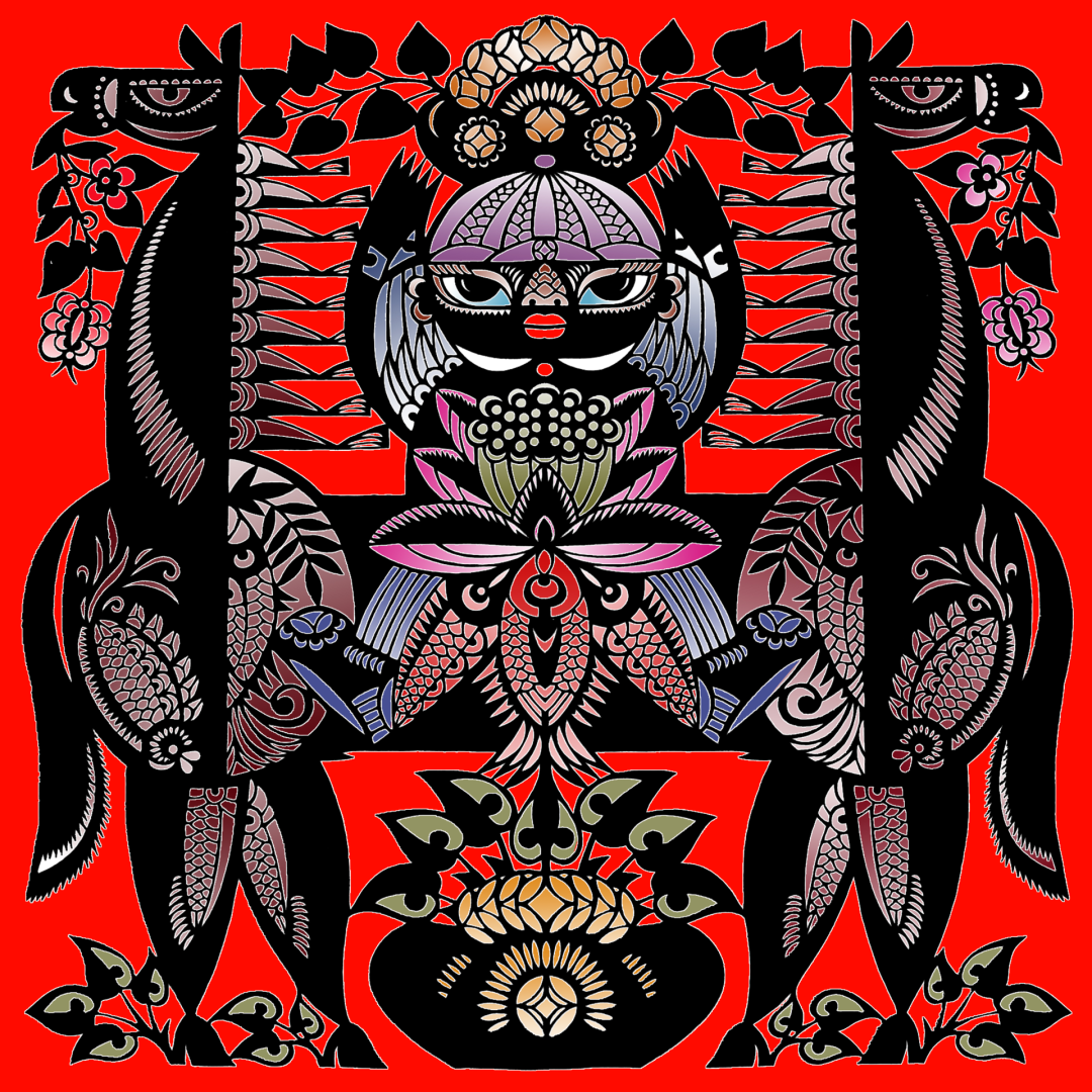 一、尊自然之径采撷云贵地域万物生存与展衍中的华彩和形色,力求形色之间的自然而然,以达作品中的活力展现。无论其剪纸艺术中的人物眼神甚至花草卷舒皆属此道。