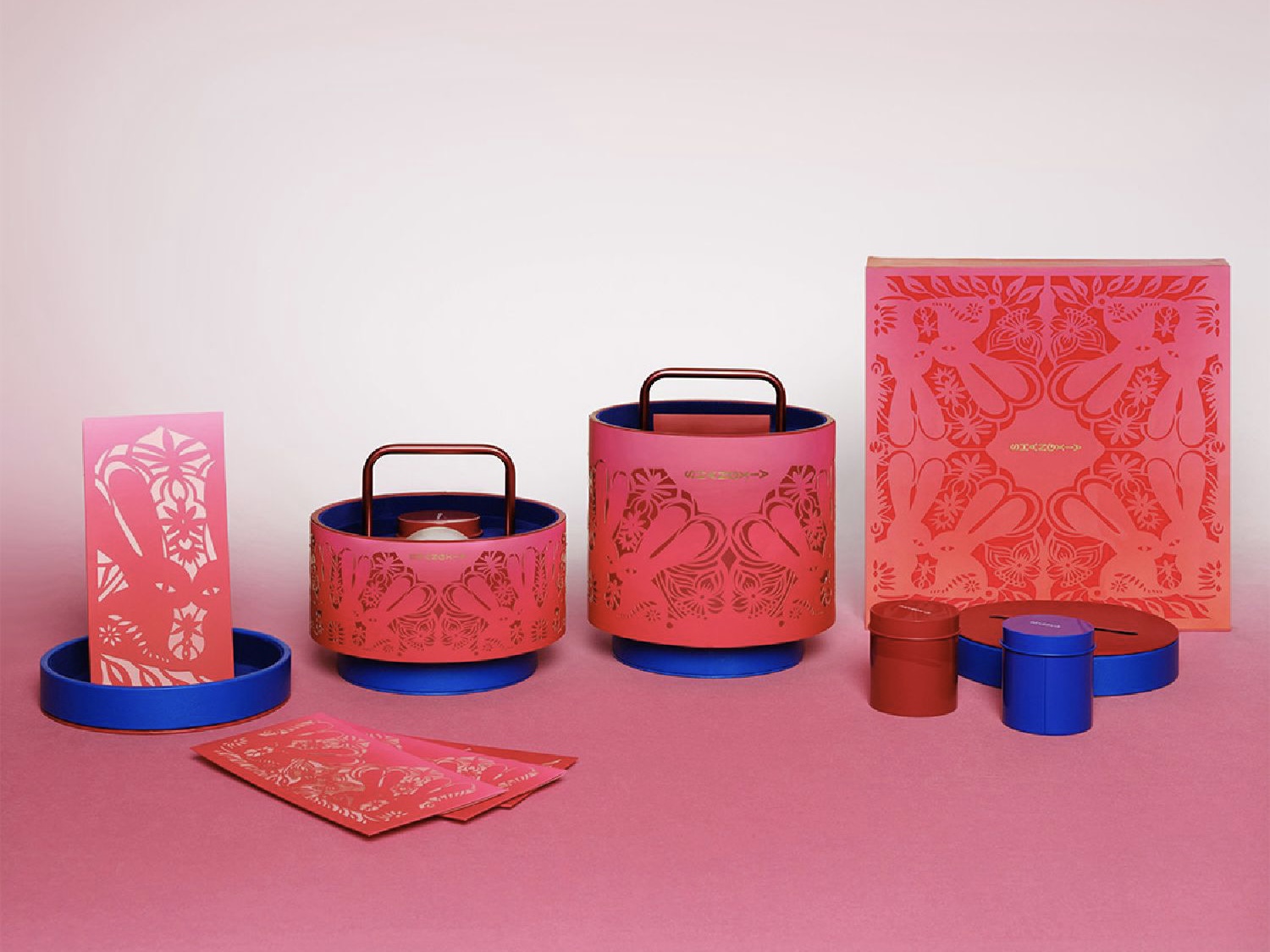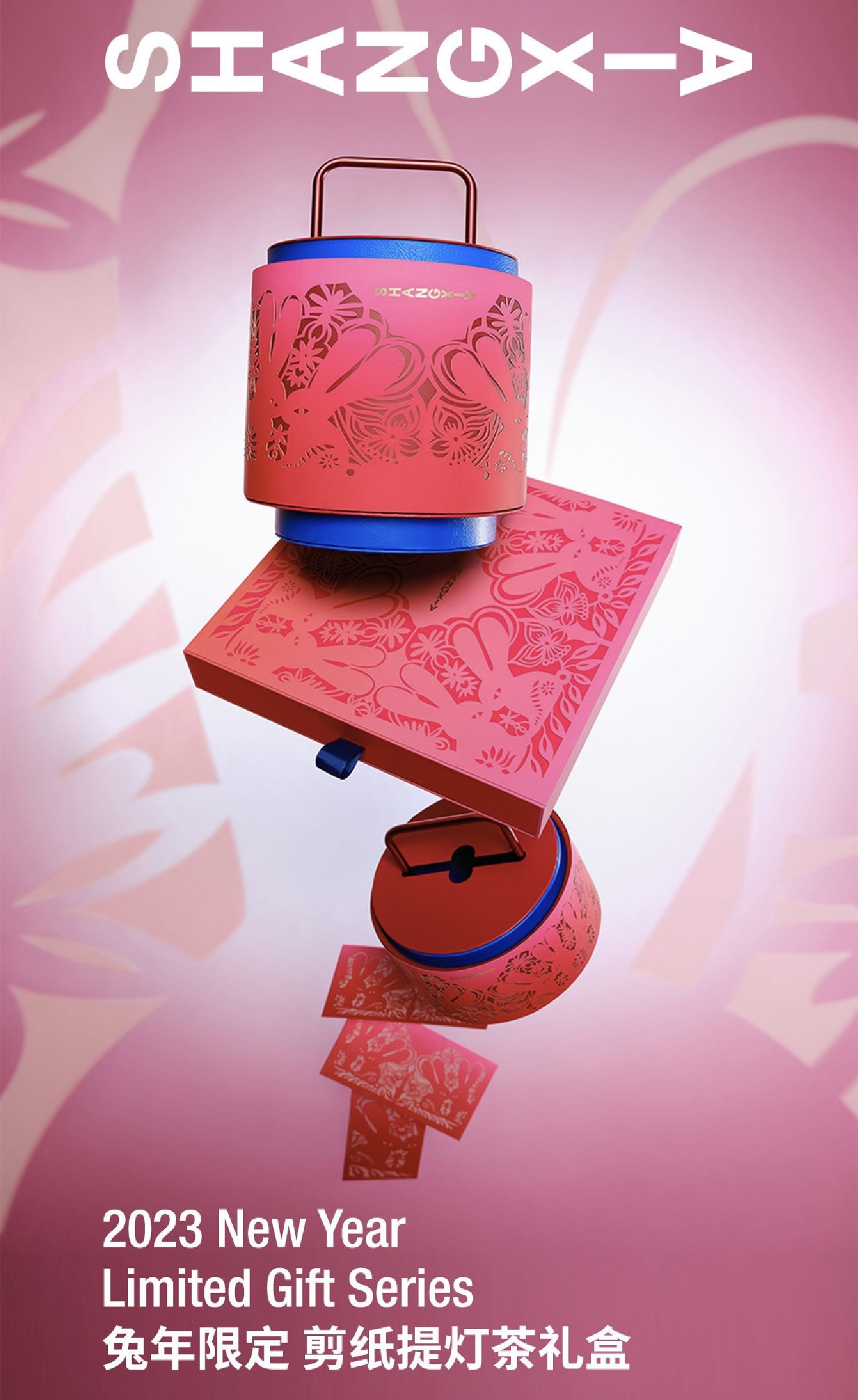 提灯茶礼盒剪纸限定款。光明,新生的隐喻,当灯火照亮城市街巷,家与爱尽可抵达,茶礼盒造型源自东方经典提灯,取灯火意象寄予温暖和希望。轻提灯笼,为你点亮归途,浪漫抵达。新年为礼遇季节特别设计兔年剪纸红包,对称与镂空结构空灵别致,将新年意趣和诚挚祝福珍藏。[1]