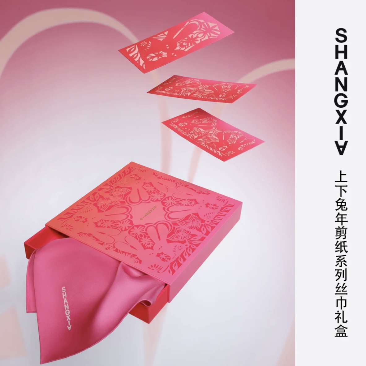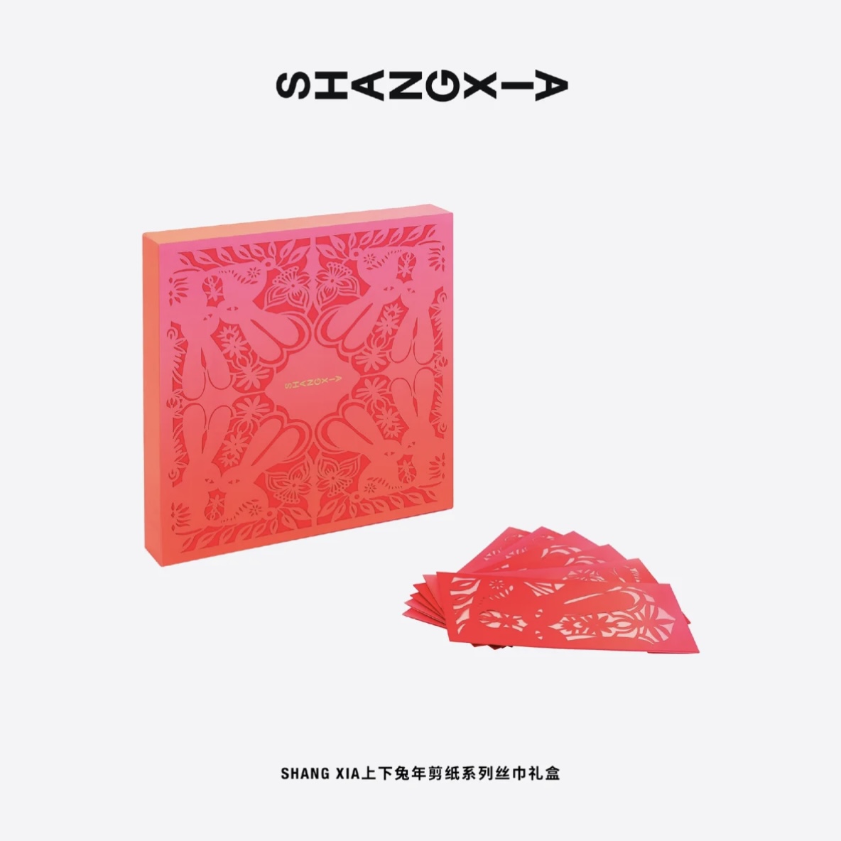 兔年轻盈到来,SHANG XIA上下捕捉生趣灵动的兔元素以东方剪纸艺术重现,诚献新年礼盒系列。当光影透过镂空的剪纸洒落,愿新年诗意浪漫,自在纯真。礼盒设计与中国剪纸艺术家陈粉丸为农历兔年创作的兔元素图案遥相呼应,精湛工艺凝练为开创性艺术表达,同样是SHANG XIA上下的设计灵感。