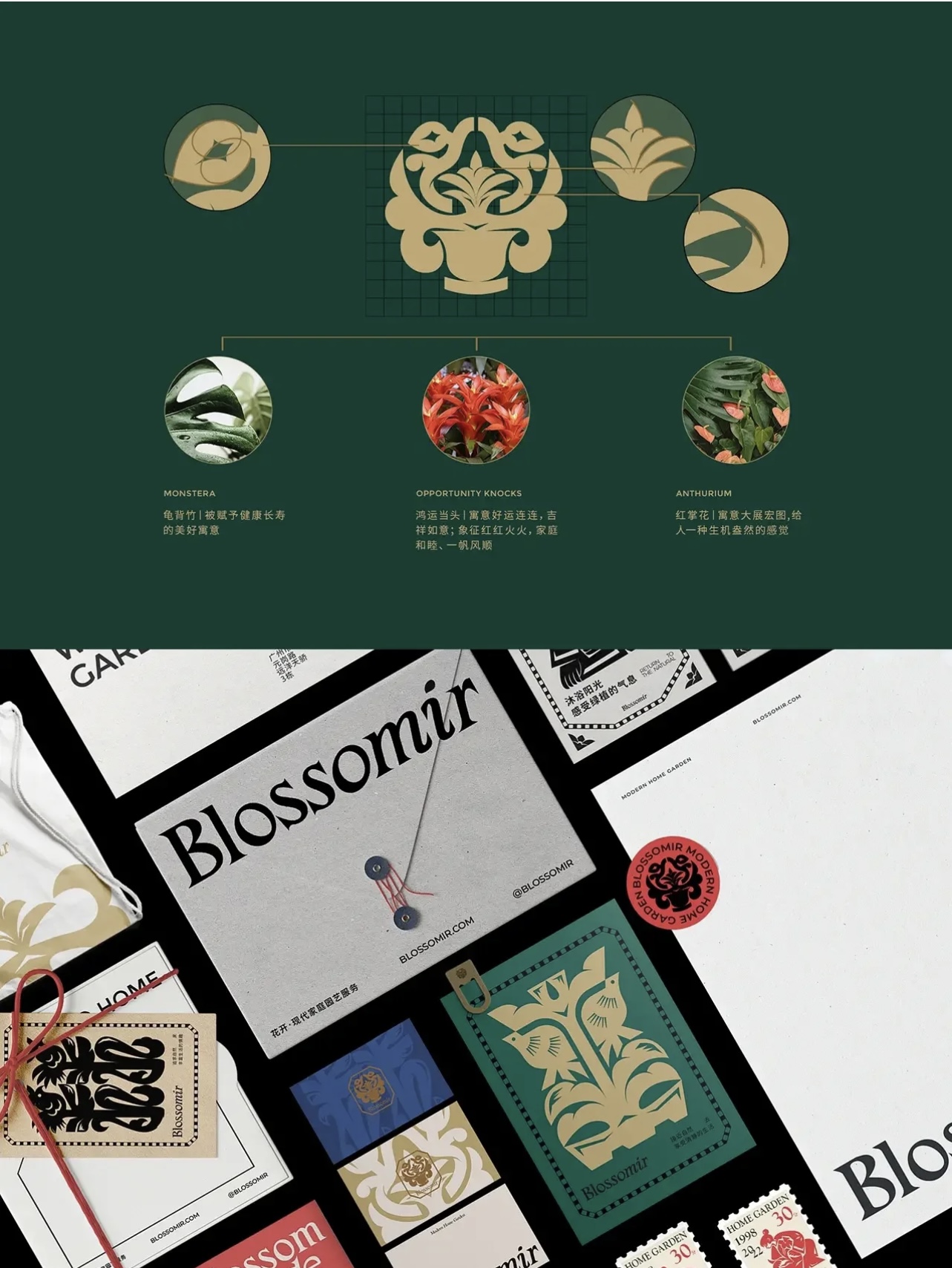 作为一家以传统园艺为出发点的现代家庭园艺服务品牌,Blossomir 倡导“花木有情”的品牌理念,认为人是自然的一部分,花木皆有情。从古至今,中国人都喜欢把人的情感寄托于花木,这是属于我们独有的情感表达,也为Blossomir的品牌视觉带来了灵感和启发。