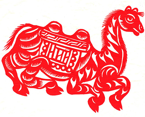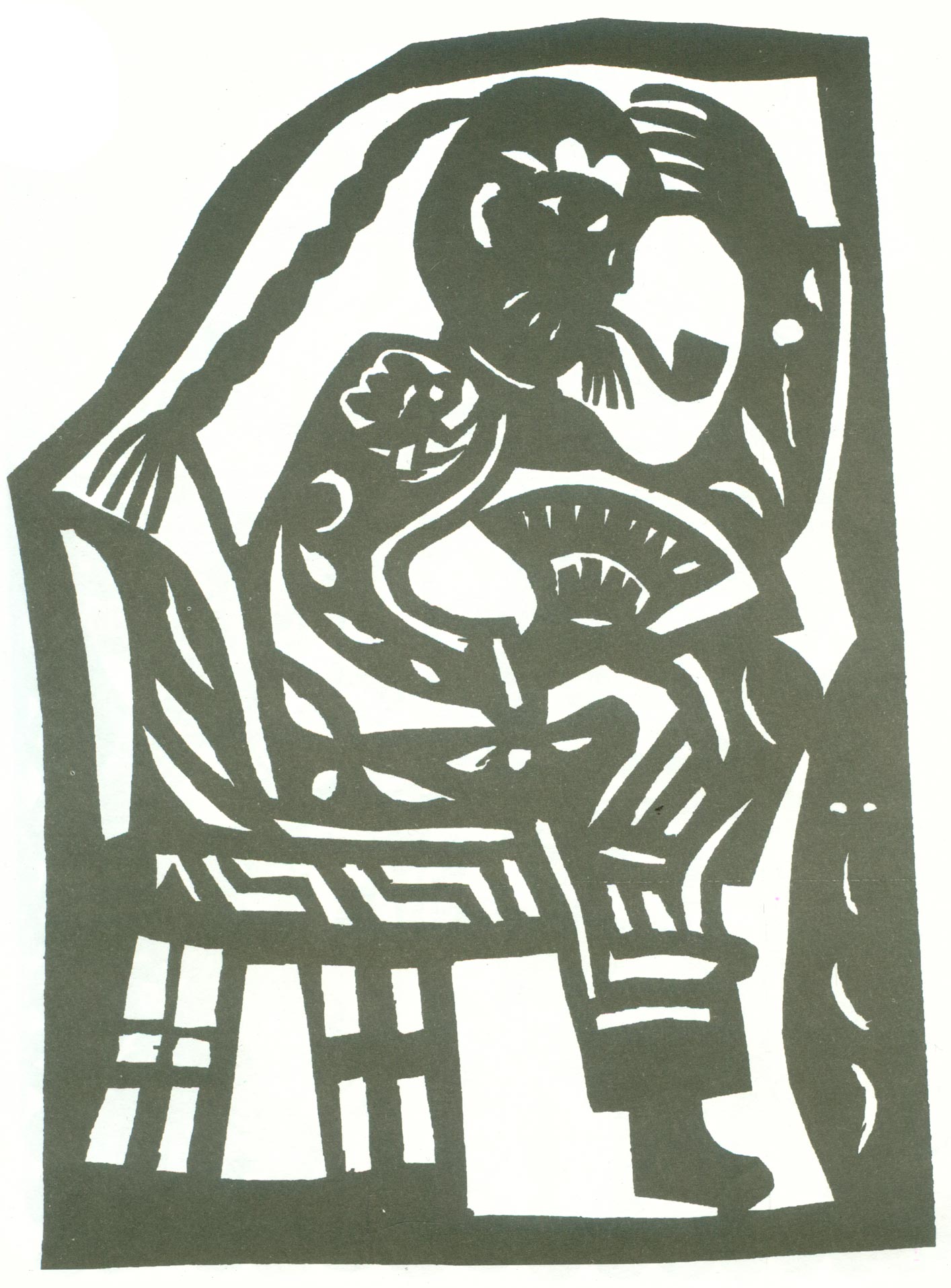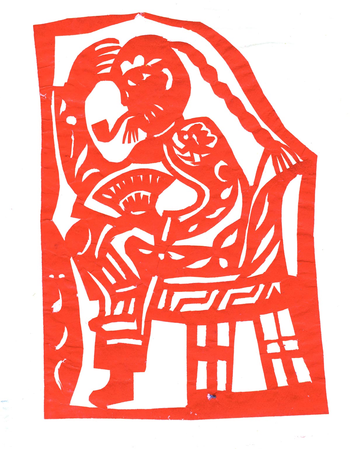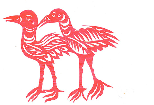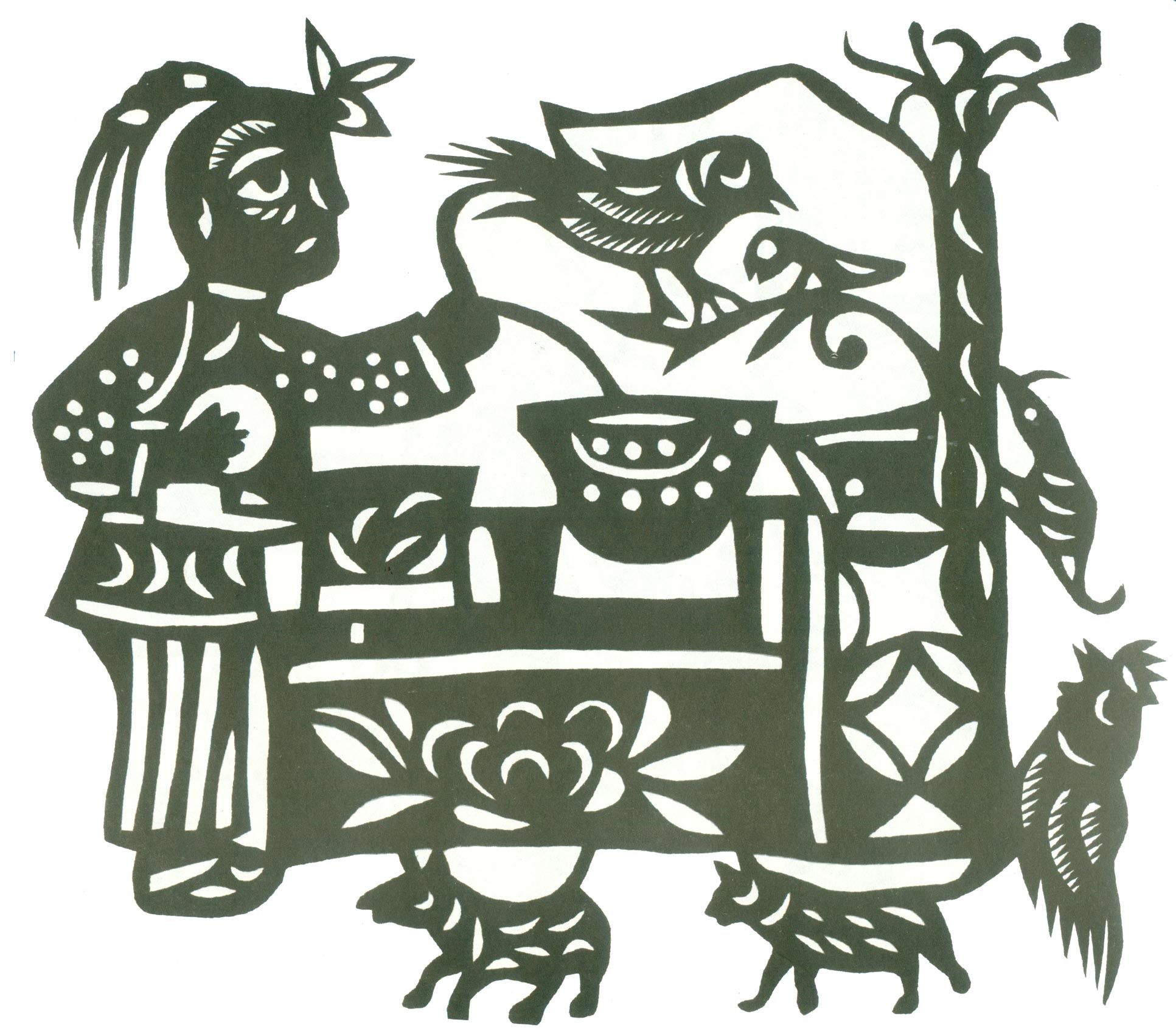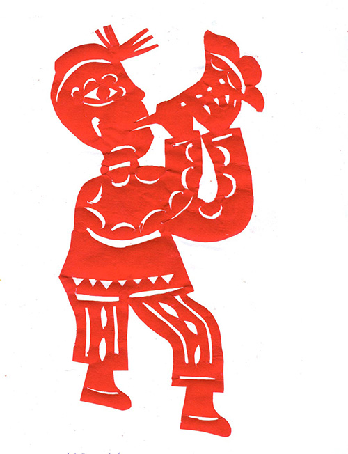 常振芳剪纸中的花草动物较好地传承了传统花草动物变形、复合、添加的造型特点。古朴,神奇。她剪的人物生动稚趣,生活情趣浓郁。