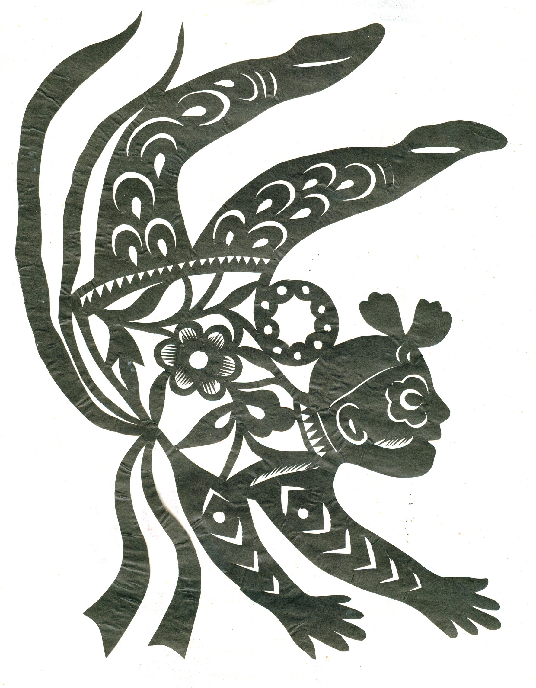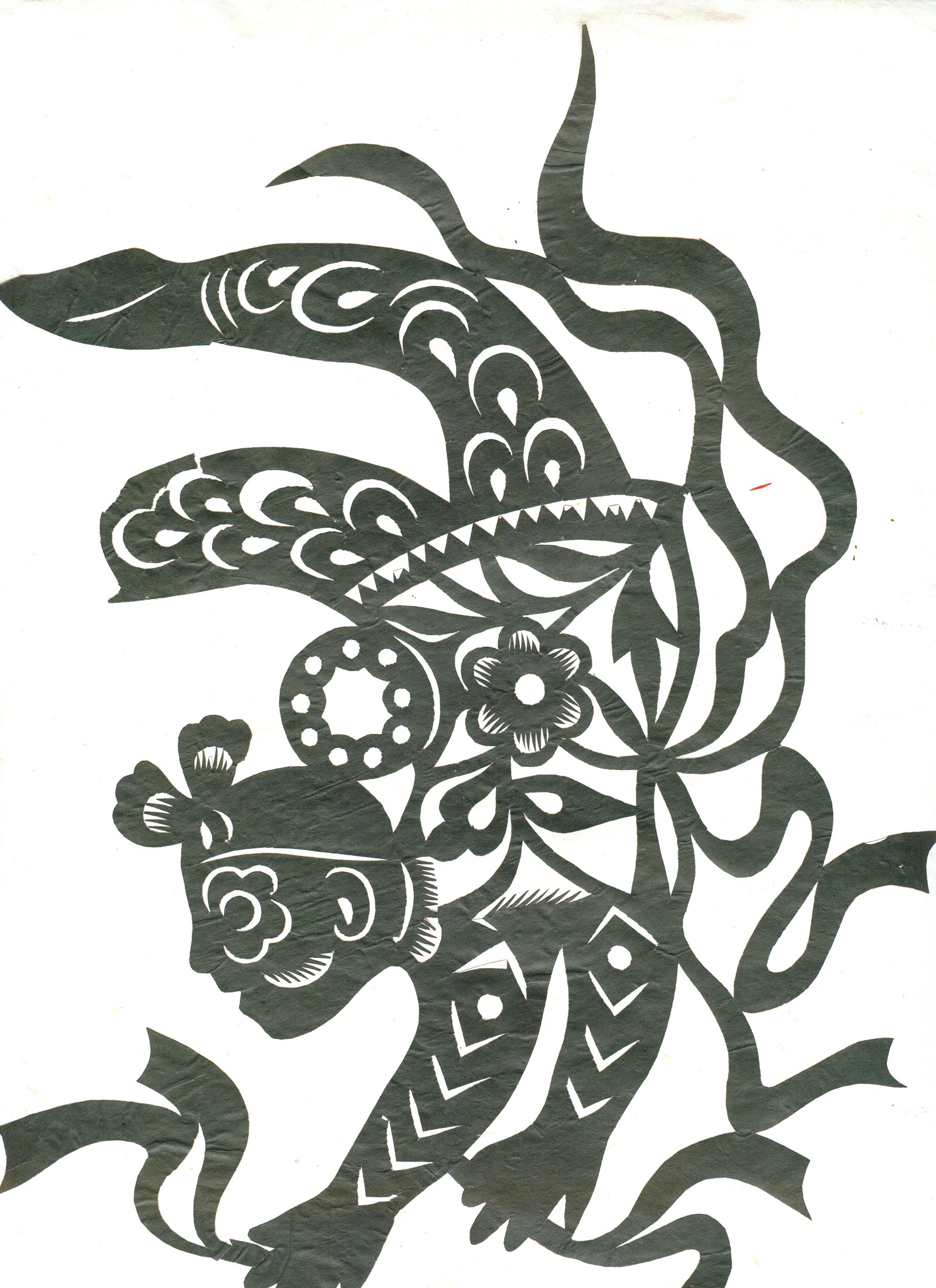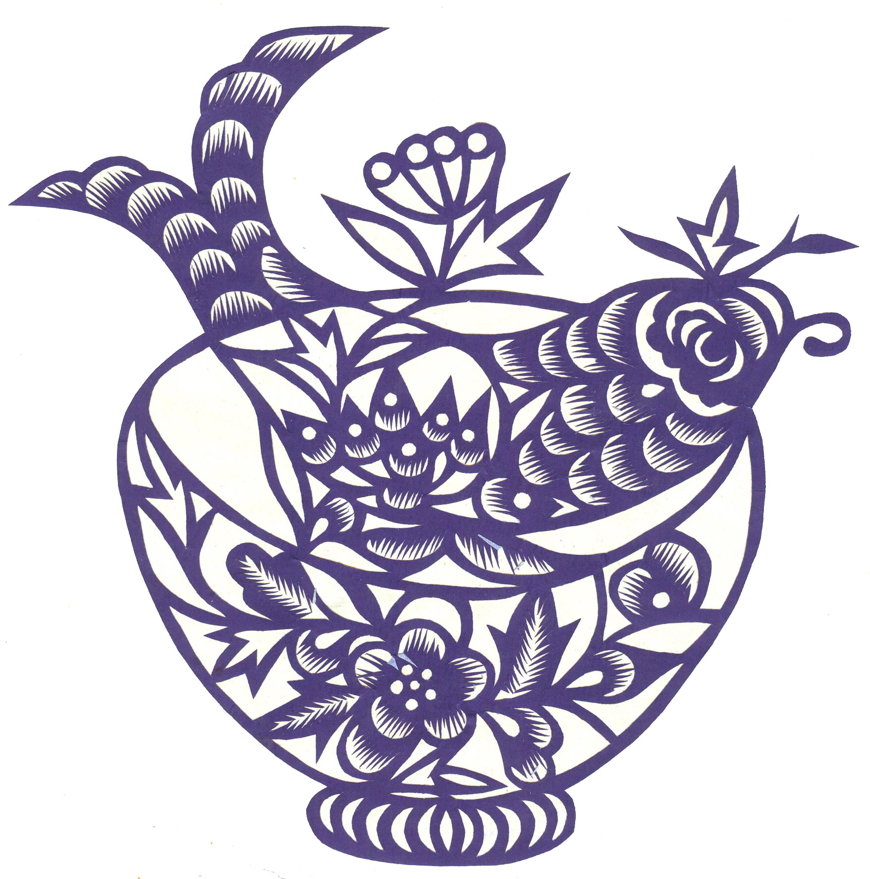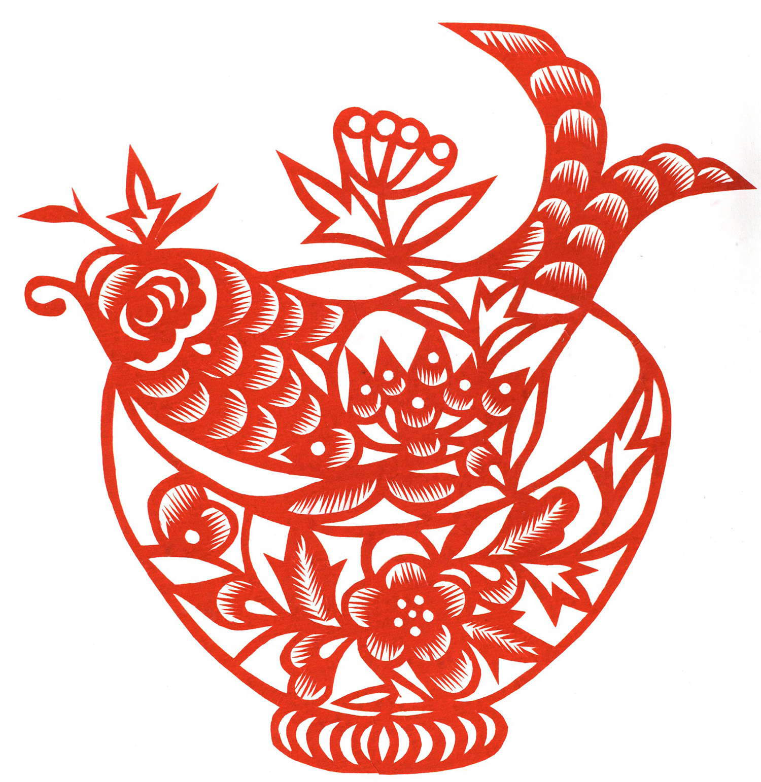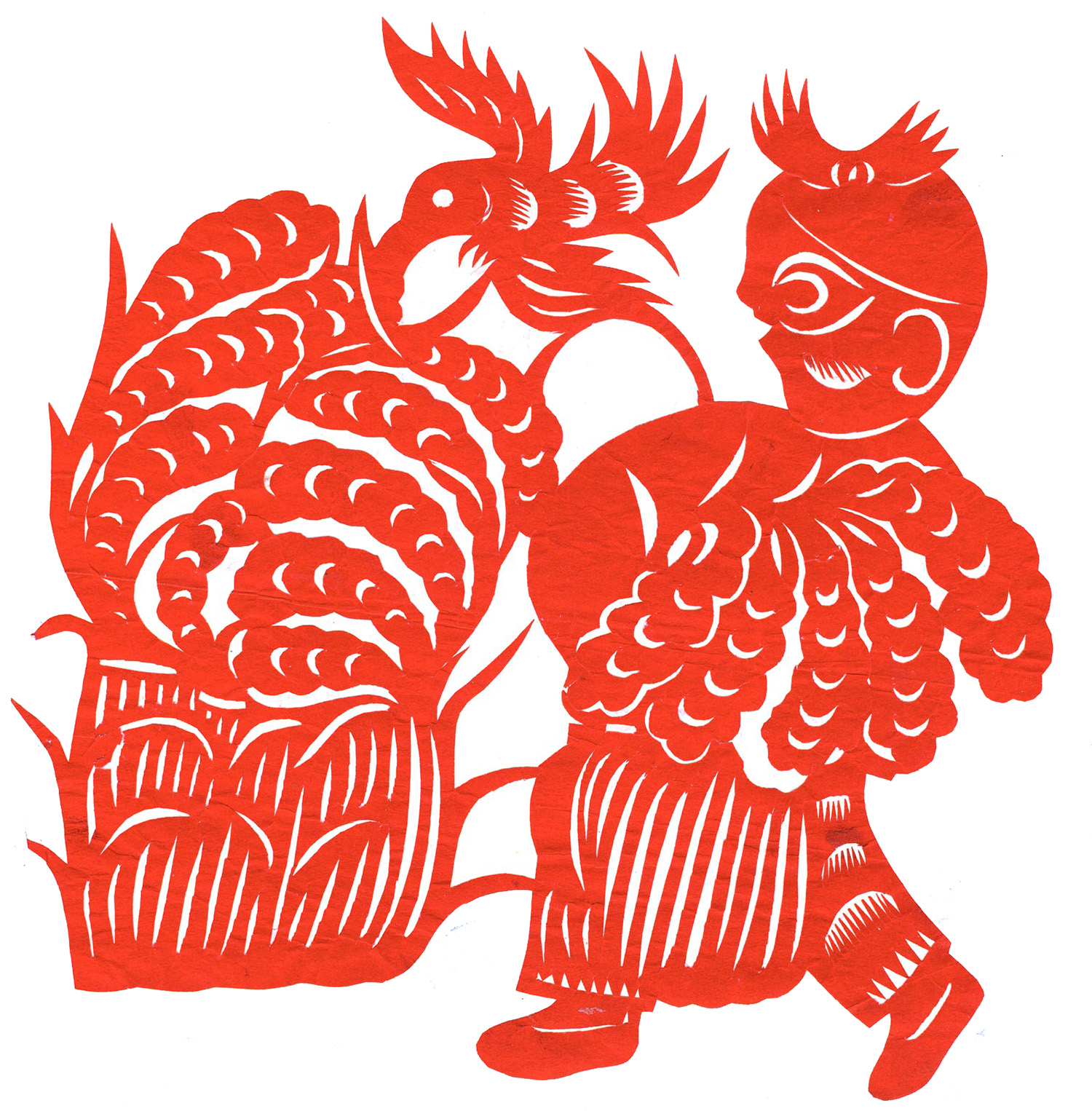 李秀芳在不断地学习和实践下,练就了坚实的民间美术造型基础,不但“女红”活计娴熟,而且在公公的指点下还学会了做纸扎、画箱柜画、炕围画、捏面和花做鸡蛋壳镶嵌画。所以她的剪纸既有传统的语言程式又有绘画的造型观念,加之剪功娴熟利落,细腻精巧,更添加了剪纸的艺术感染力。