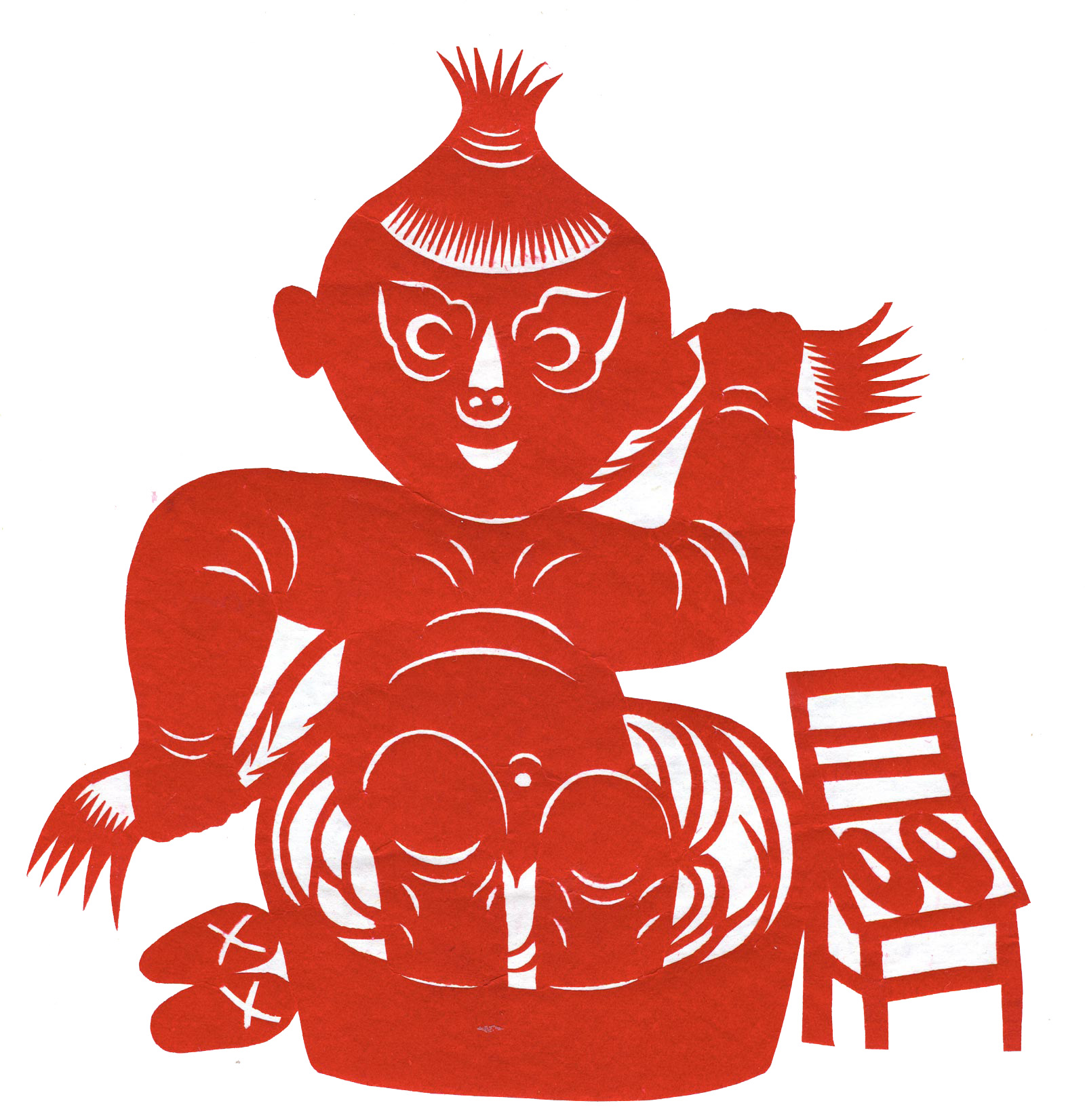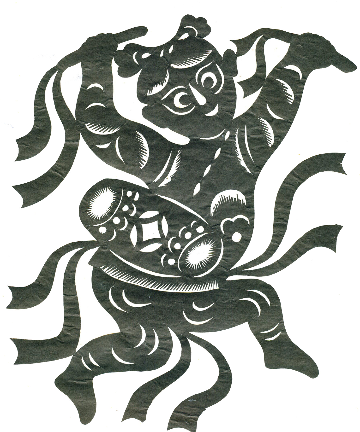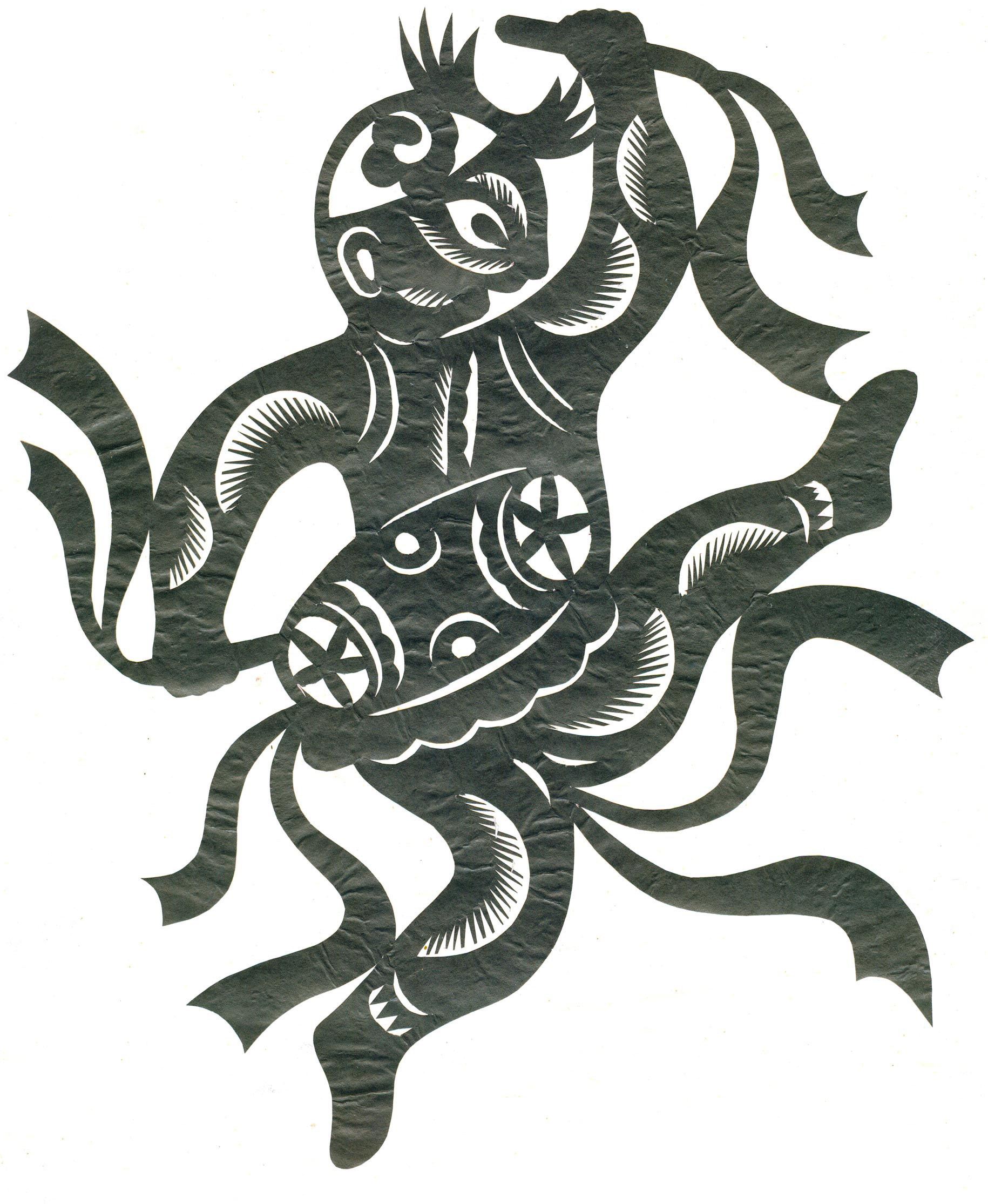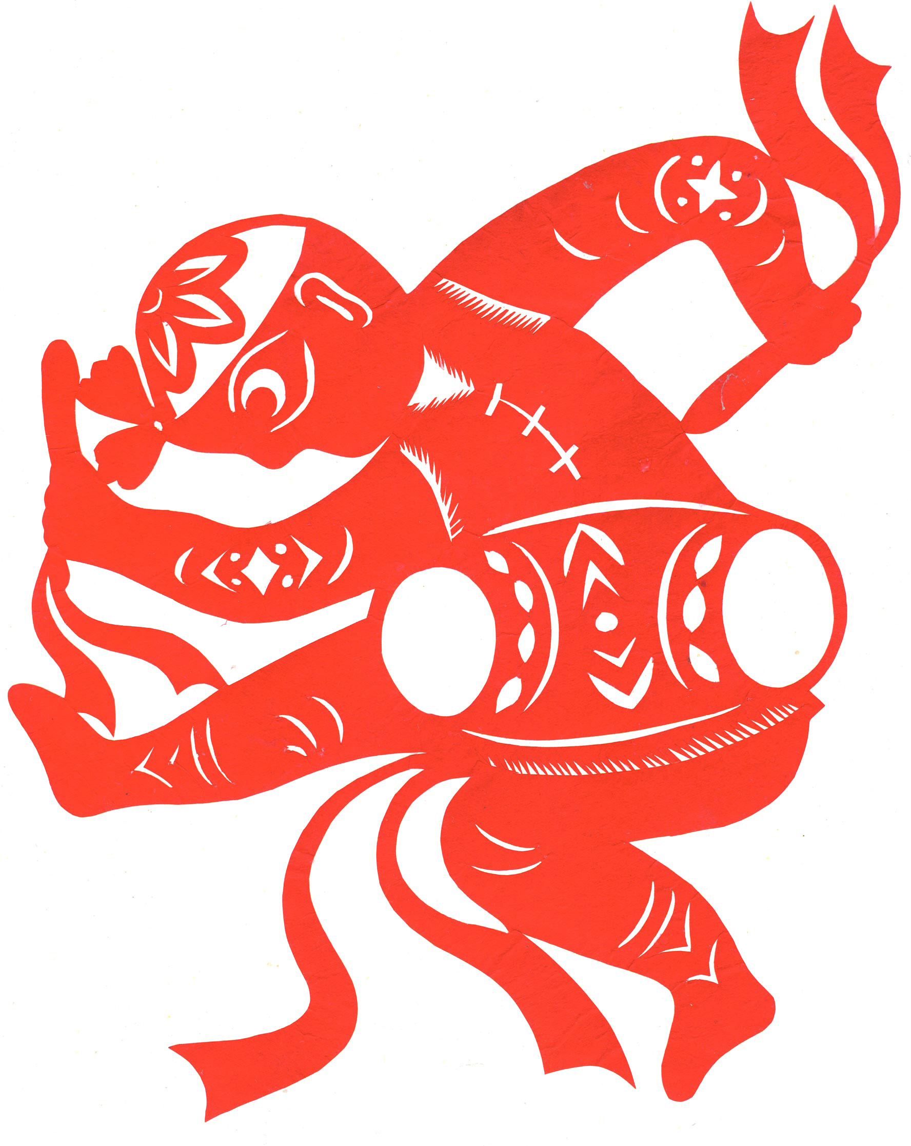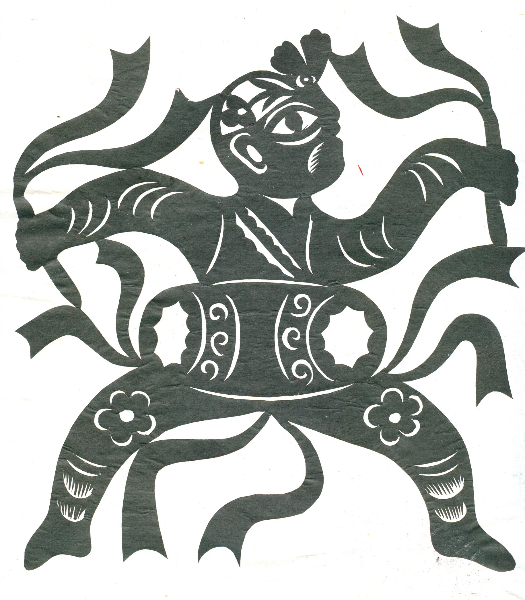 李秀芳在不断地学习和实践下,练就了坚实的民间美术造型基础,不但“女红”活计娴熟,而且在公公的指点下还学会了做纸扎、画箱柜画、炕围画、捏面和花做鸡蛋壳镶嵌画。所以她的剪纸既有传统的语言程式又有绘画的造型观念,加之剪功娴熟利落,细腻精巧,更添加了剪纸的艺术感染力。