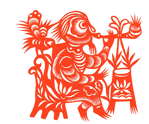 突出艺术特色:剪纸作品内容丰富,造型质朴生动,剪工娴熟优美