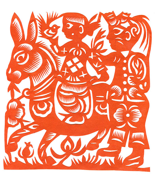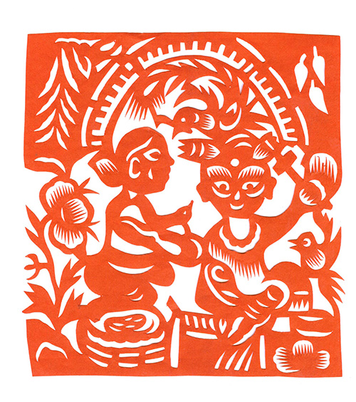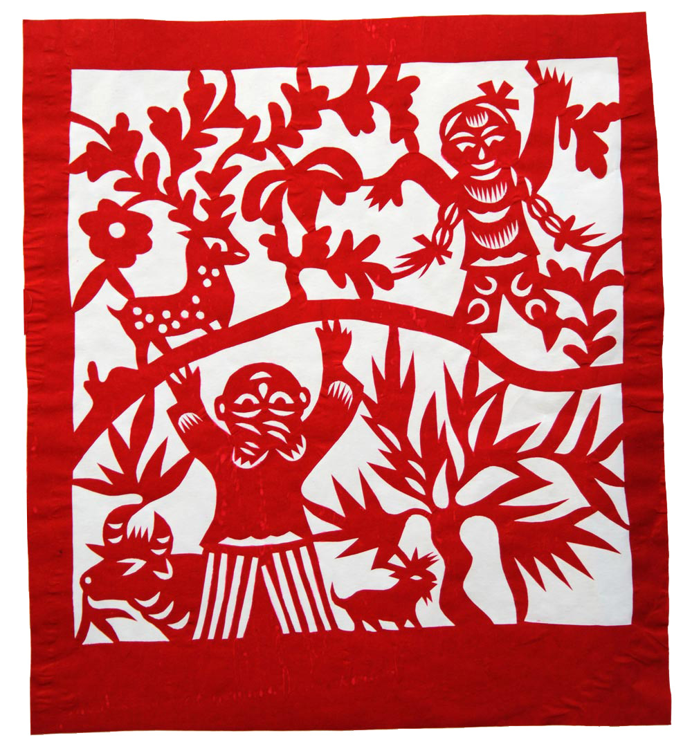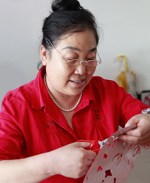 李福爱生性爱说爱唱,更爱剪花,小时剪得窗花精美细腻,常受村人的夸奖。但她真正意义上的剪花是从1988年开始的。那年春节县文化馆美术老师路过马家沟陈家,看到陈家一院三孔石窑的窗子上贴满了窗花,非常引人注目。一打问是主妇李福爱剪的,还了解到李福爱不但剪纸好,还能唱民歌,会扭秧歌,搬旱船,跑毛驴等多项民间文艺表演,经过文化馆认真考察,把她家确立为黄土风情系列活动的一个接待点。为了进一步提高李福爱的剪纸水平,1988年夏让李福爱参加了县文化馆举办的剪纸和绘画培训班。在培训班,她认真向老一辈剪纸能手学习,并得到了高金爱、李秀芳两位剪纸艺术家的指点,剪纸技艺大有长进。之后她又把剪纸和绘画当“正经”事做了起来。她剪纸画画肯动脑子,善于学习,见谁有个新技巧、好办法,马上能灵活运用到自己的作品之中。她有胆大心细的个性,画草图时,不管好坏只管画,在制作时一丝不苟。所以她的作品粗犷大气,剪法工巧细腻,形成了较为鲜明的个性特点。