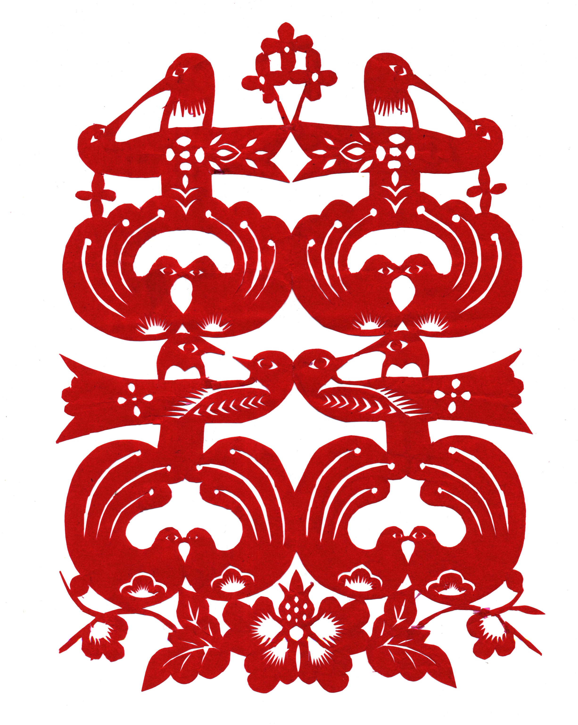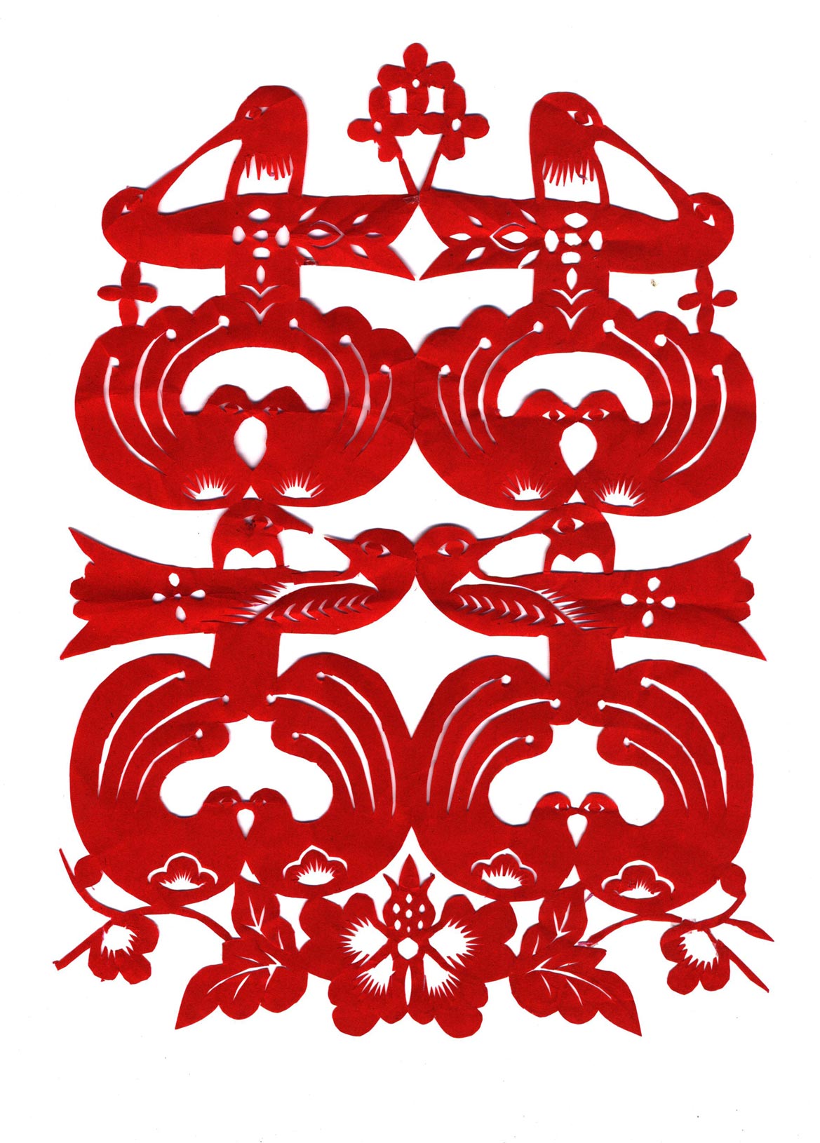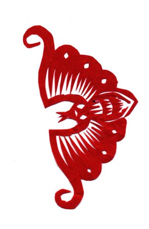 赵秀英的剪纸作品秀丽洗练,构思巧妙,不落俗套。