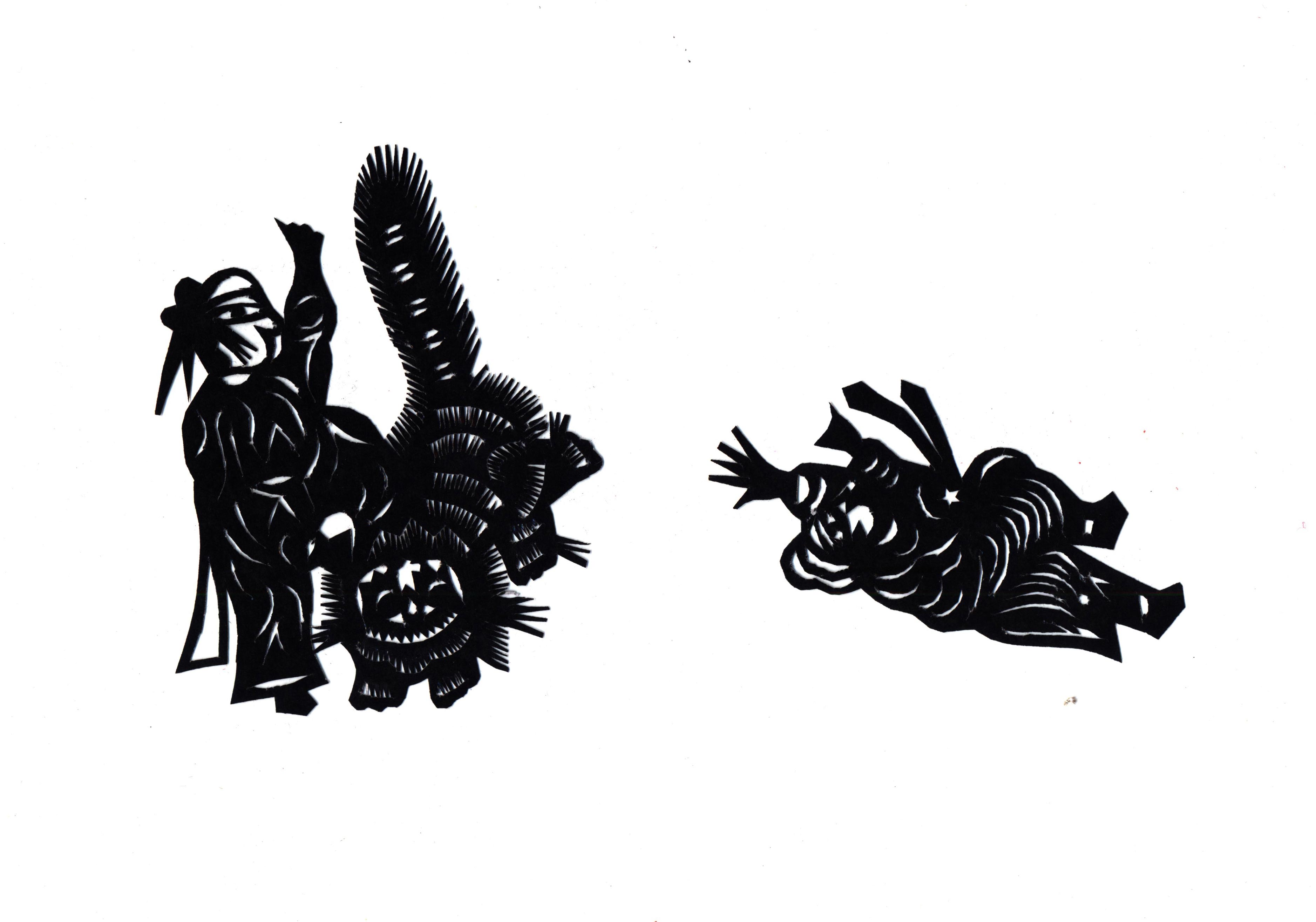 段苏侠剪纸风格古拙大气,简洁生动,黑白布局得当,剪工娴熟利落。
