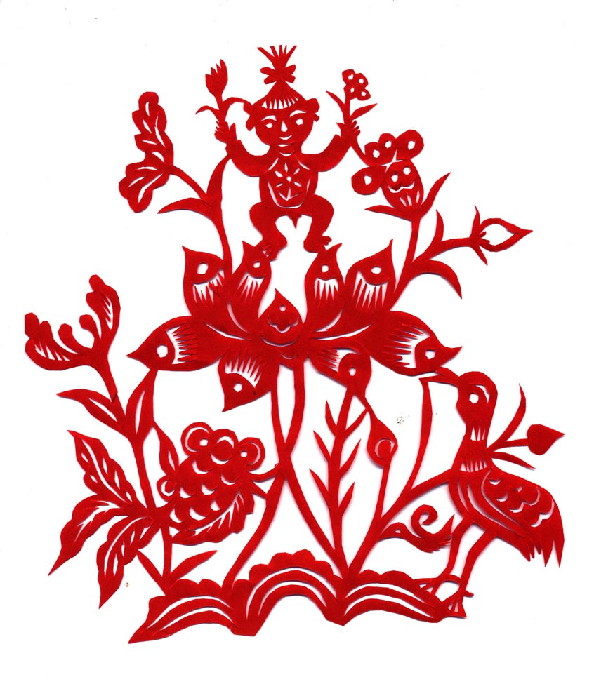 陈青平结婚两年后,婆家弟弟结婚,而当时家庭经济困难,按民俗,请谁剪喜花不能空手,剪完喜花和糊完花窗后要送剪花人毛巾和点心,寓意开花结果。礼虽不重,但对于极度困难的家庭来说也算是一笔开支。陈清平对婆婆说不用请人,她就会剪。她把娘家祖母雷夏云教她的喜花样子如“吉庆有余“娃踩莲”“鱼变娃”“大黑猫”等精心剪了出来。并仔细地贴在了窗子上。人们看见后还在村中真引起了不小的轰动。全村人和亲戚朋友都知道了她手巧,会剪喜花,而且剪的很传统,从那时起,村上凡给娃娃结婚的家户,请她剪裹布花,顶棚花,糊花窗。这裹布花是男方给女方送布料时应用的喜花,长55公分,宽35公分,要与布料的宽幅一致,内容多是娃娃踩莲花图样,也有双喜字和莲花、牡丹等花草组成的图样,花草讲究有根有籽,剪喜花的巧手还必须是上有公婆下有儿女的全命人。陈青平公婆健在,儿女双全,是剪喜花的最佳人选,所以给村上结婚人家剪喜花、糊花窗的事好像承包在了她身上。她剪喜花多是在自己家剪,又不能耽误农活。只能放在晚上,特别是剪大幅的裹布花较为麻烦,只要开剪就不能停,直剪到大半夜,不能耽误人家娶亲的好日子。