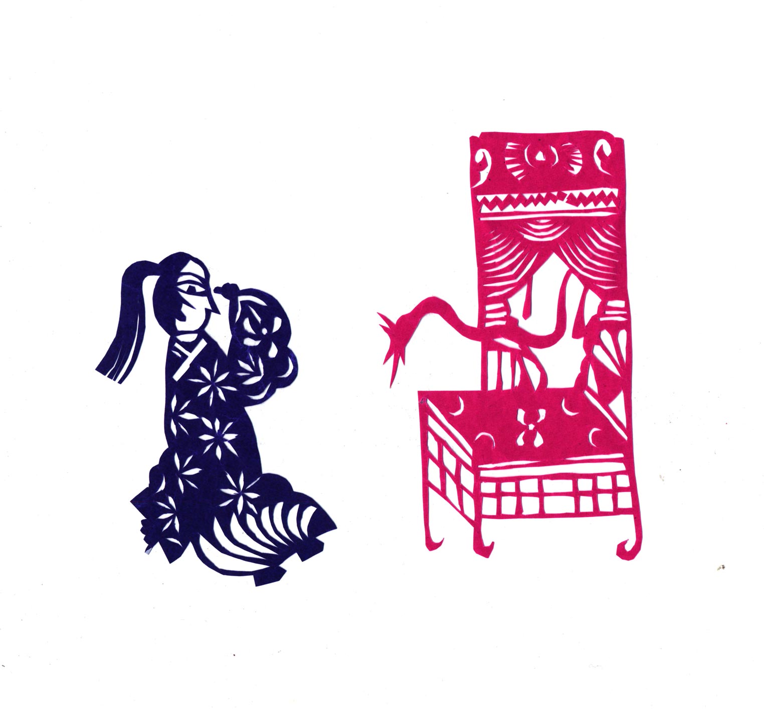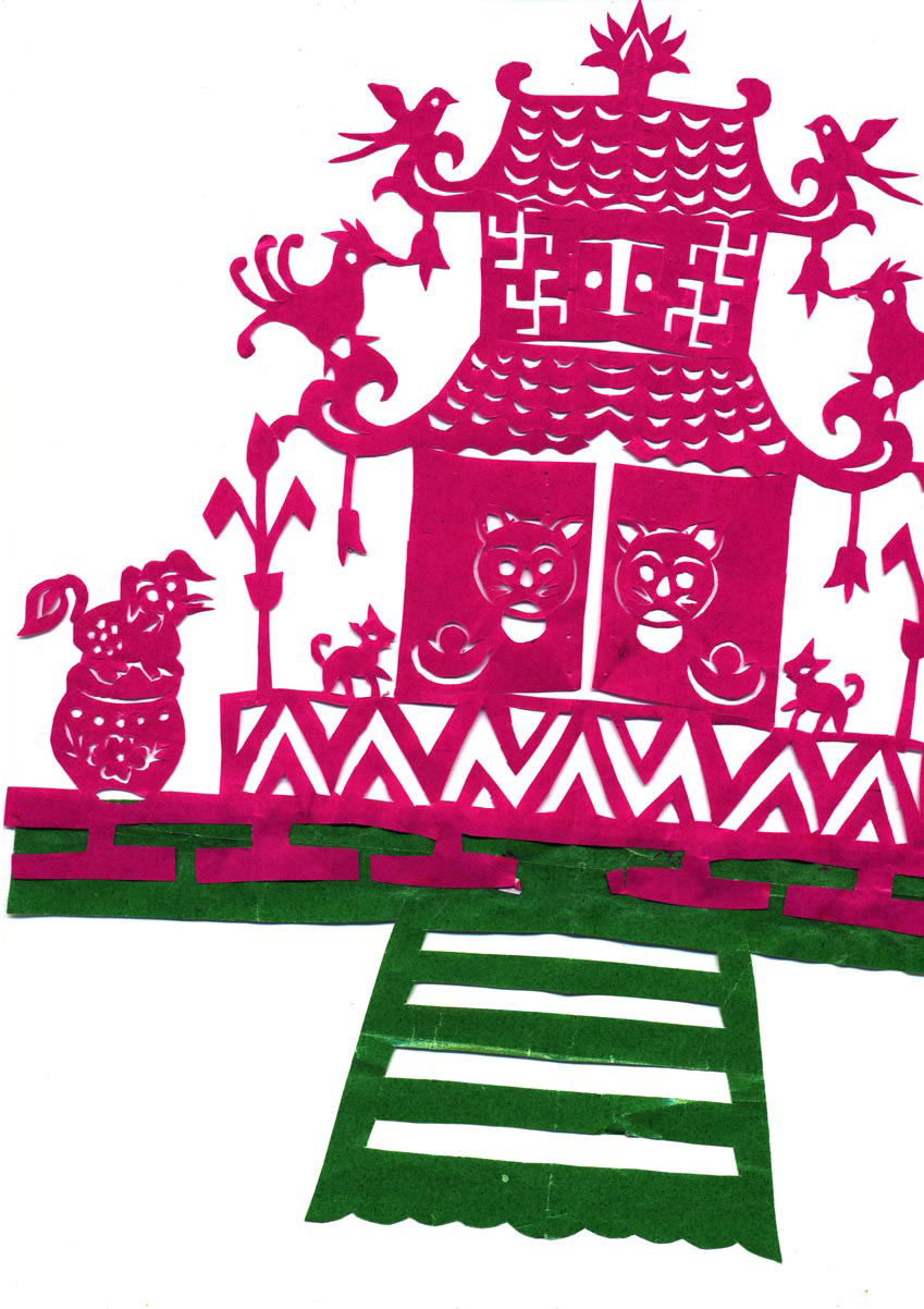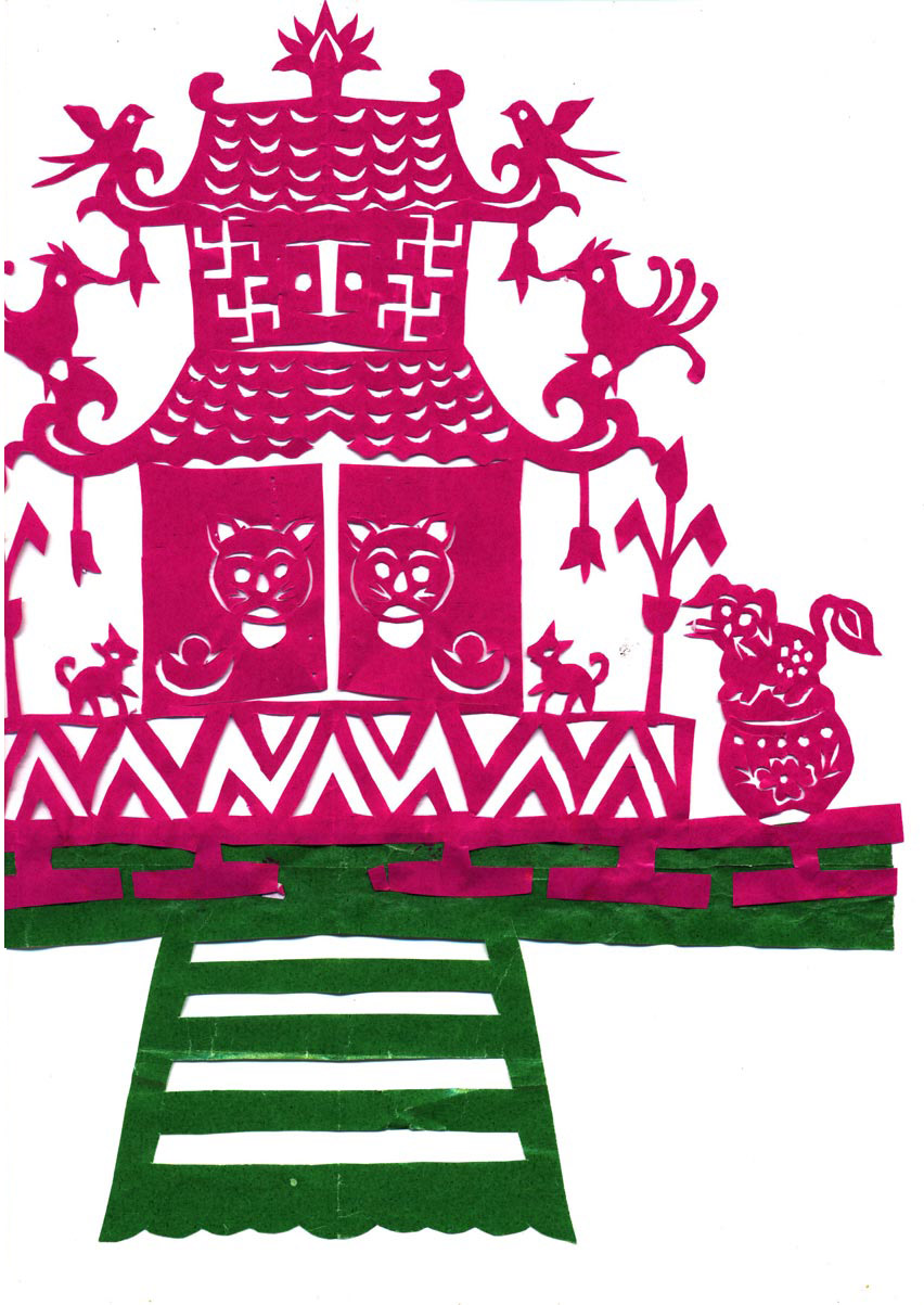 陈青平小时,雷夏云祖母的老伴去世,便每天晚上为祖母做伴。她看到老人剪的老虎、狮子、鱼变娃等剪纸特别好看,也很好奇,便顺手拿起剪刀照着剪了起来。祖母看她喜欢剪纸,便开始教她怎么折纸,怎么下剪,剪喜花有什么讲究等等。从此也就爱上了剪纸艺术。