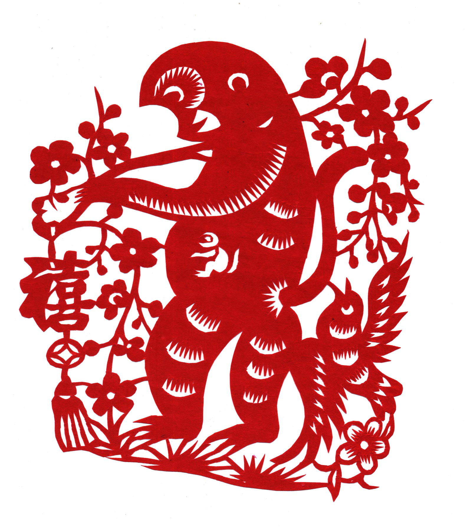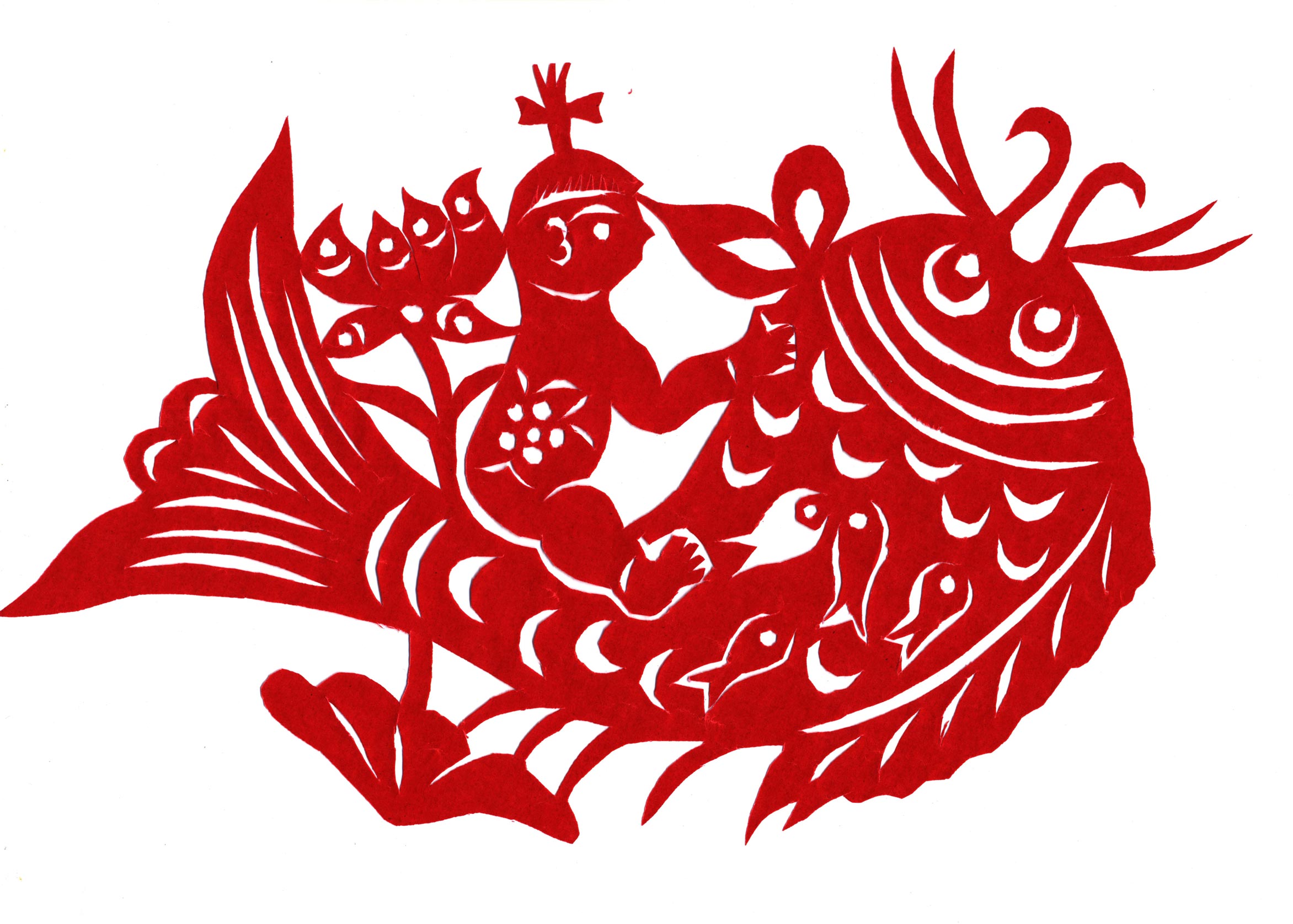 突出艺术特色:陈青平的剪纸风格质朴自然,形象活泼洒脱。