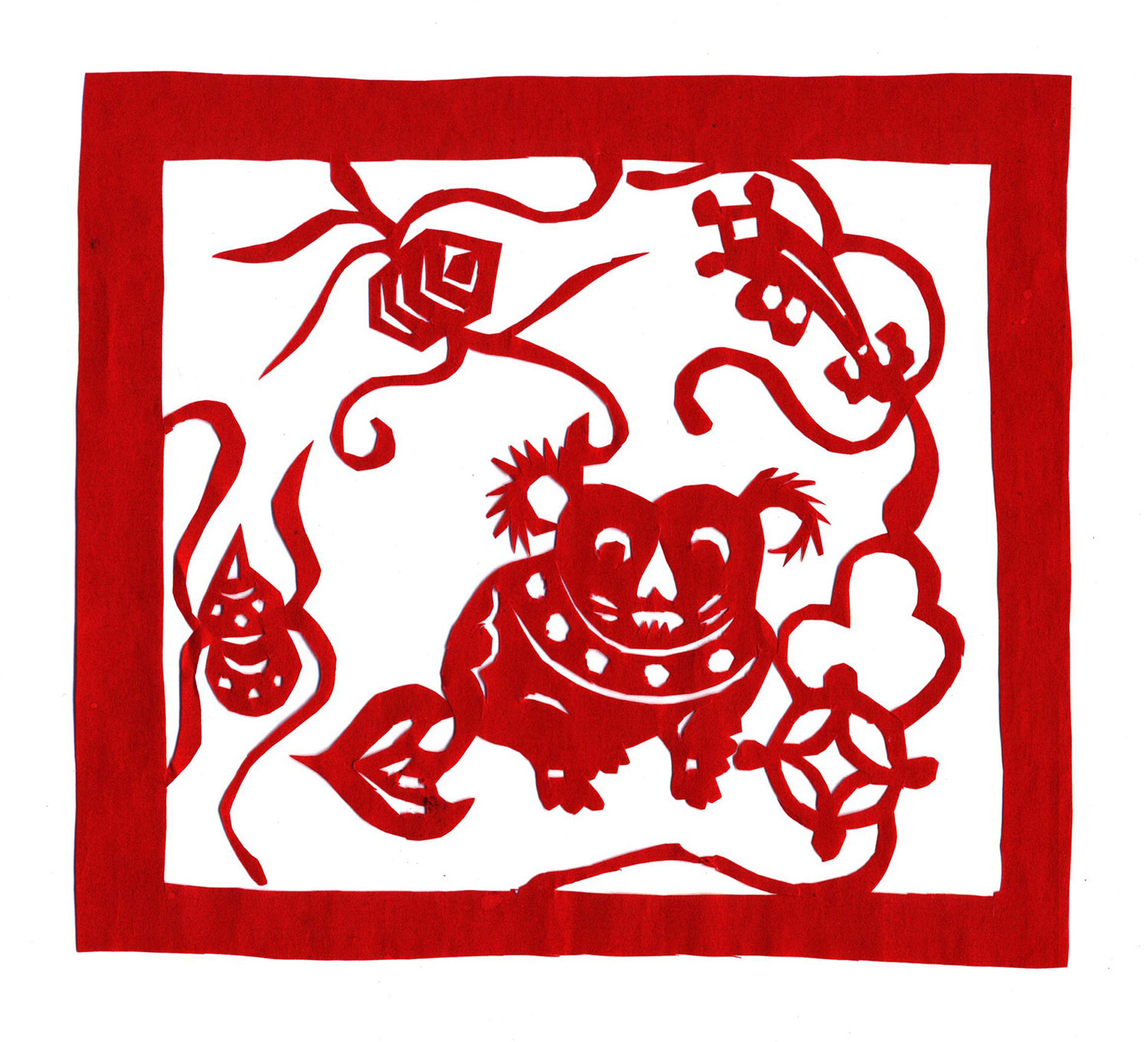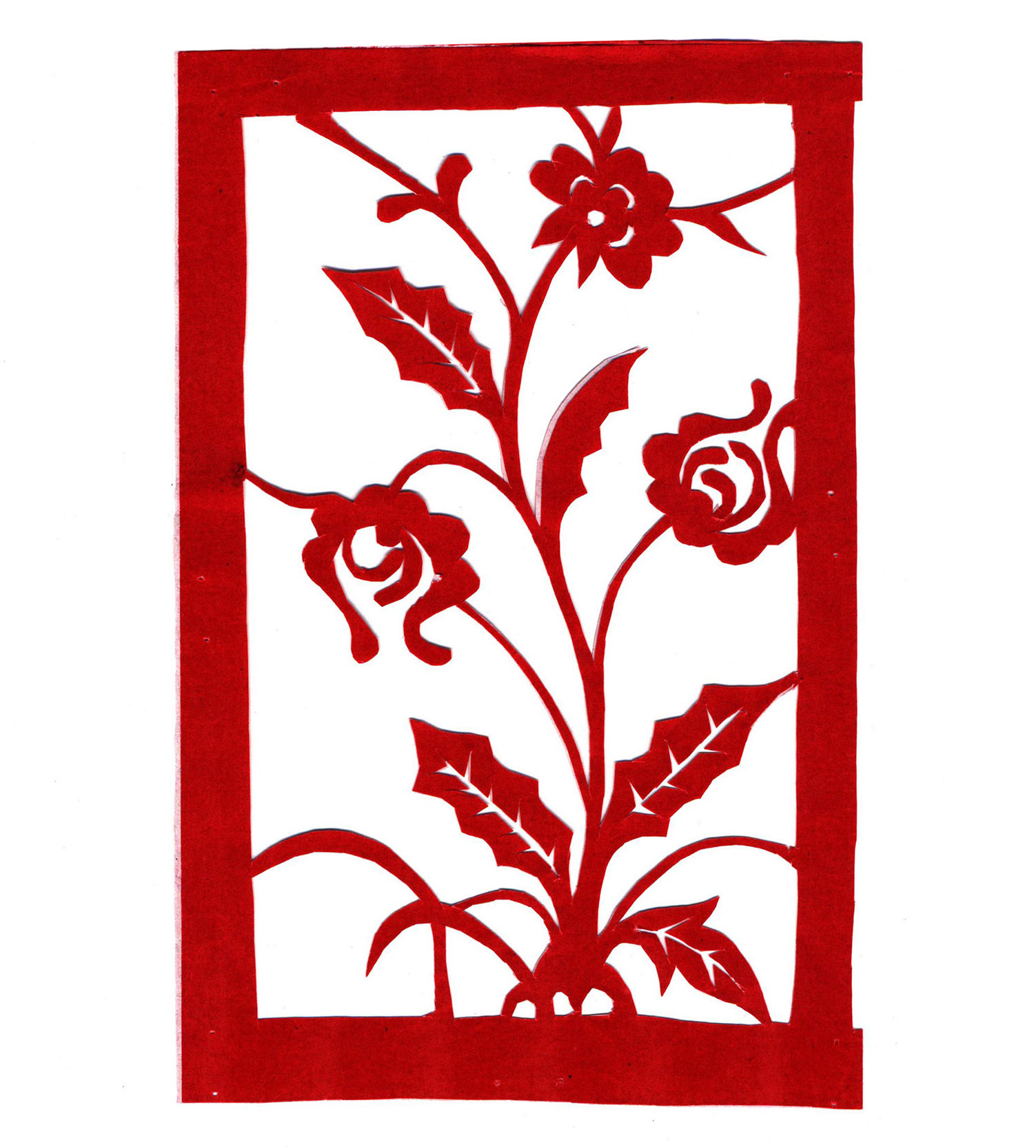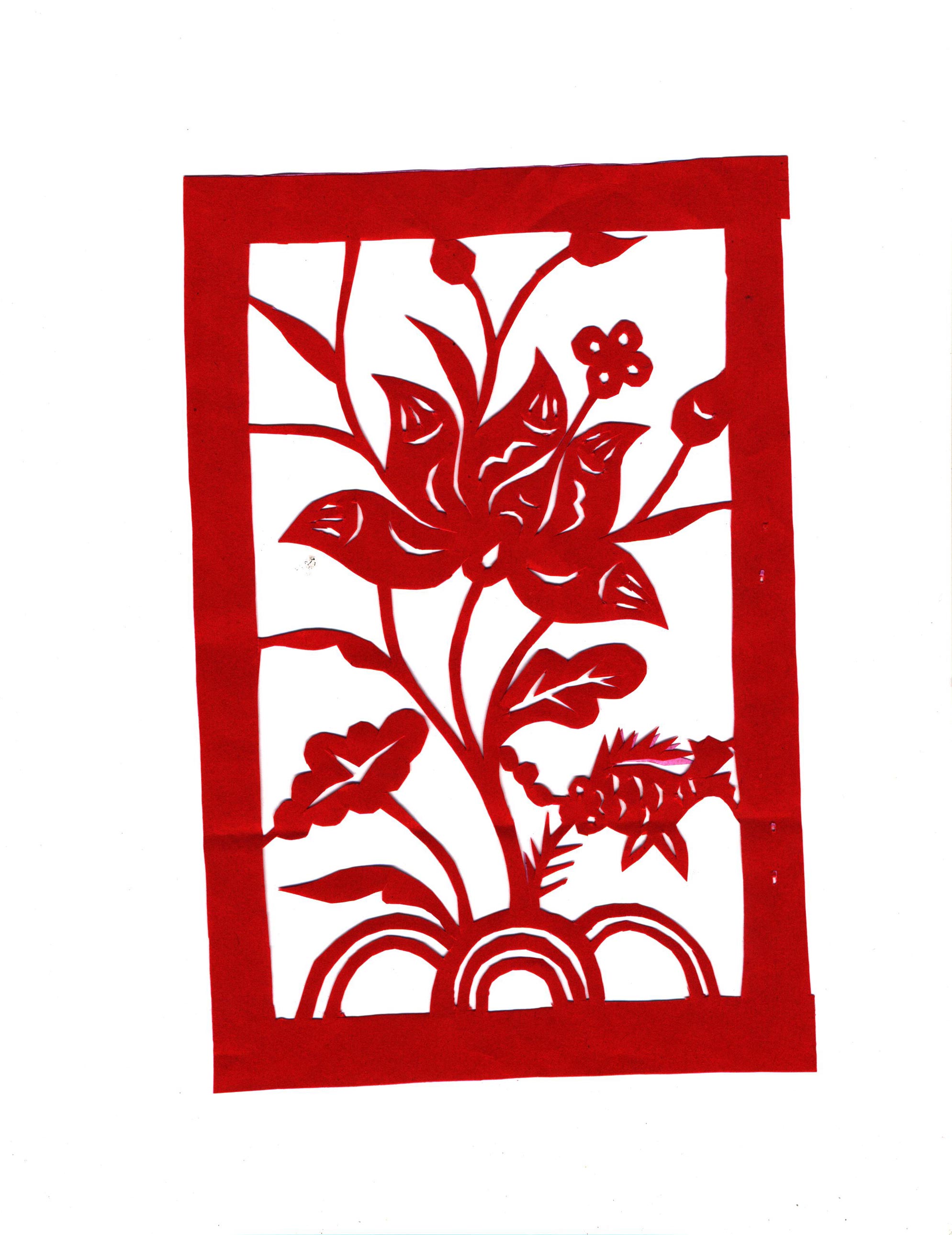 王玉侠擅长剪花草和动物,其剪纸构图简洁疏朗,造型洗练概括,刀工利落讲究,有着鲜明的个性特点。