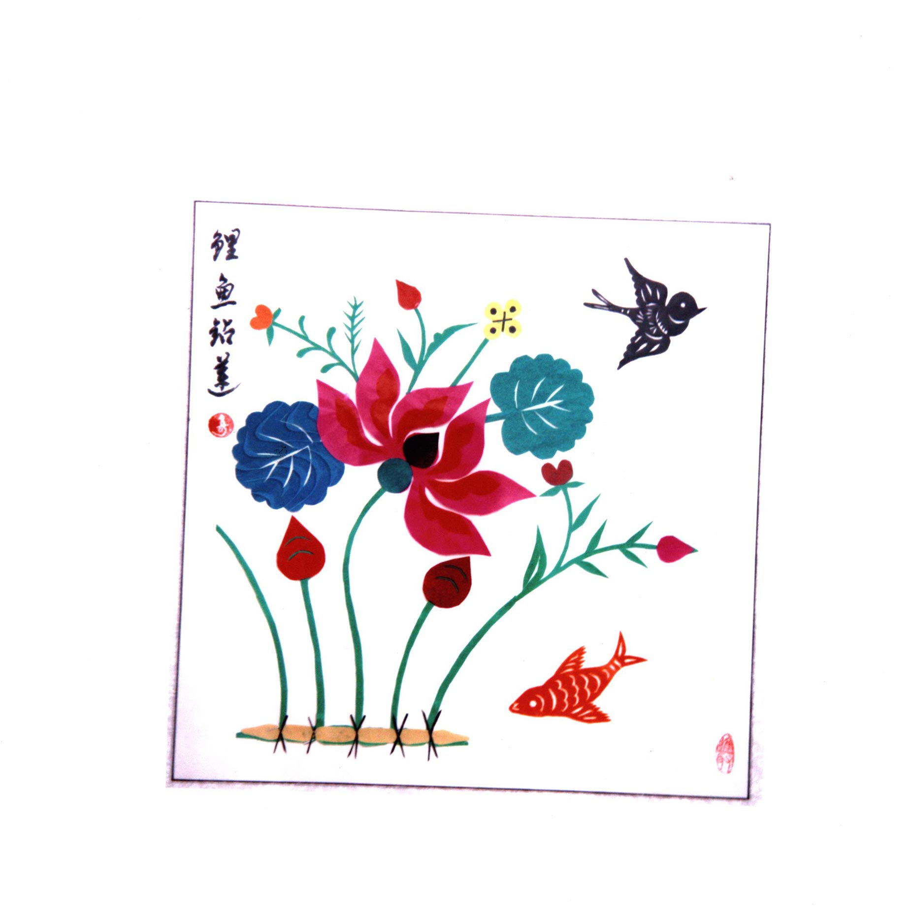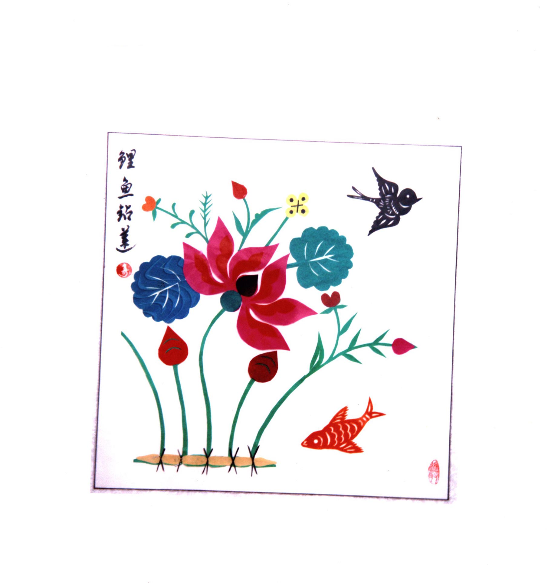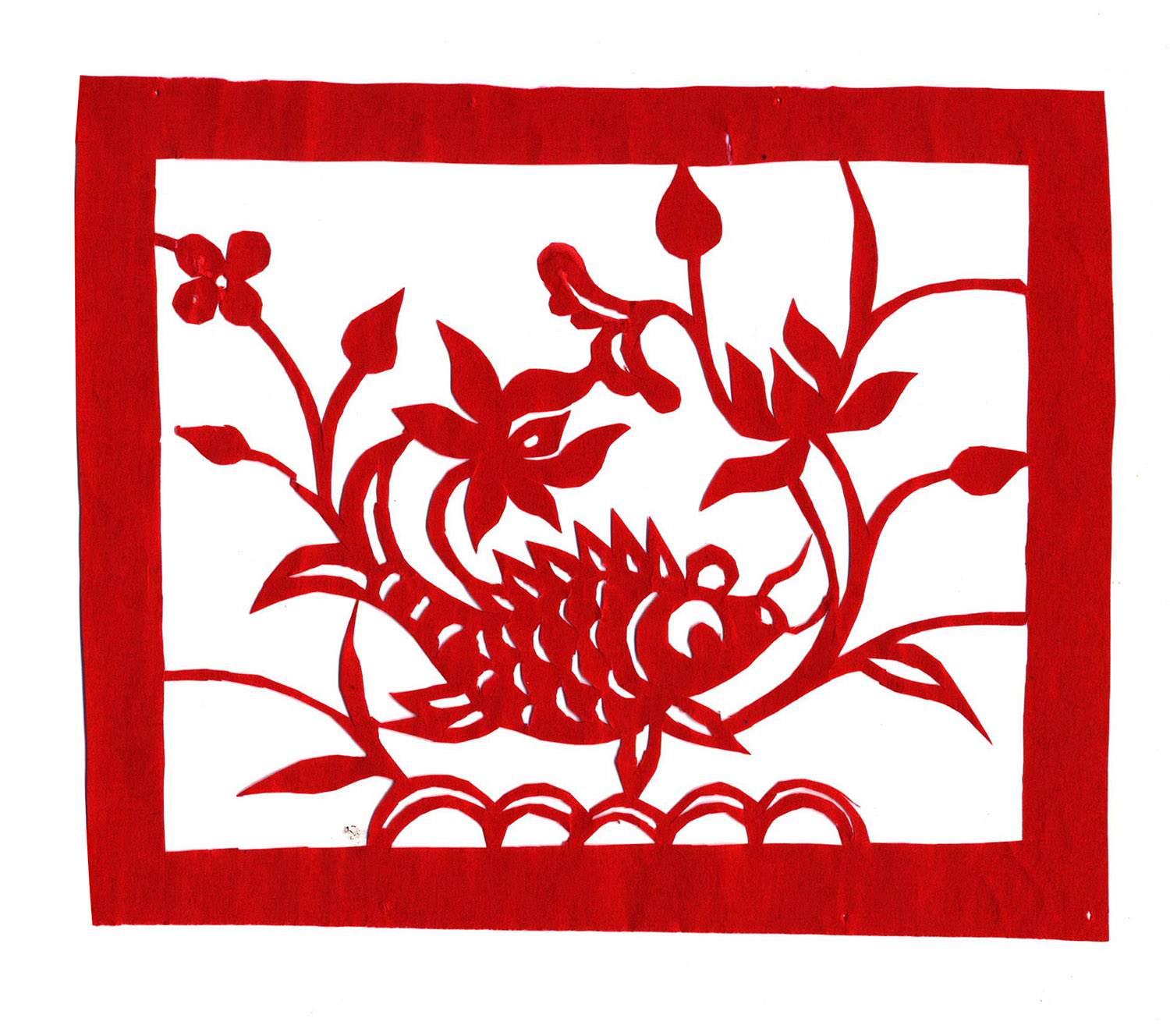 王玉侠擅长剪花草和动物,其剪纸构图简洁疏朗,造型洗练概括,刀工利落讲究,有着鲜明的个性特点。
