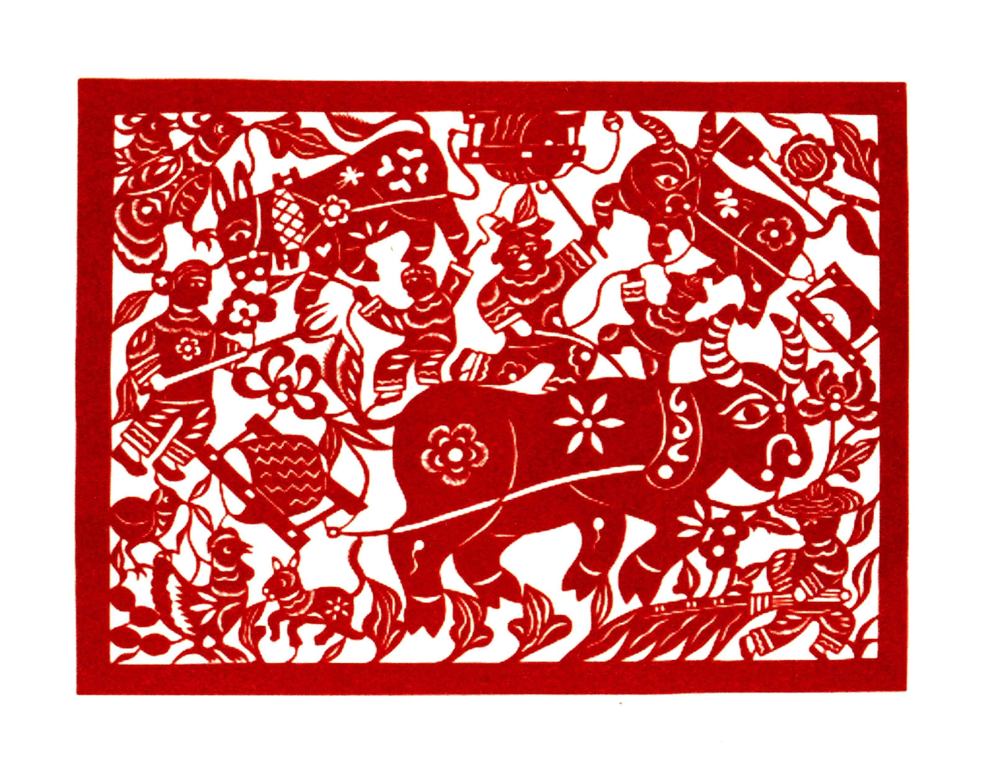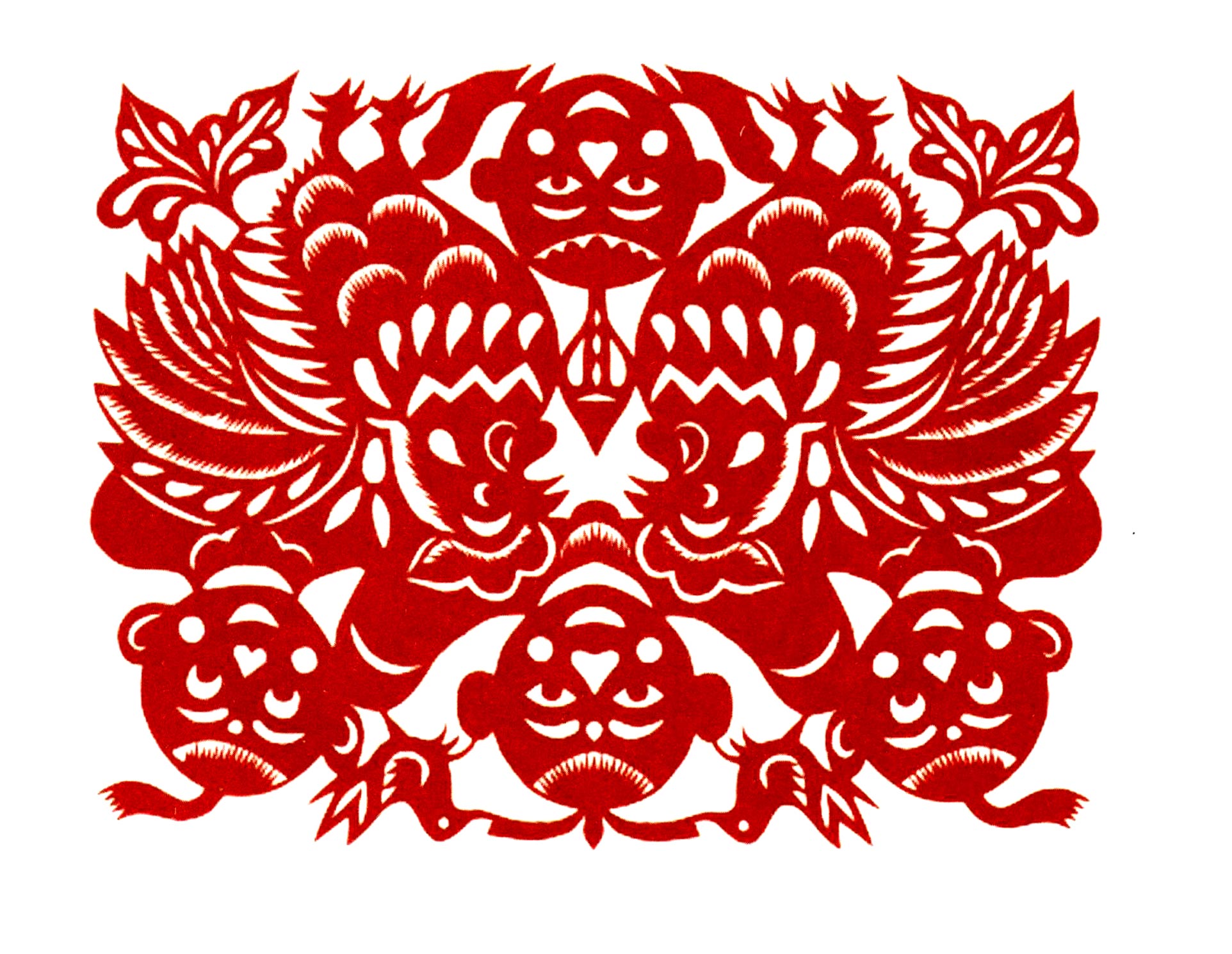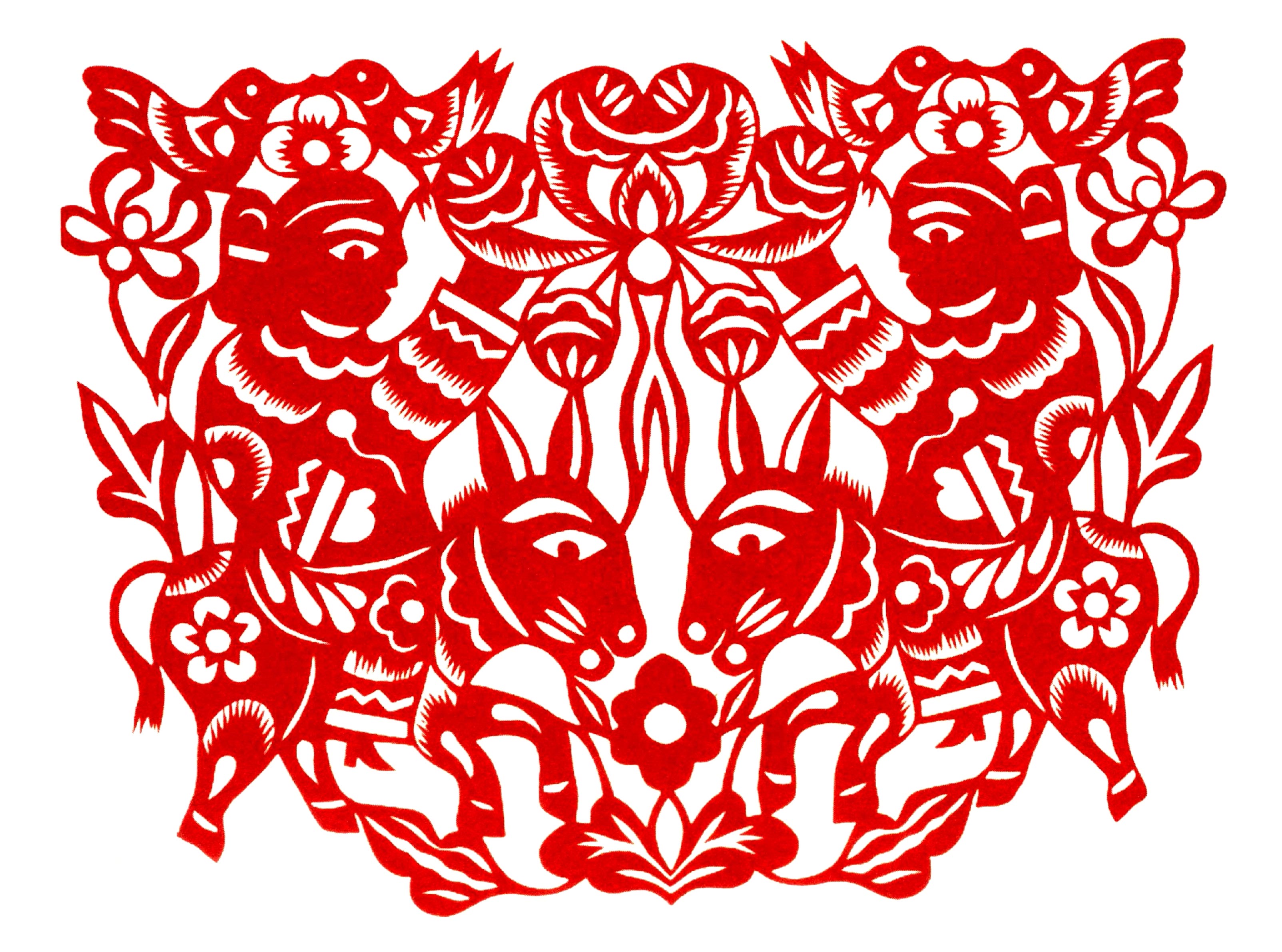 马秀英剪纸内容丰富,花草、动物、人物无一不精,其造型自然优美,构图丰满而不杂乱,黑白、疏密处理有序,剪工精细到位,给人一种清新的淳朴的美感。