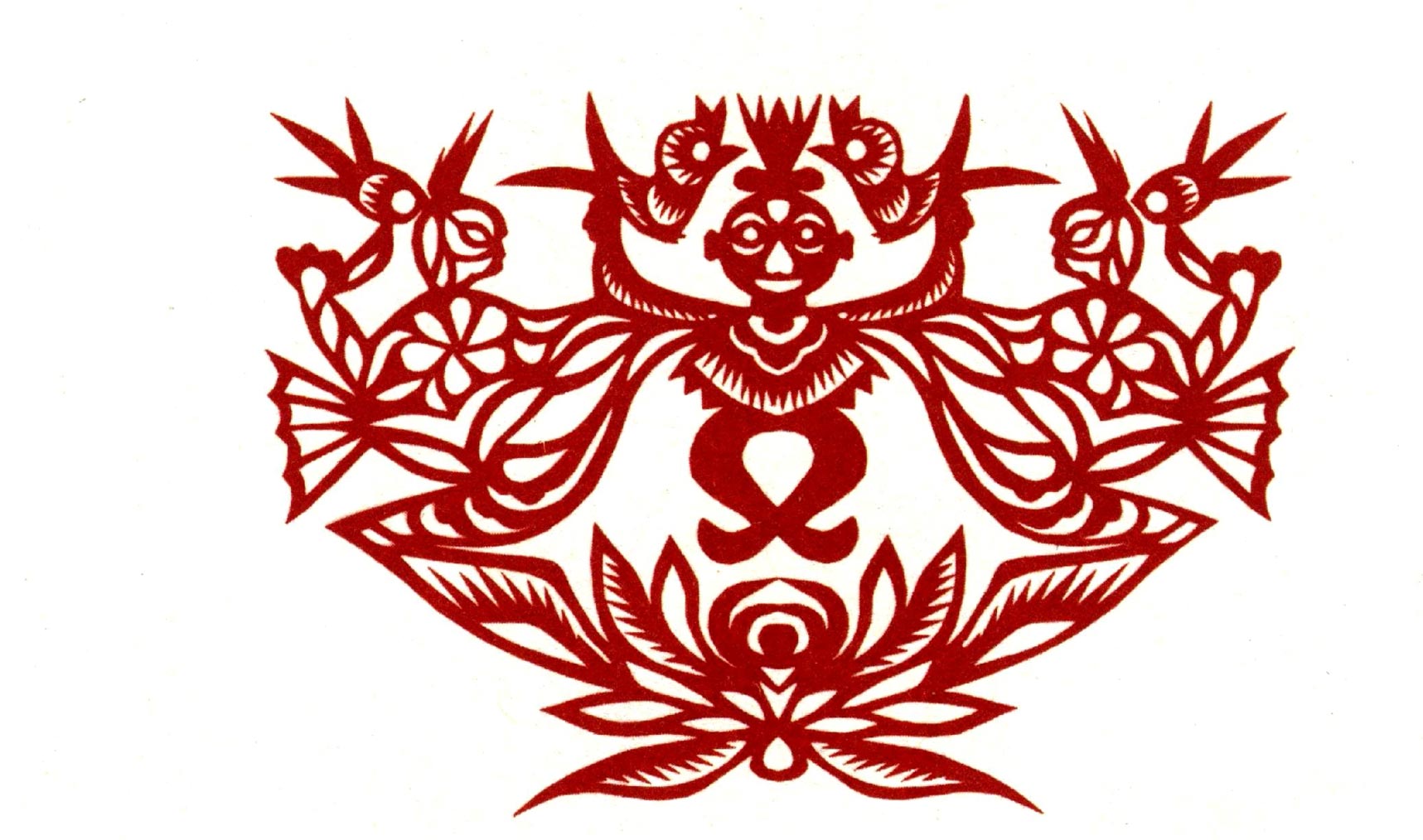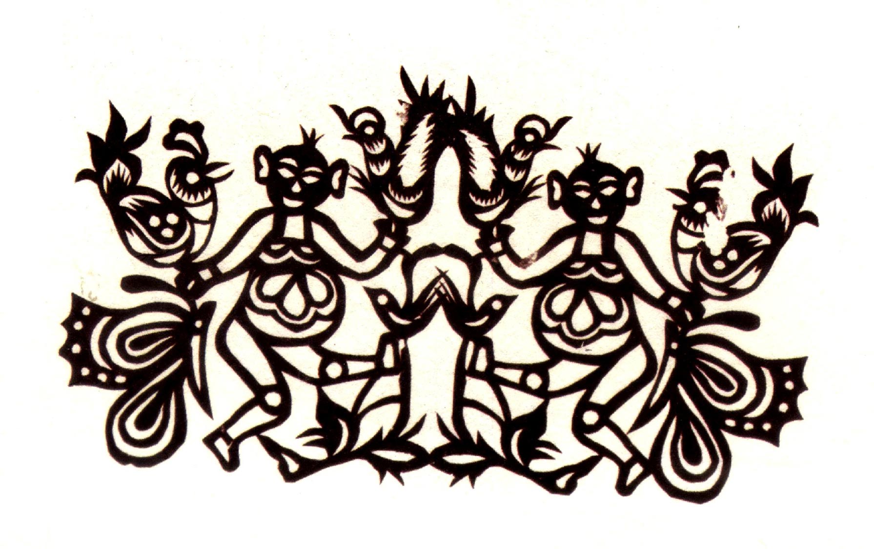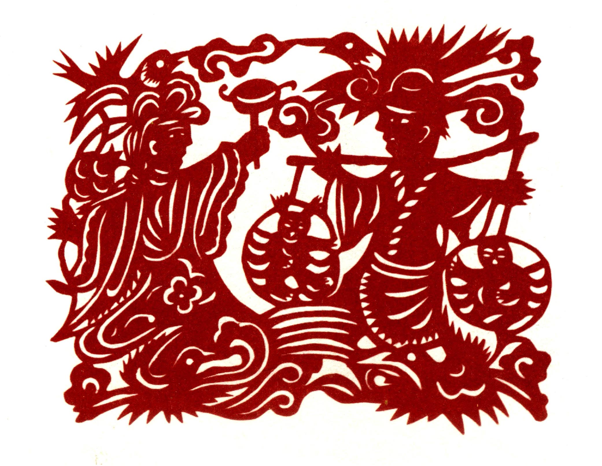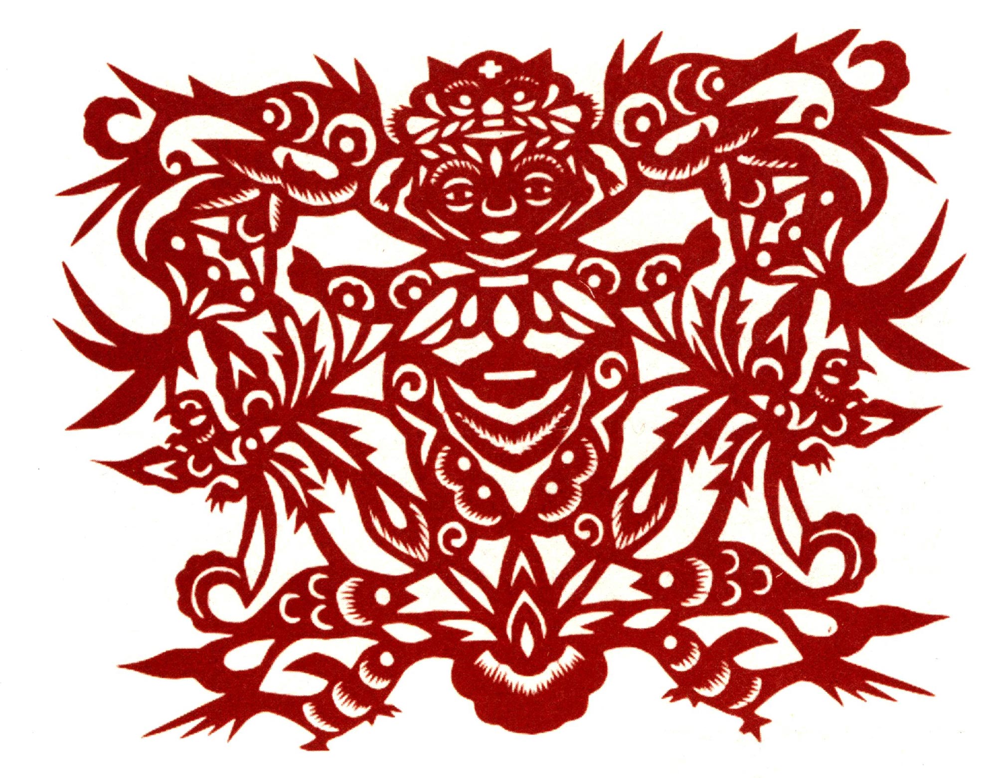 吴玉琴的传统剪纸风格古朴淳厚,造型多变形夸张,较好的保留着洛川剪纸的地域风格。她的创新作品充分吸取传统剪纸添加复合的艺术特点,想象丰富,寓意有趣。反映新生活的作品构思奇特,造型优美,剪纸语言、刀法传统纯正,有着较鲜明的个性特点。