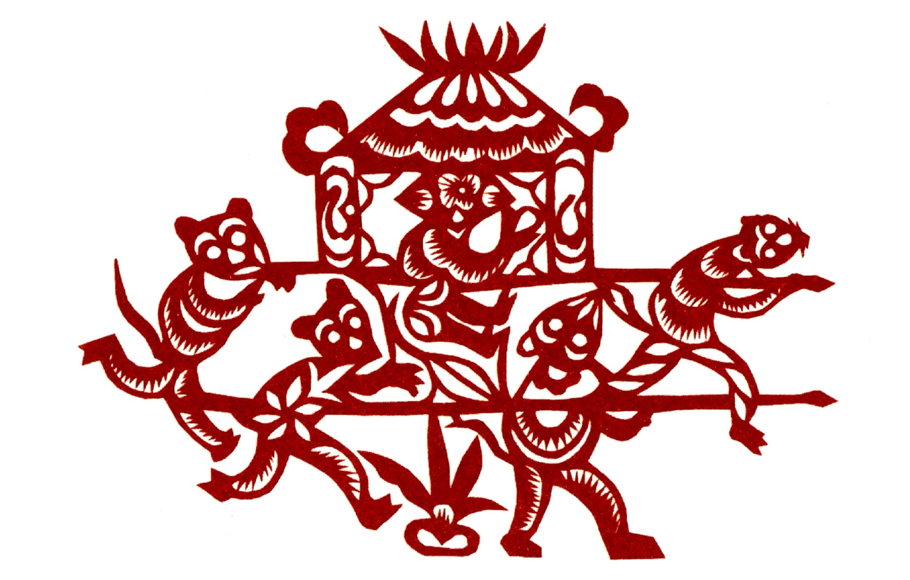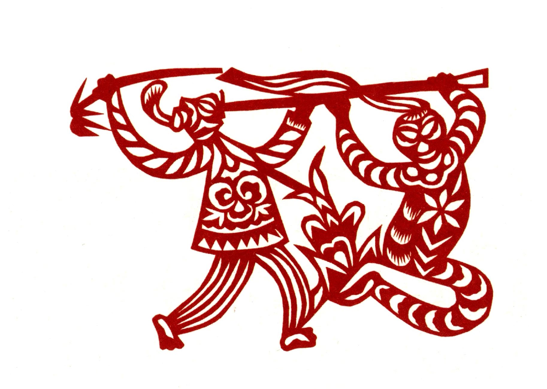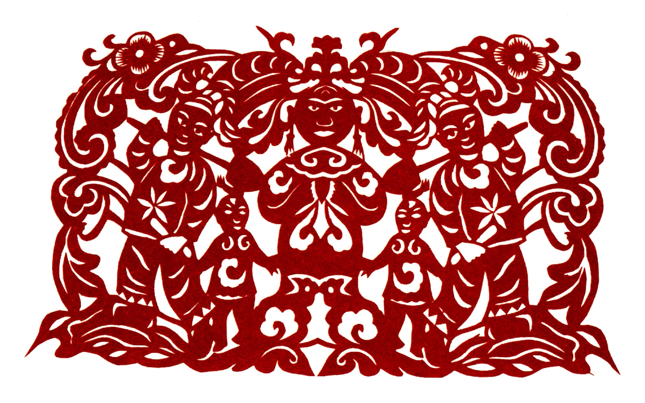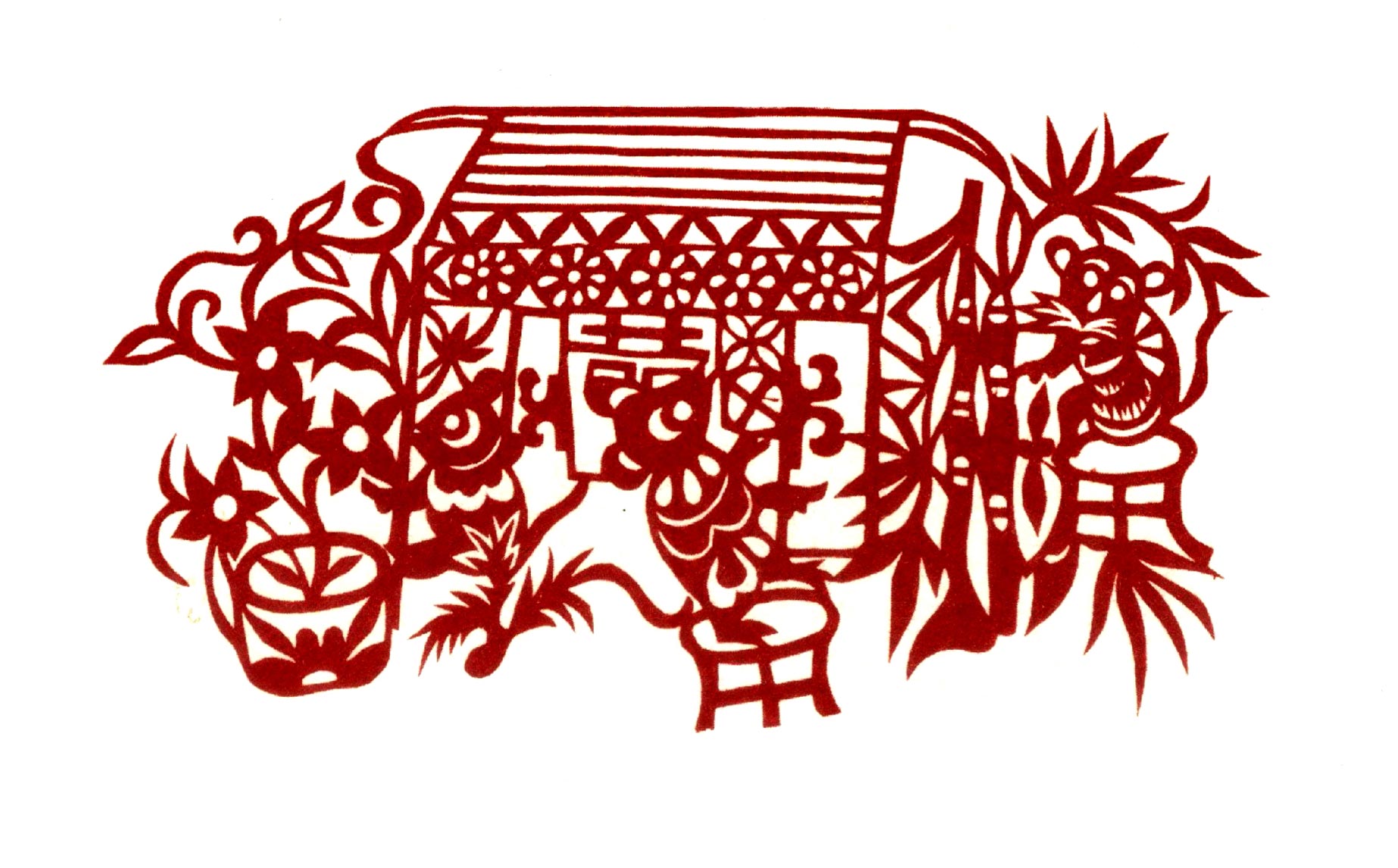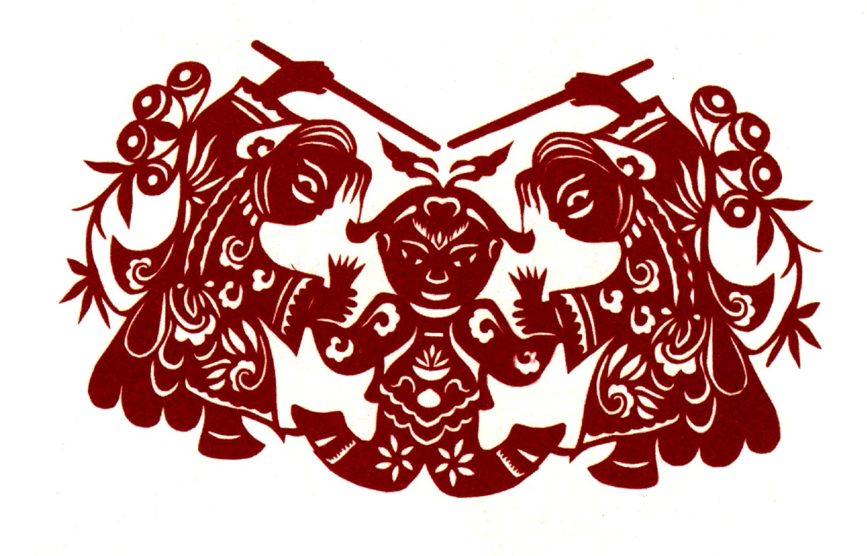 吴玉琴的传统剪纸风格古朴淳厚,造型多变形夸张,较好的保留着洛川剪纸的地域风格。她的创新作品充分吸取传统剪纸添加复合的艺术特点,想象丰富,寓意有趣。反映新生活的作品构思奇特,造型优美,剪纸语言、刀法传统纯正,有着较鲜明的个性特点。