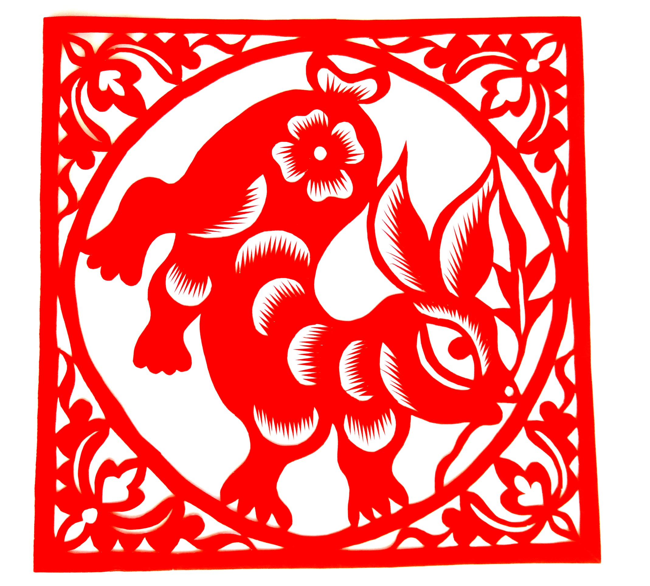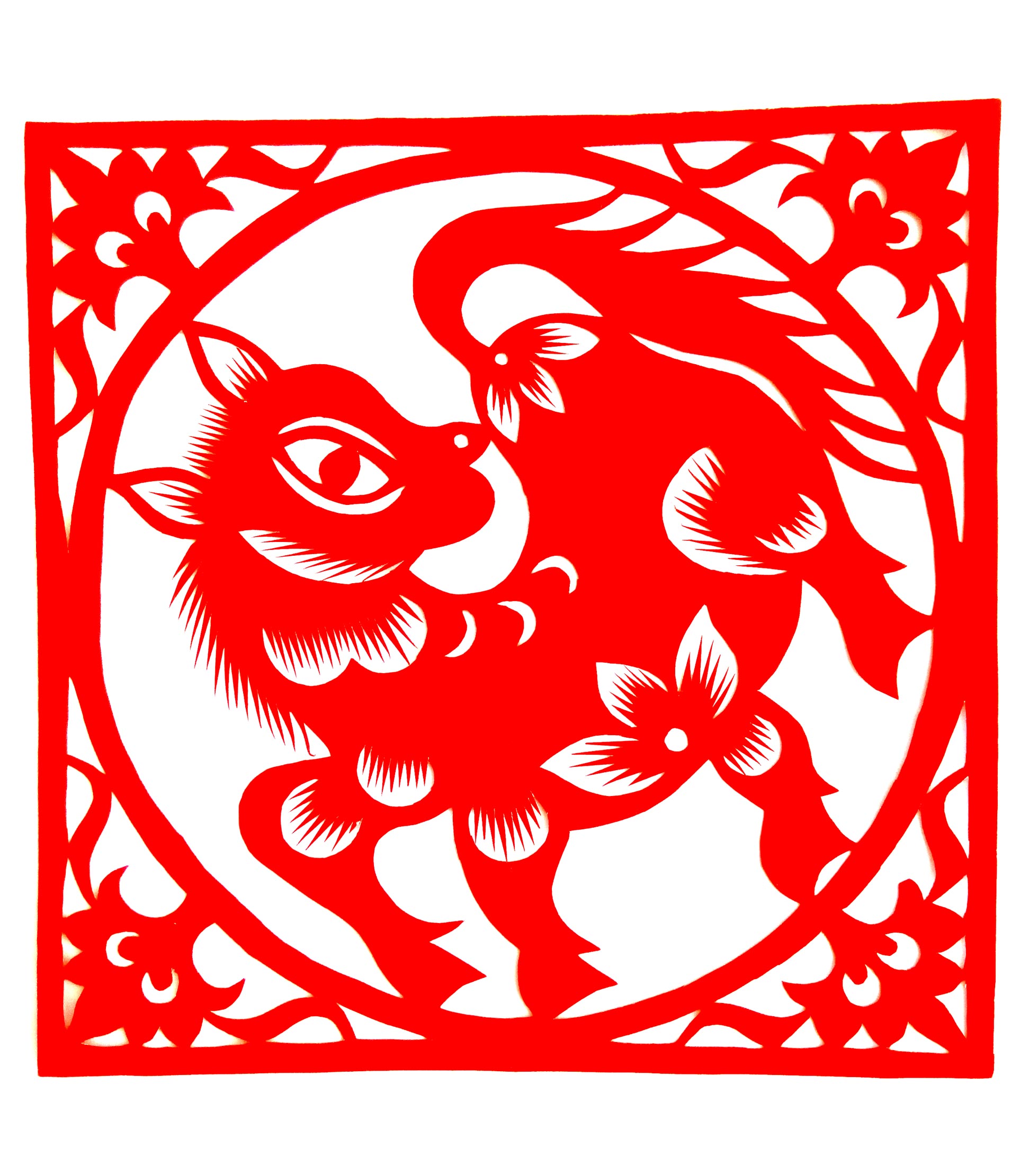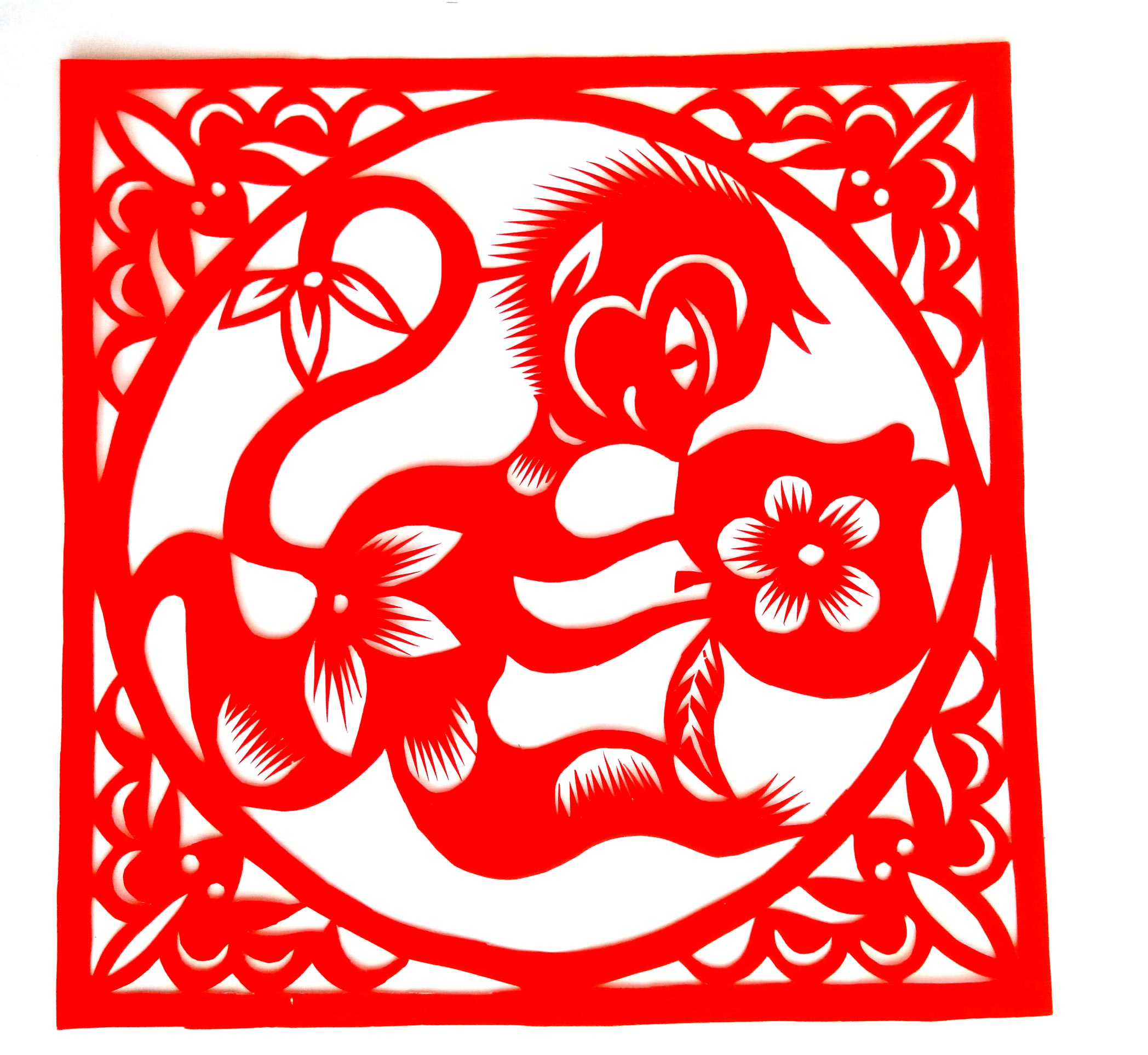 胡文飞的剪纸作品较好的传承了家族粗犷淳朴的艺术风格,又融合了现代人的审美情趣,作品构思巧妙、新颖,造型可爱、优美,构图疏密有致。