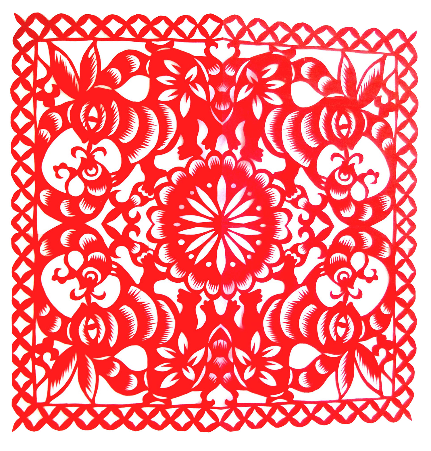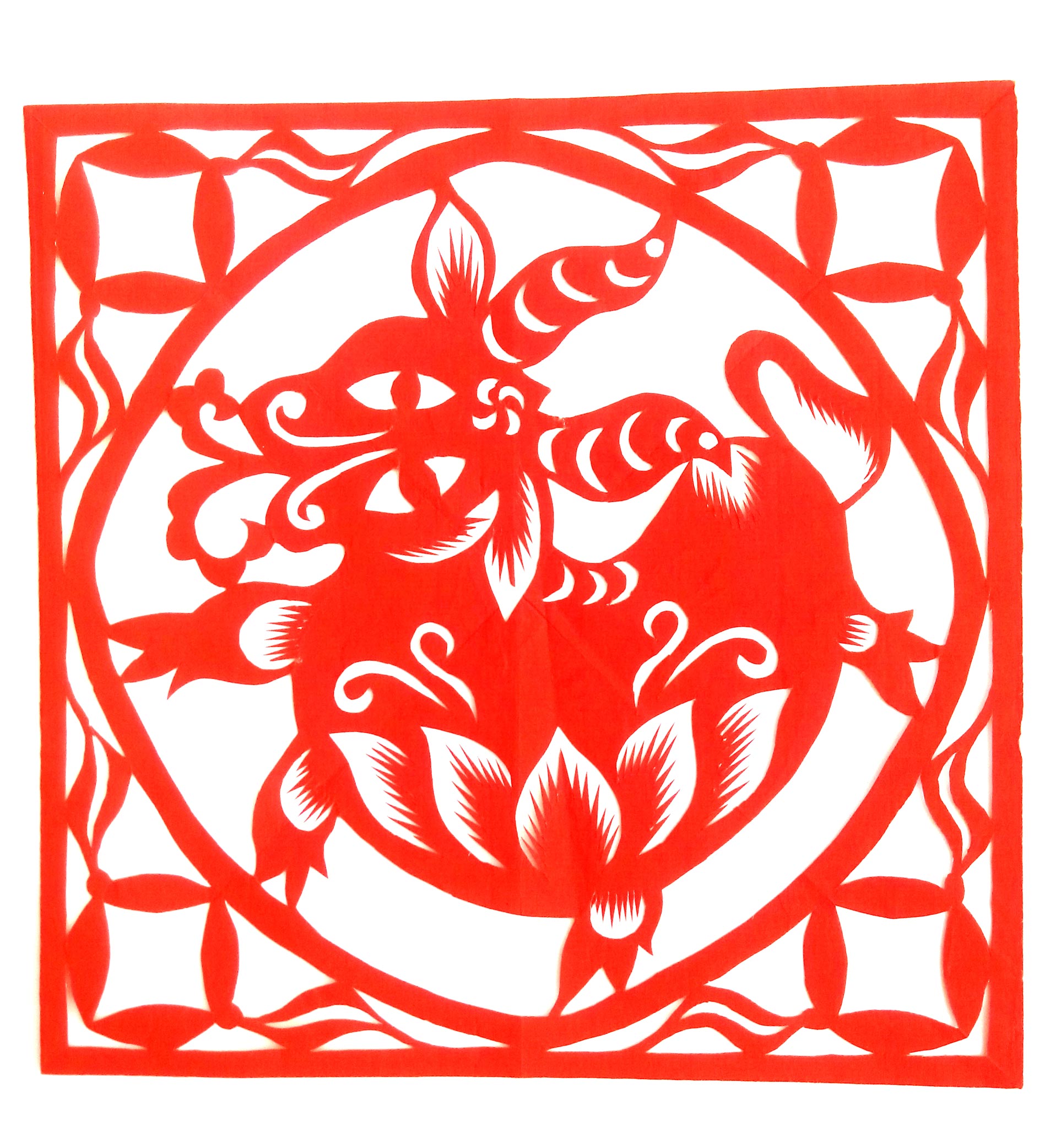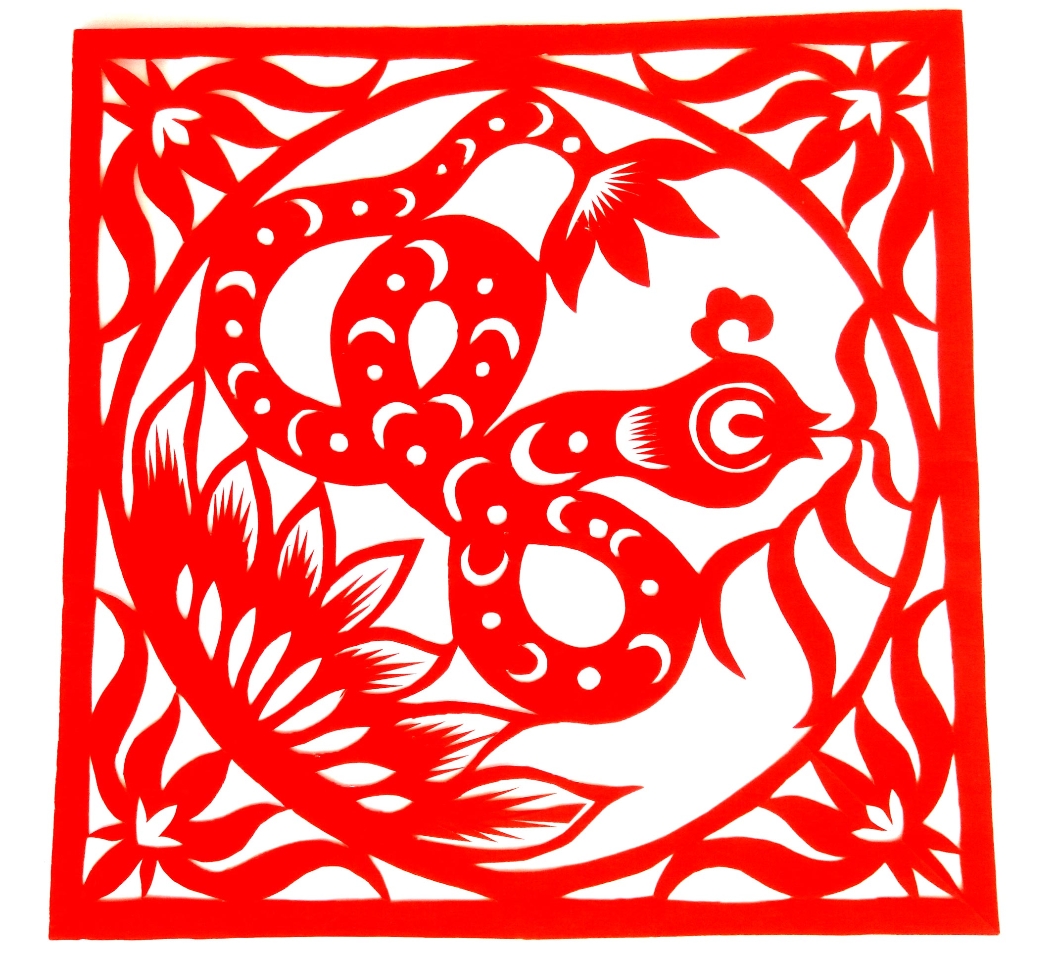胡文飞的剪纸作品较好的传承了家族粗犷淳朴的艺术风格,又融合了现代人的审美情趣,作品构思巧妙、新颖,造型可爱、优美,构图疏密有致。