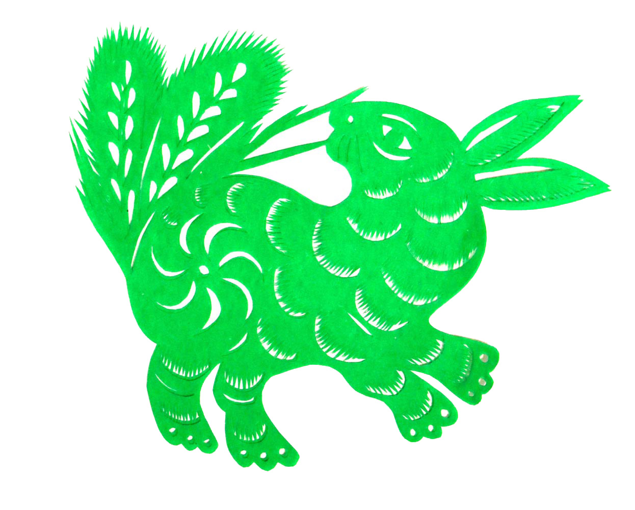 齐应巧的剪纸作品多是传统题材,有鸡、虎、老鼠吃葡萄、鱼戏莲等,造型多夸张变,风格古朴淳厚,细腻精巧,剪纸语言丰富。
