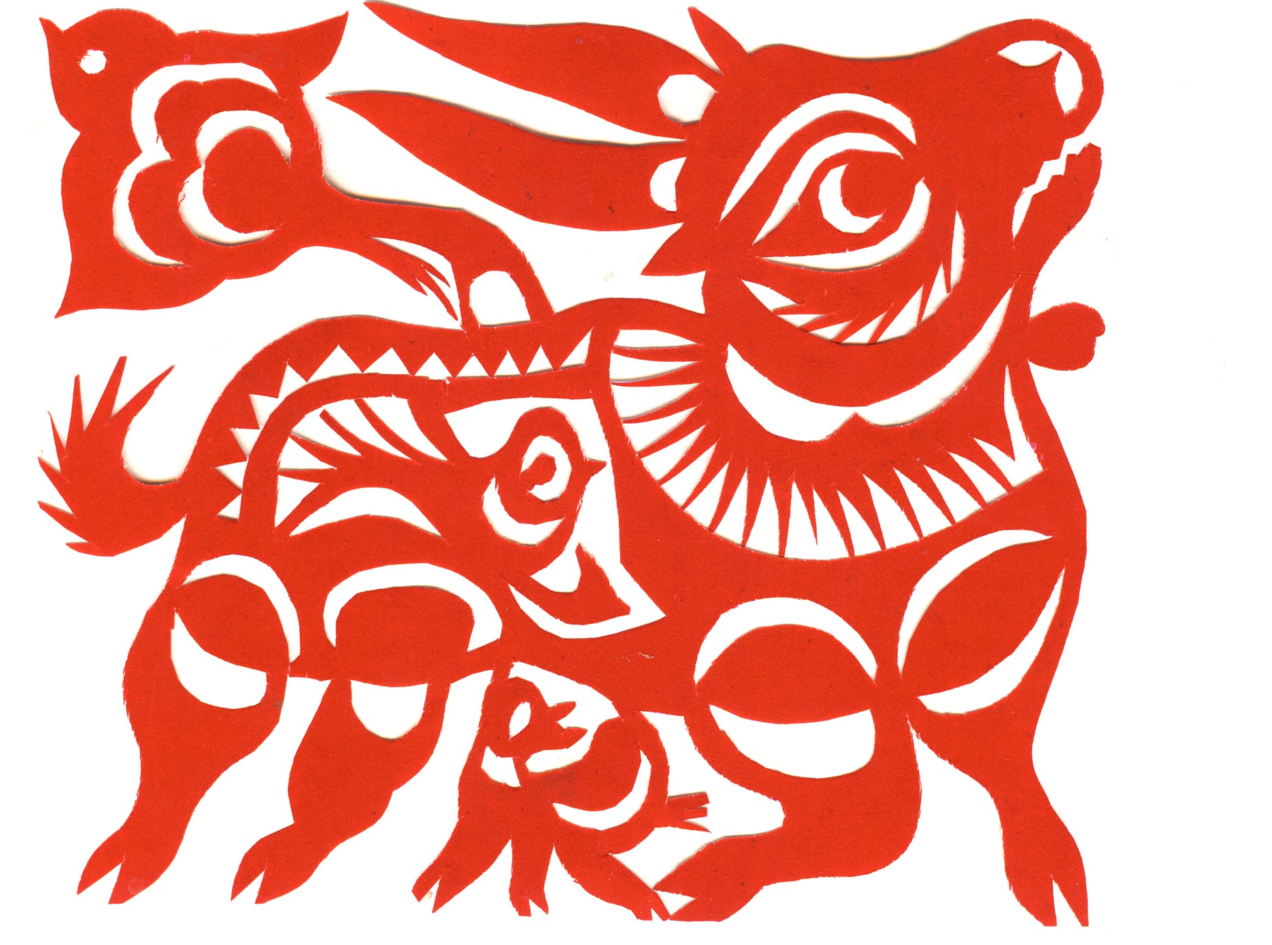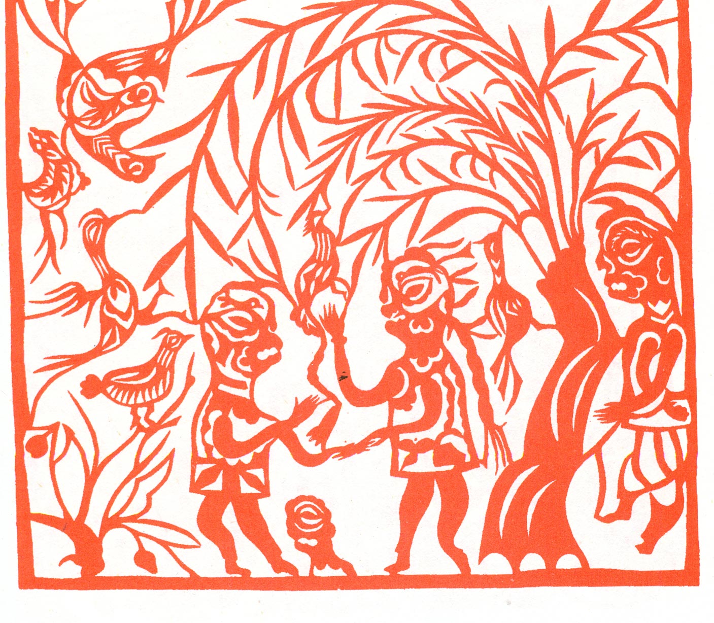 高凤莲的剪纸根植于陕北深厚浑朴的黄河与黄土文化之中,反映了人类原始质朴的生命意识,繁衍意识,表现出阴阳相合,化生万物,万物生生不息的中国哲学观念。她的剪纸内容广博,丰富多彩,均信手拈来,仿诺天成,即使长达数米的宏篇巨作,依然胸有成竹,大刀阔斧,一气呵成,呈现出一个民间艺术大师不同寻常的艺术天赋和宏大气魄。