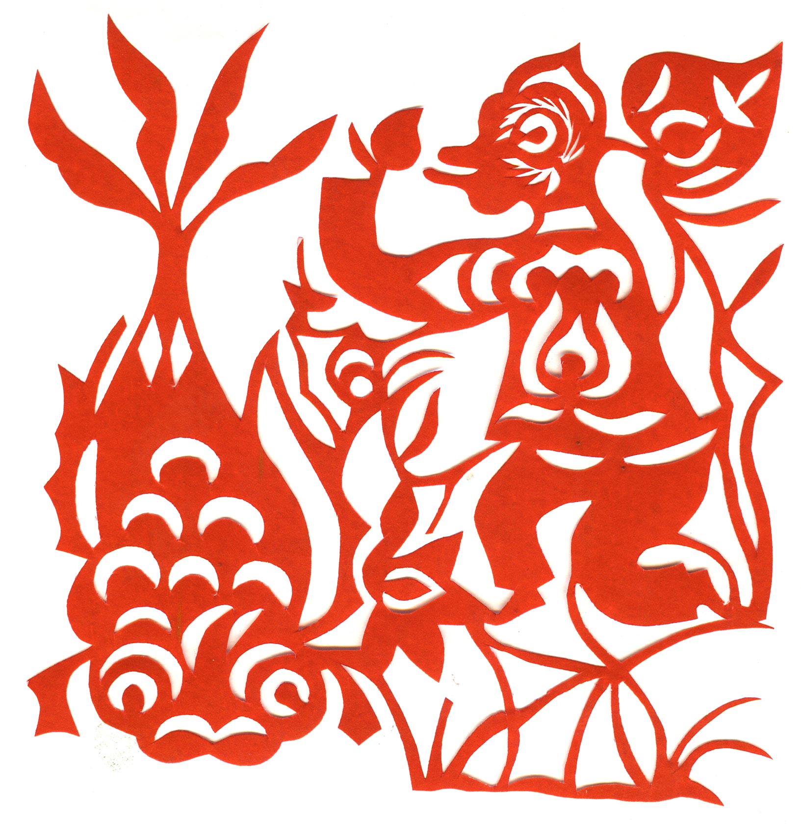 高凤莲母亲是当地一位有名的剪纸巧手。从小耳濡目染 高凤莲虽不识字,但思维敏捷,做事干练,在当地早就是个名人,这倒不是因为她的剪纸,而是她那不凡的经历。在农村当过民兵连长、妇女主任、村党支部书记、全县闻名的科学种田能手等。高凤莲剪纸出名是在1986年后,那时因二女儿亡故,一直无法走出悲伤的阴影,为了缓解她的情绪,在大儿媳的陪伴下,她参加了县文化馆的剪纸和布堆画培训班。在培训班,她的剪纸粗犷大气,文化内涵丰富,充满生命活力,个性特征十分鲜明,受到中央美术学院教授靳之林的关注。从那时起,高凤莲再也没有放下手中的剪刀,她创作出大量剪纸作品。迄今为止,作品荣获国内外大奖50余项。中国美术馆为她举办了《大河之魂》高凤莲三代剪纸艺术展,200多幅作品被中国美术馆、中央美术学院等艺术机构收藏。高凤莲的剪纸根植于陕北深厚浑朴的黄河与黄土文化之中,反映了人类原始质朴的生命意识,繁衍意识,表现出阴阳相合,化生万物,万物生生不息的中国哲学观念。她苦难的经历和顽强乐观的性格,给作品注入了源源不断的能量和灵性。