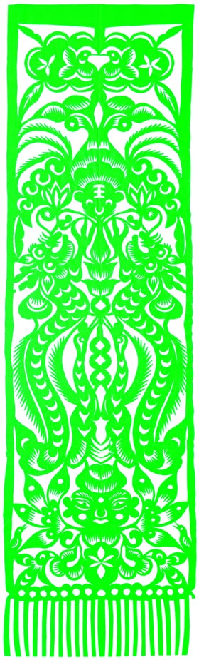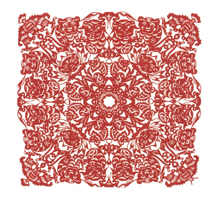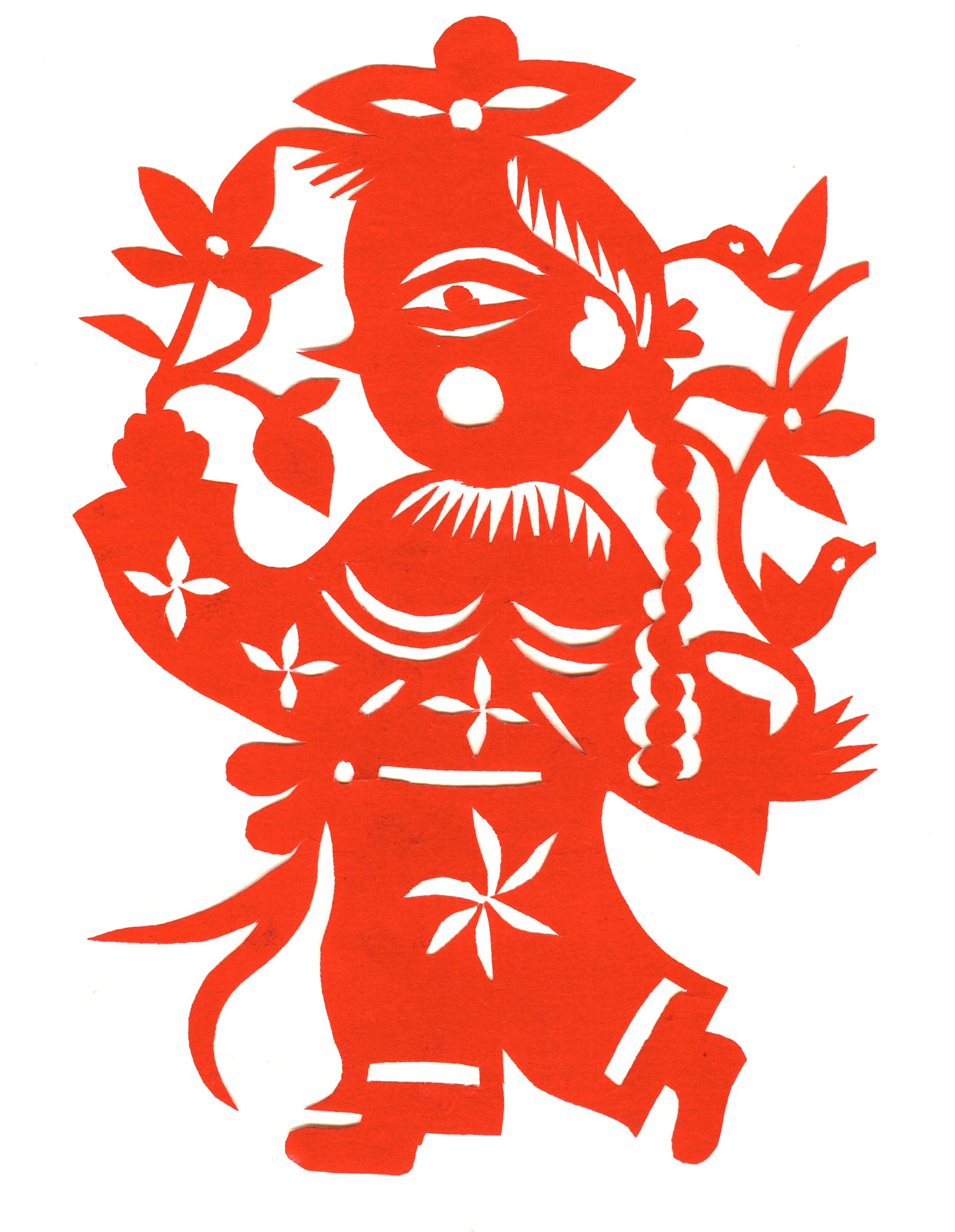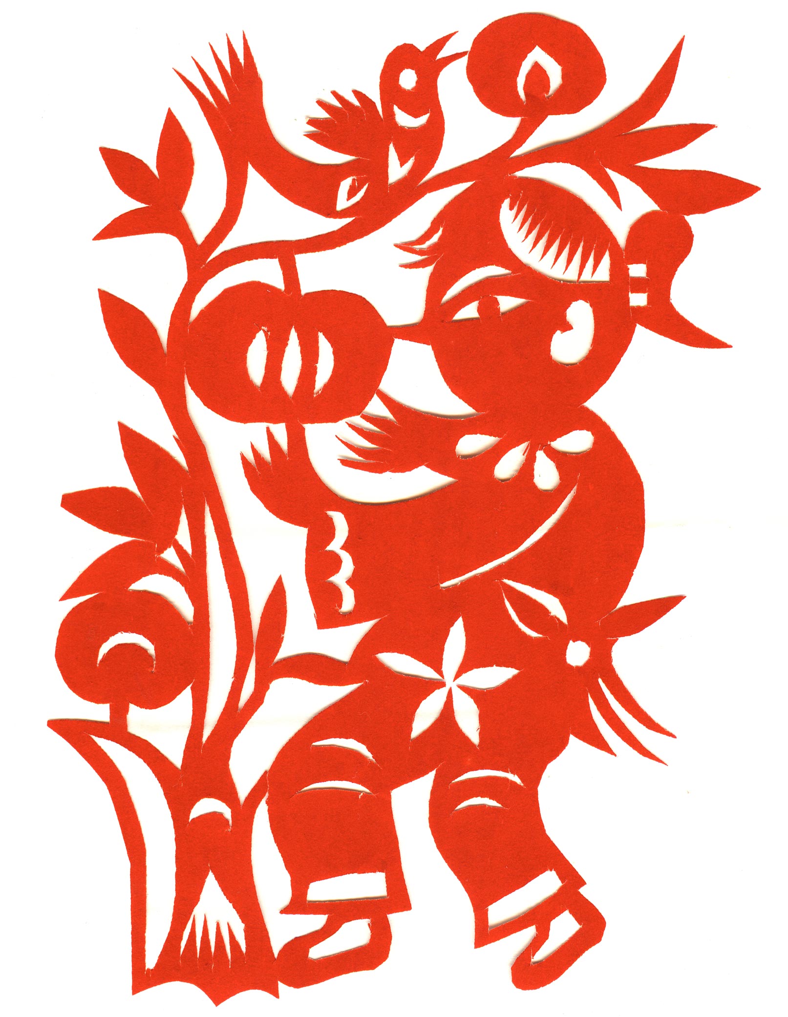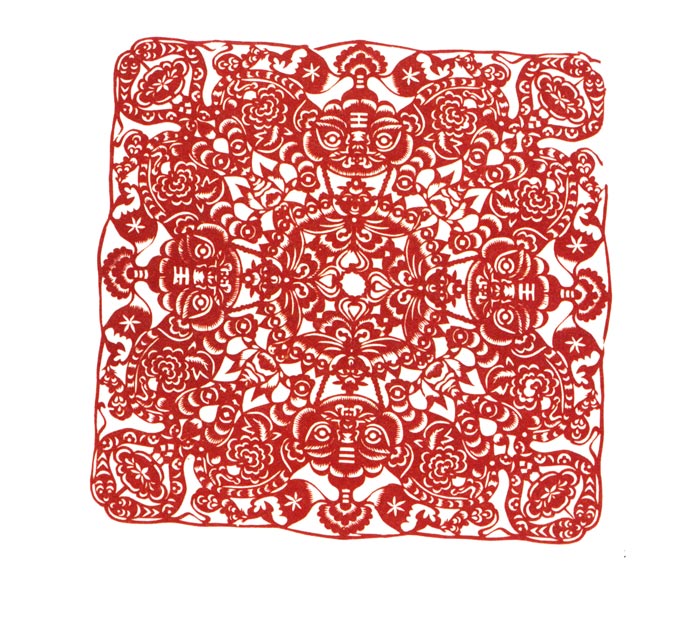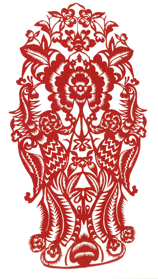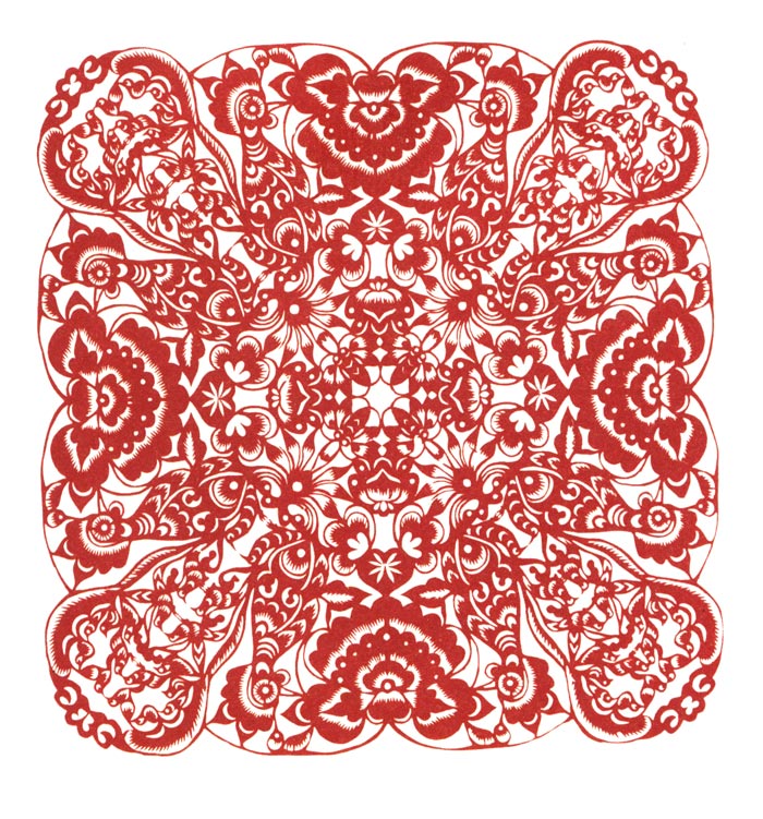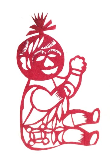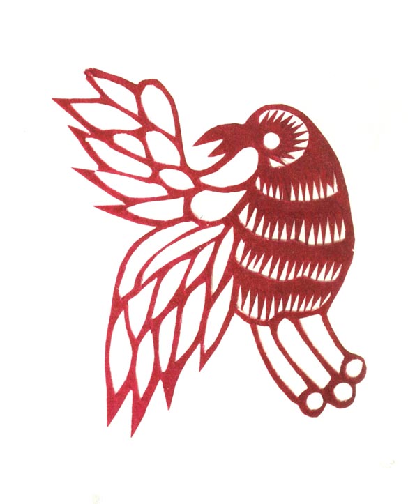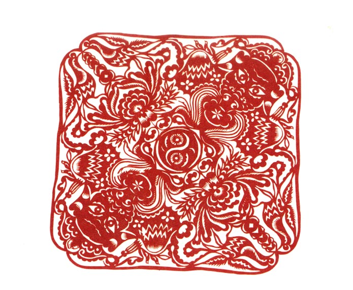 杨梅英在剪纸活动中善于吸取别人剪纸的精华,并能消化演变在自己的作品中。