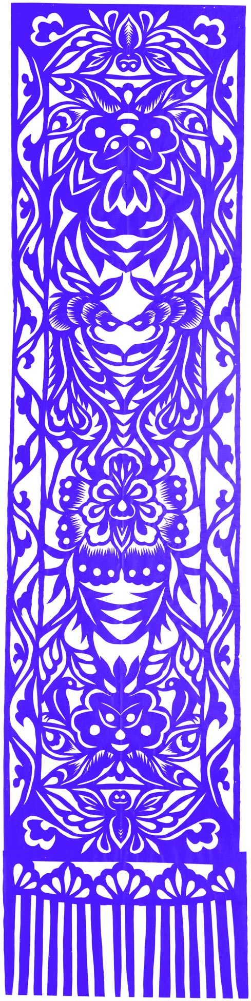 杨梅英,女,1941年生,小学文化程度,洛川县凤栖镇城关洛川剪纸第二代杰出代表,陕西省第二批非物质文化遗产剪纸技艺传承人。她性格开朗,快手快嘴,干净利落,年轻时在剧团演过戏。后来爱上了剪纸绣花、捏面花和泥塑,样样都能做出名堂来。她剪起剪纸来,便是没白天没黑夜,头不抬、眼不眨的拼命剪,大张大张的充满生机的大团花出现了。当她捏起面花时,手法利落、想象丰富,一会就能捏出各式各样的“莲生子”、“龙戏凤”、“蝶扑花”,插在馄饨上,仿佛变成了有生命的动植物世界。为了捏泥塑,她竟跑上百里地挖土,几十件离奇古怪的泥娃娃、泥罐子捏成了。