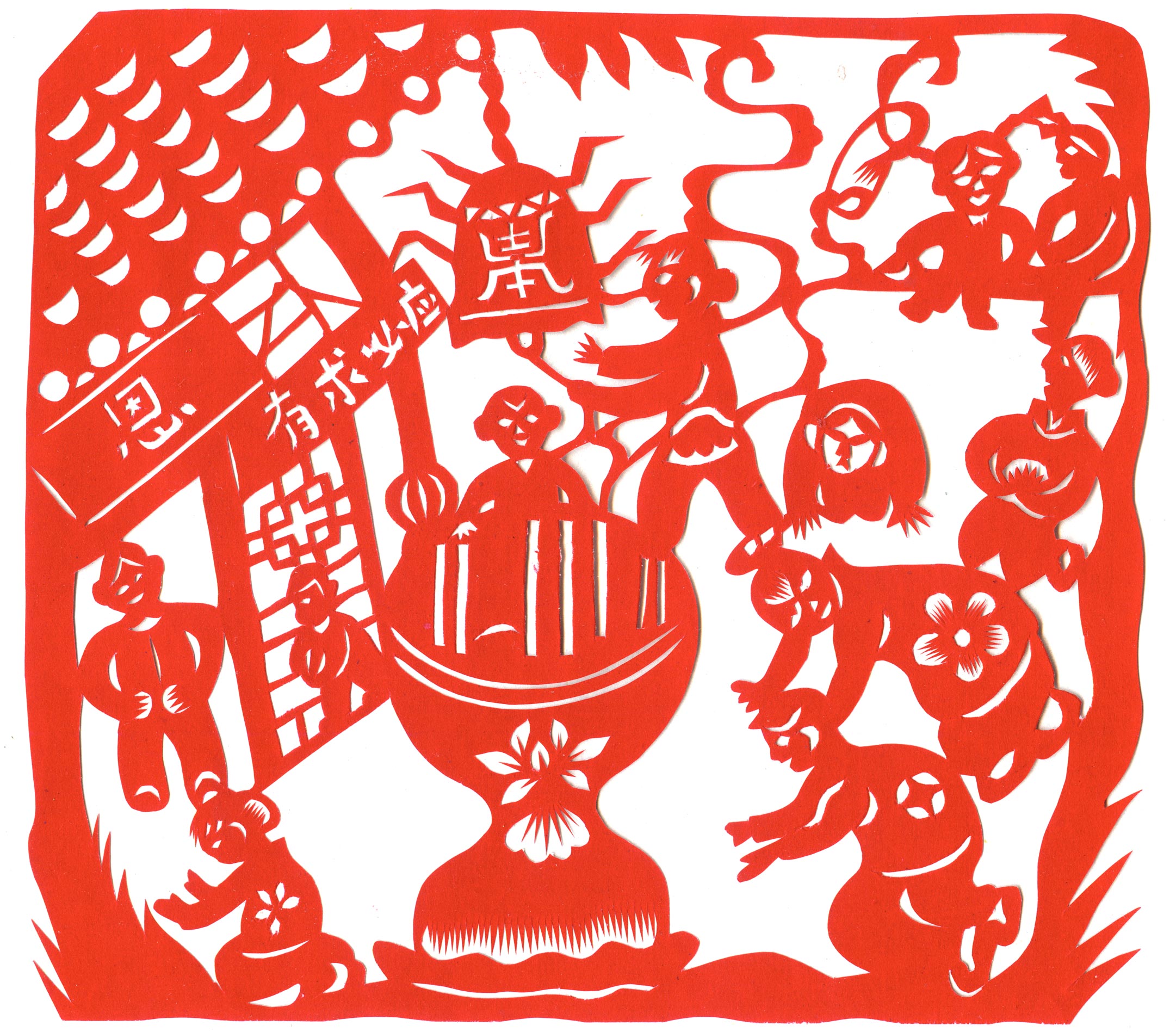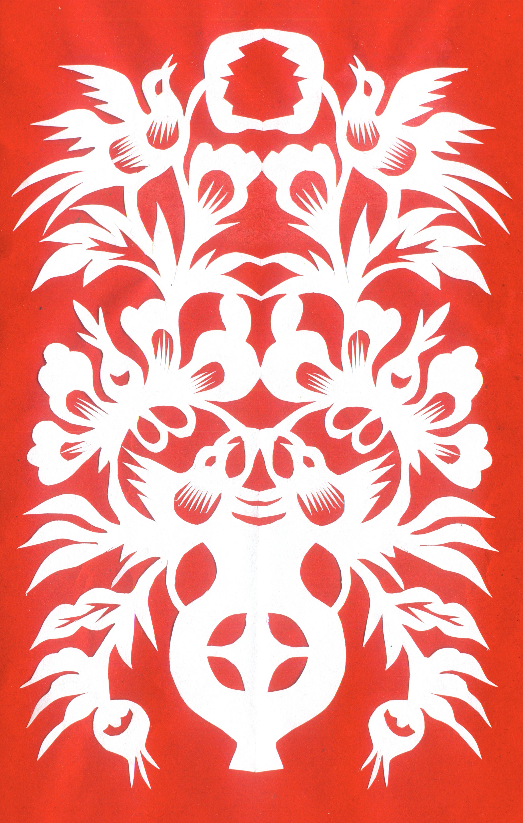 剪纸古朴、凝练、简洁、大气,增加现代人的审美意识,剪纸明快洒脱。她的大幅作品构思巧妙,构图宏大,寓意丰富,内涵深刻,形成了鲜明的个性特点。