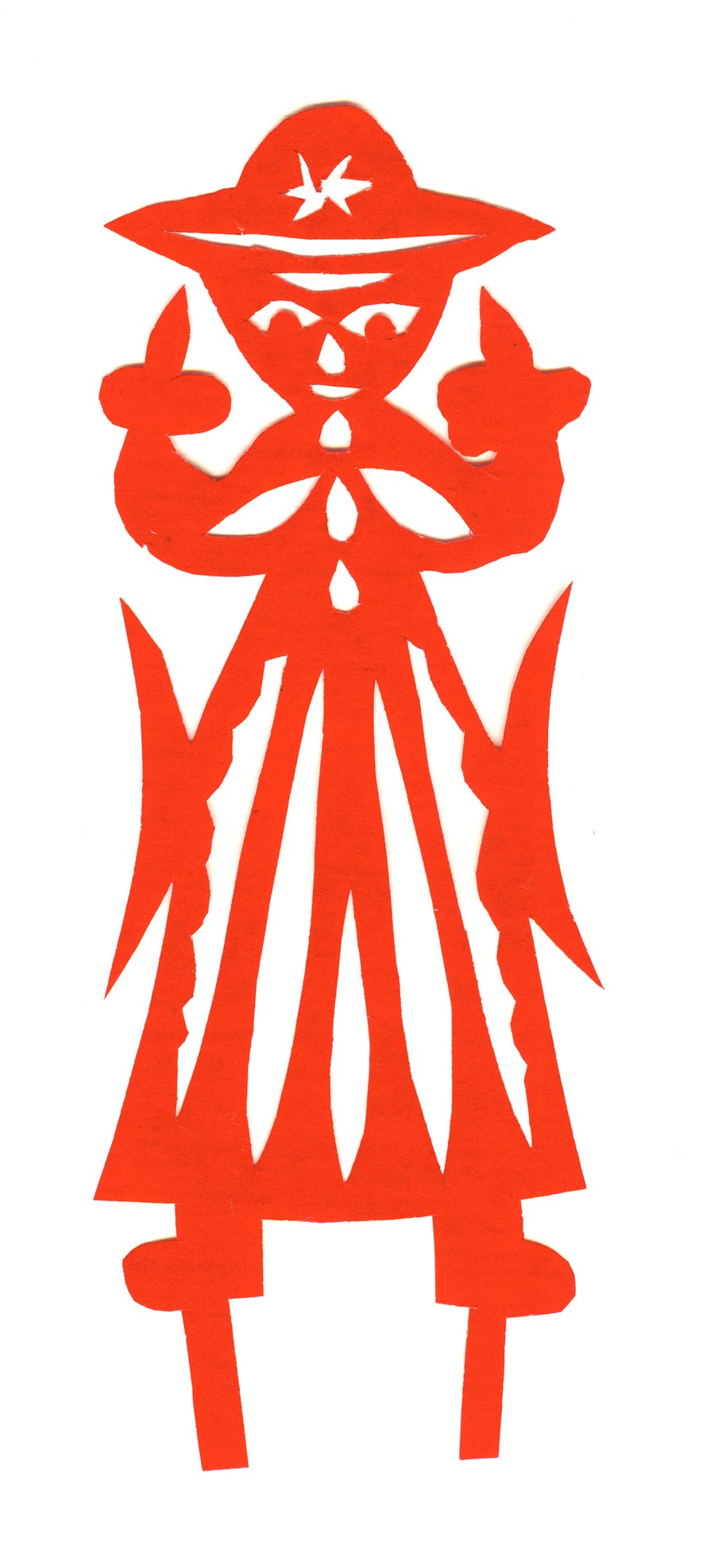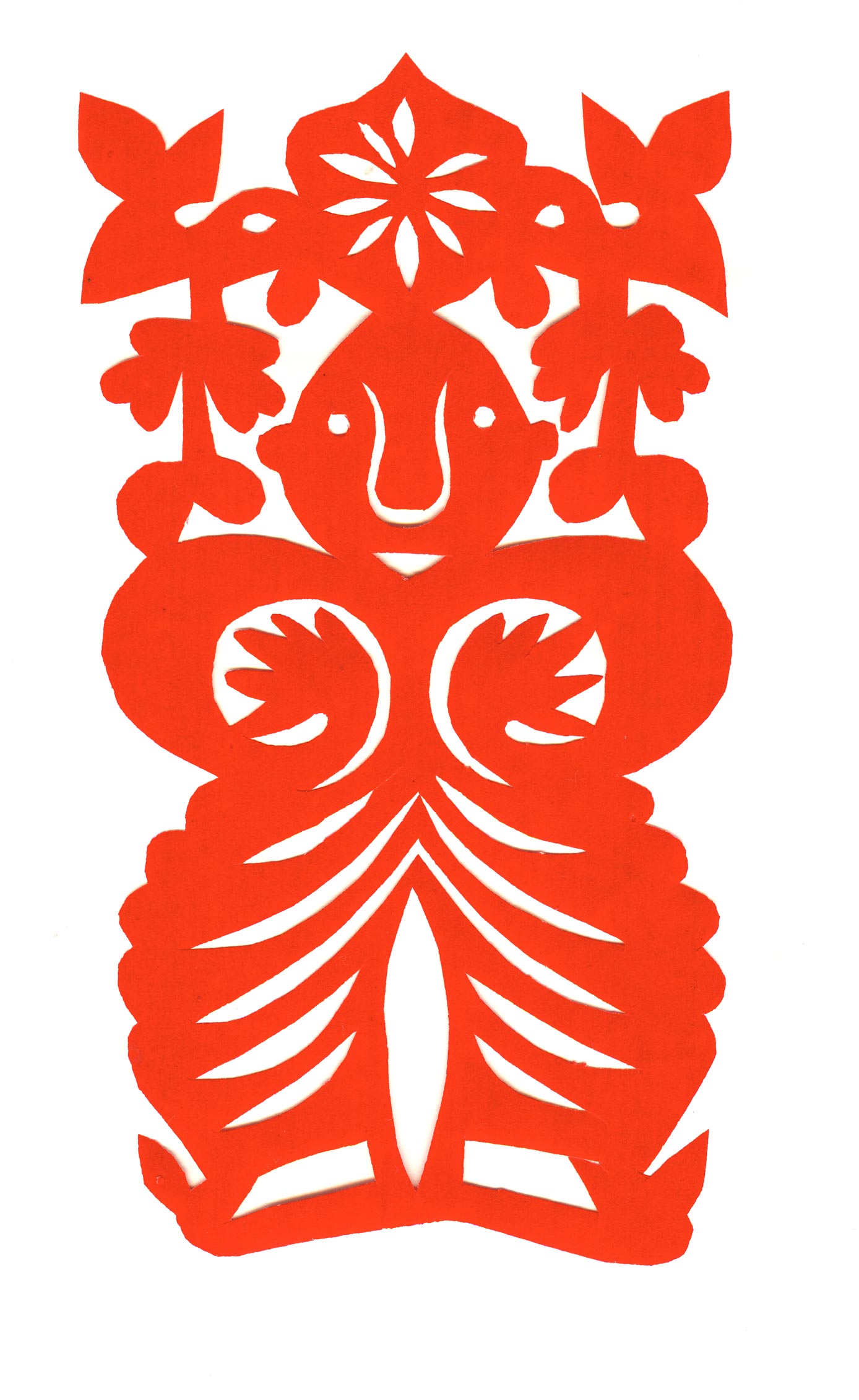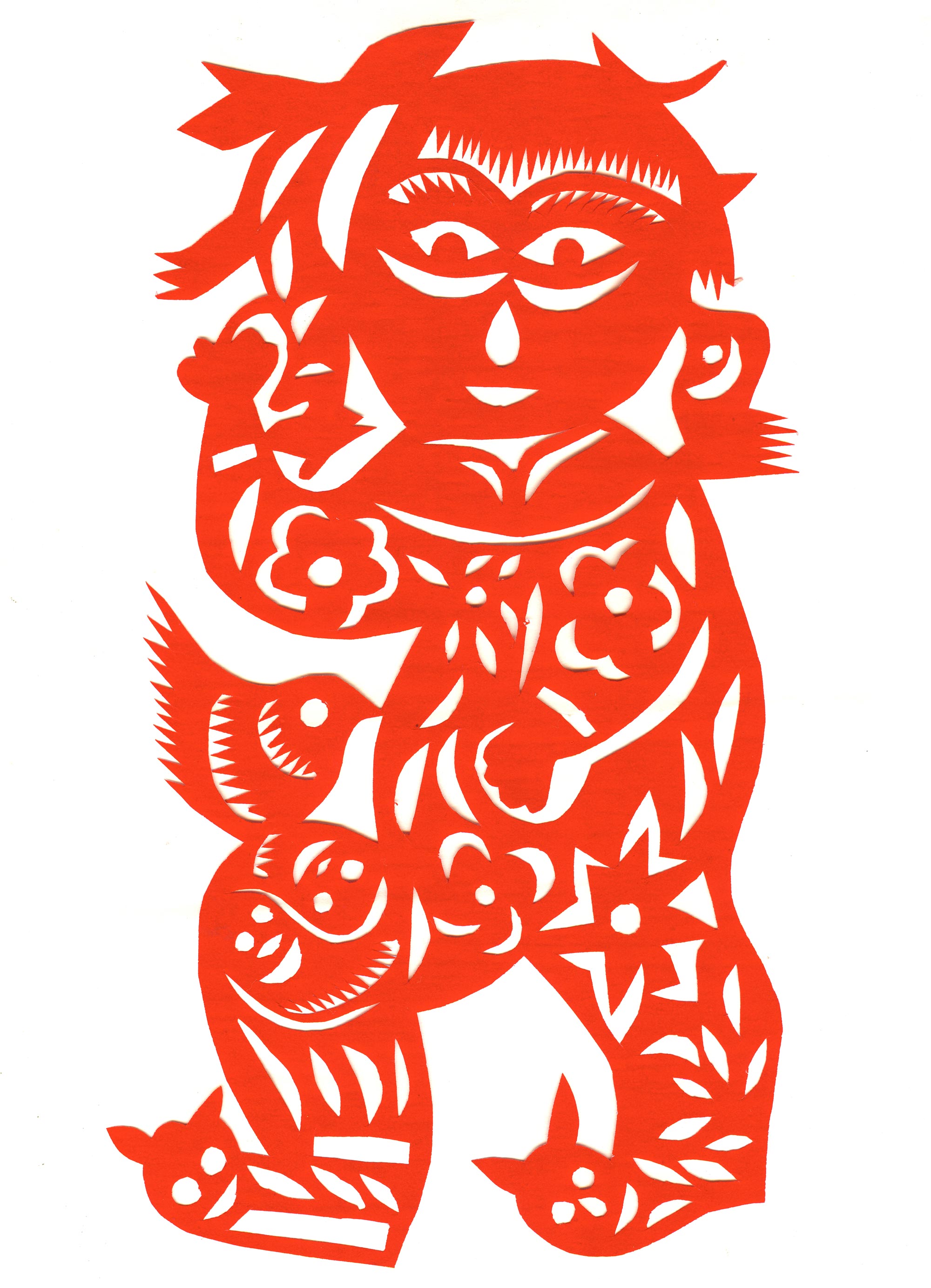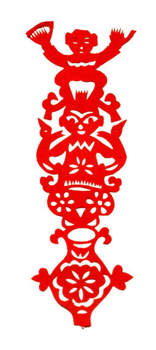 她的早期剪纸融合在地域风格之中,讲究以细为巧,十分“打眼”。她60岁以后,剪纸风格发生了较大变化,从华丽细致的装饰剪纸变成了粗犷概括的写意型剪纸。剪纸虽然粗犷,但粗中有细,粗中有味。她的剪纸已不再是仅供贴在窗子上的窗花了,而是在表现人的生命价值,努力在完善自我,圆满梦想。