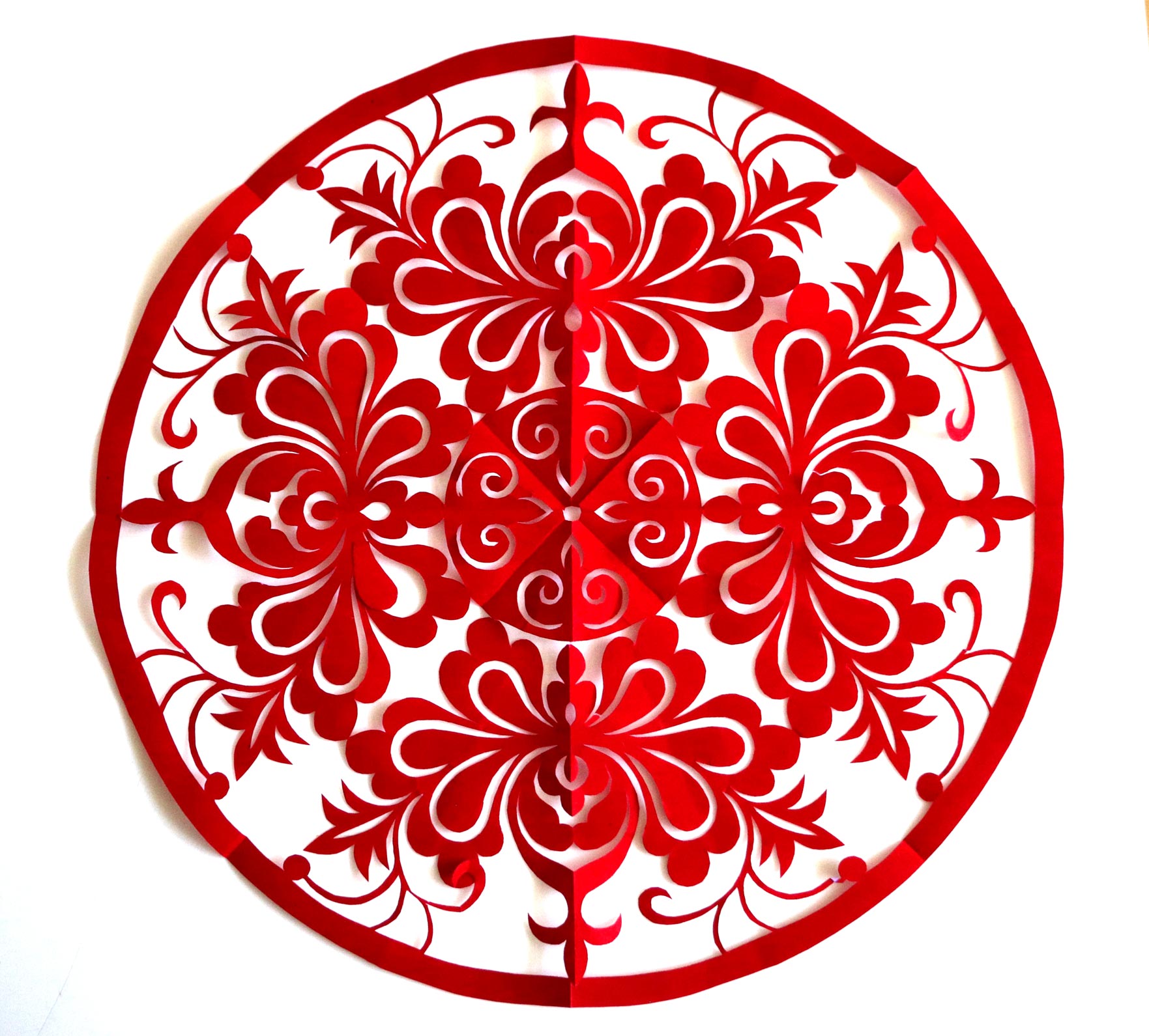 李园园18岁那年,五姨韩村爱当时跟着村上剪纸巧手余泽玲学剪纸,让她也跟上学,并给她剪刀,给她纸,教她用煤油灯熏剪纸样,教她画生肖样,教她剪花花花草草。于是她每天忙完大棚菜的活计后,就坐在大棚墙上学剪纸。后来她也拜余泽玲为师,有什么不会的就去问。余泽玲是她二姨家的二儿媳妇,是安塞剪纸的大名家,人很淳朴,很有耐心,一遍遍讲给她该怎样画,该怎样剪,错了没关系,再重画重剪。让她多临摹传统花草和动物,剪过的要牢记,冒剪时要灵活运用。19岁时,李园园为了弟妹上学,她学会了理发手艺,并在王窑乡开了个理发店,一边为人理发,一边学习剪纸技艺。
