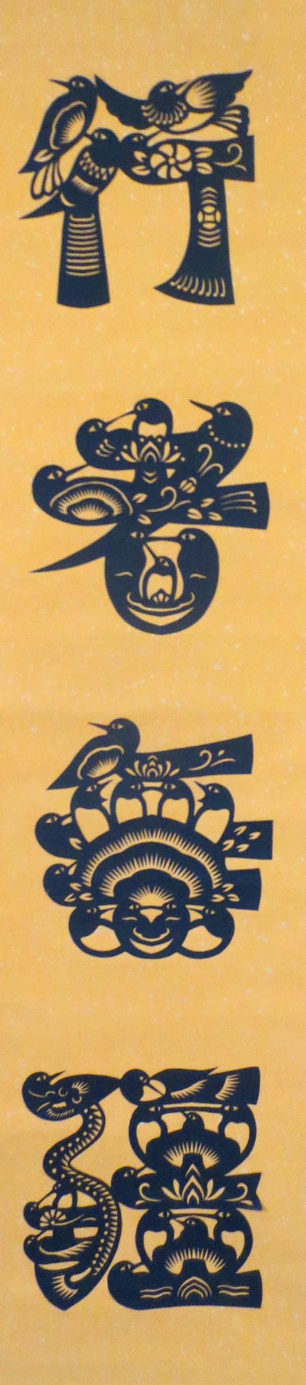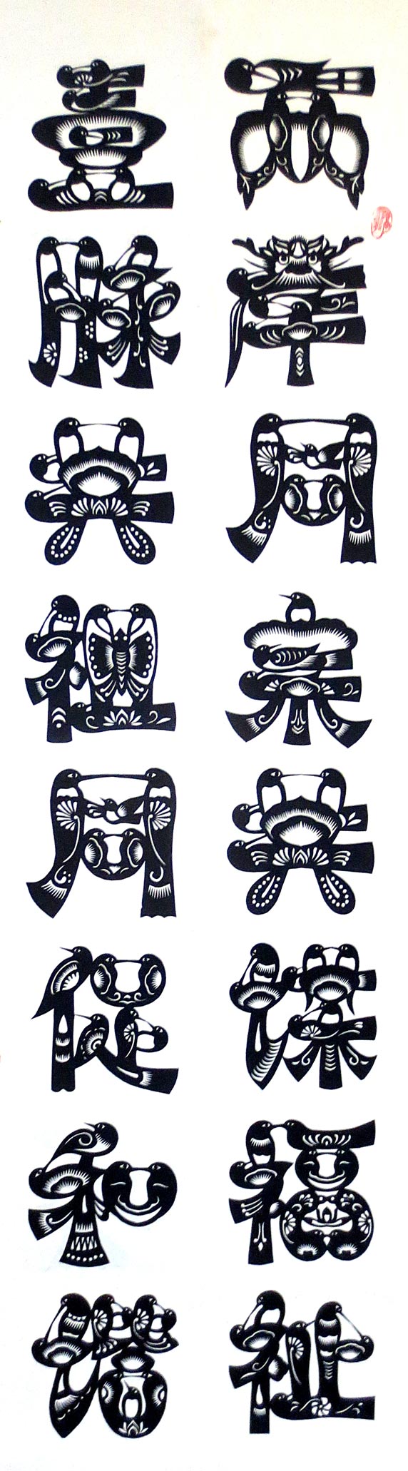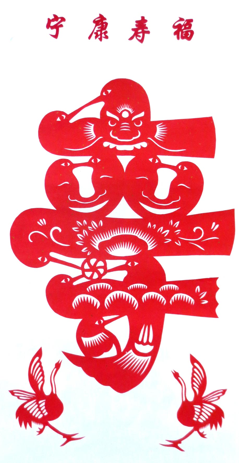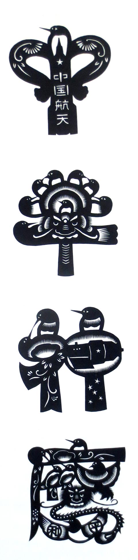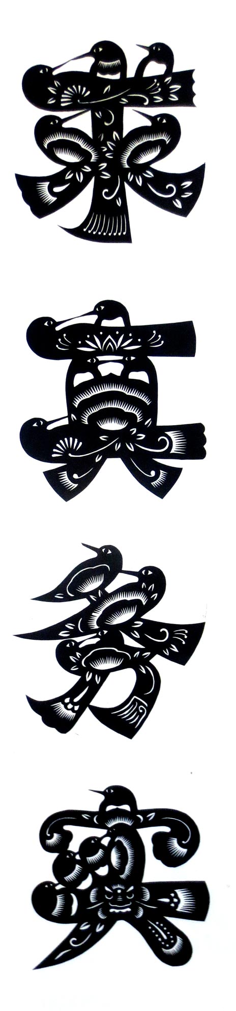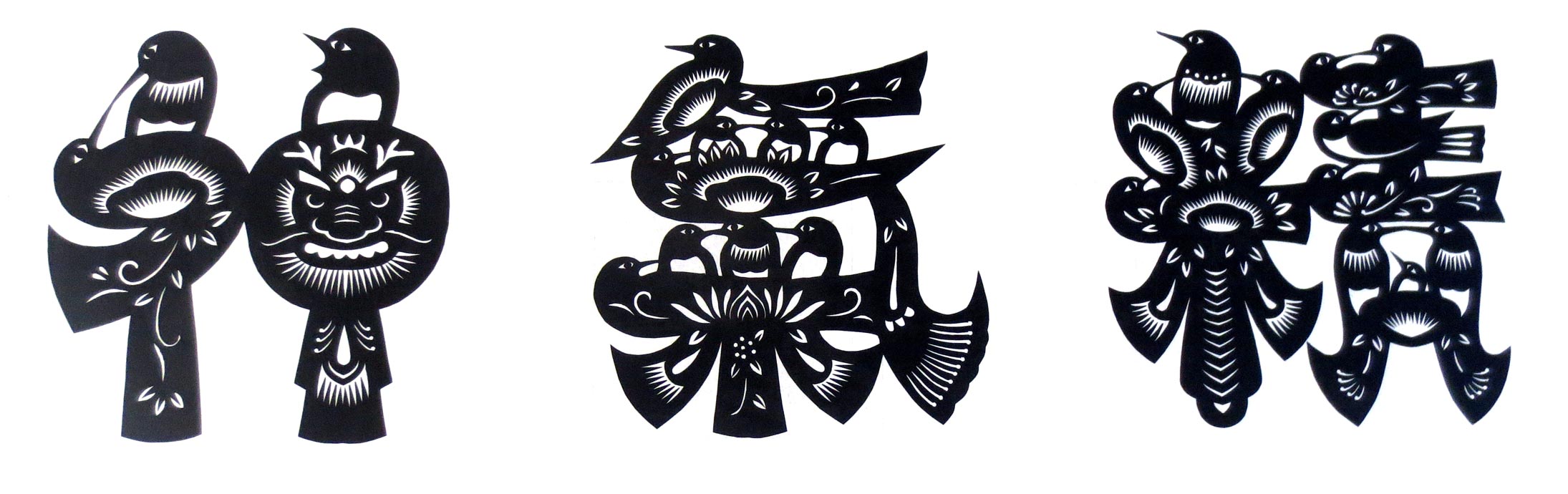 李雁敏的剪纸及“鹊鸟字”剪纸造型粗犷质朴、构思巧妙新颖,结体严谨,形成了自己鲜明的剪纸风格。