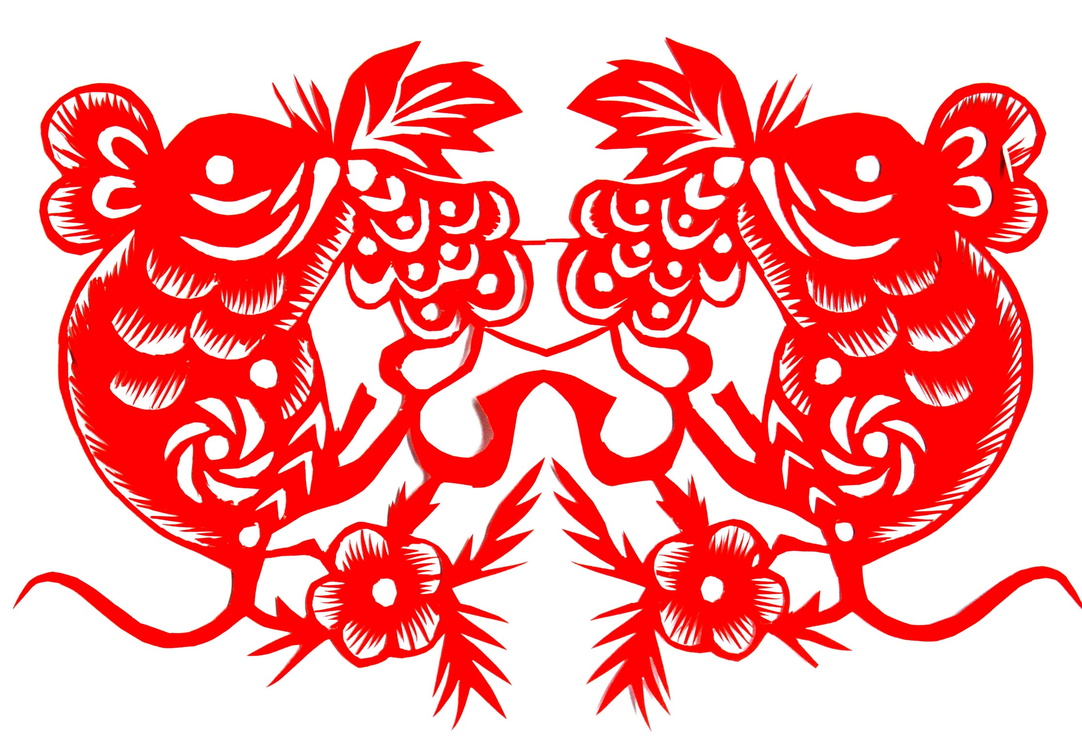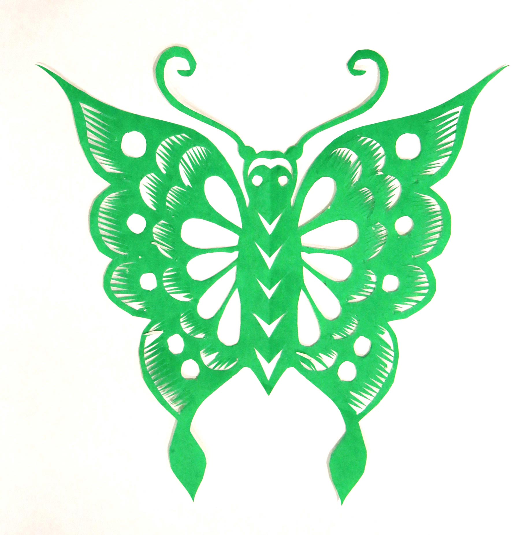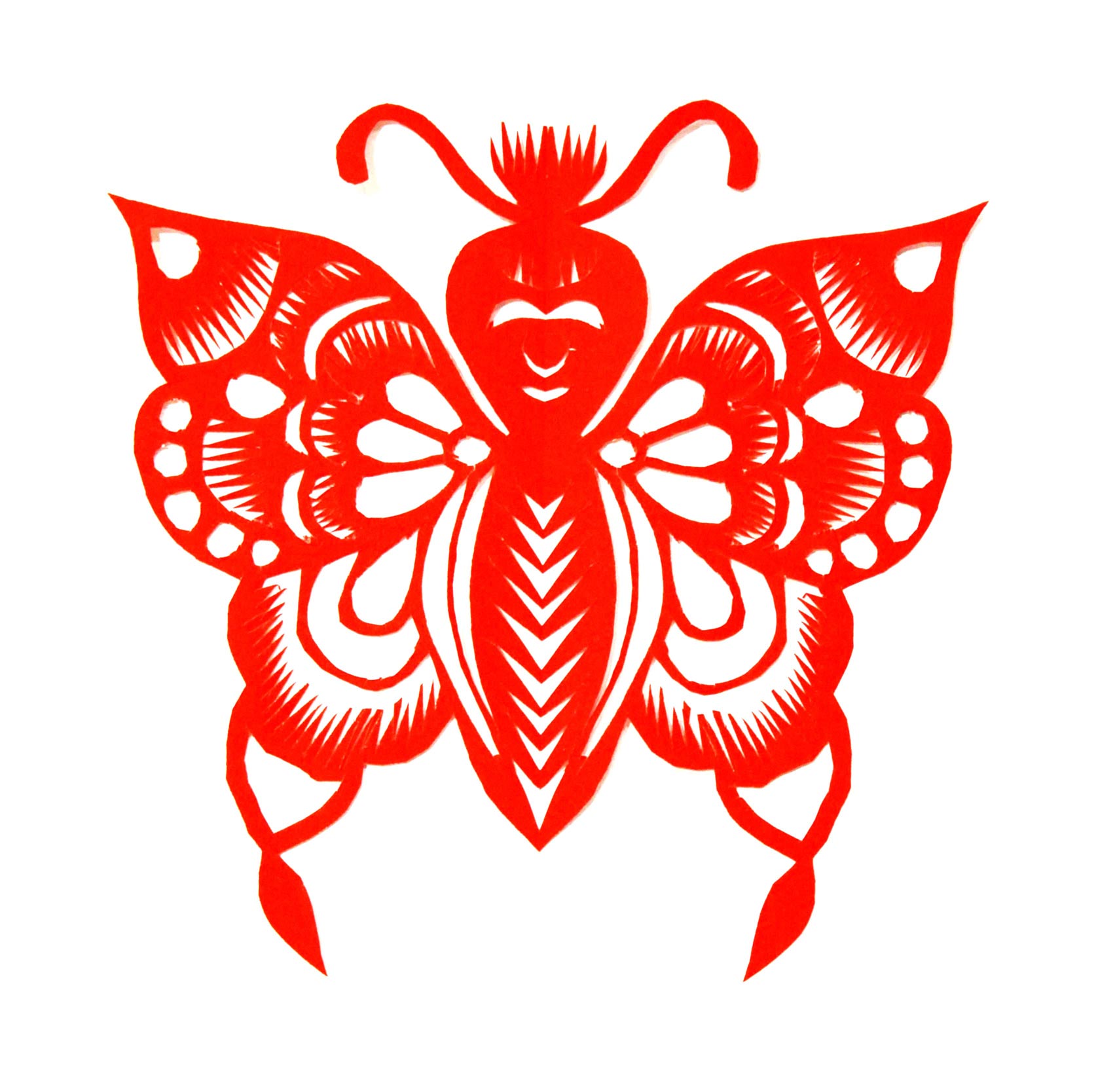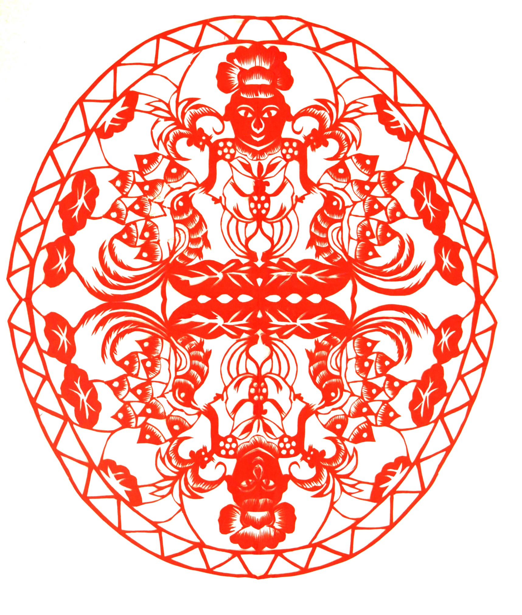 马建玲的剪纸造型生动自然,粗犷大气,装饰没有程式,画面有点有线,灵动随意,形成了自己较鲜明的艺术风格。