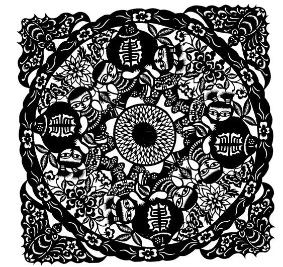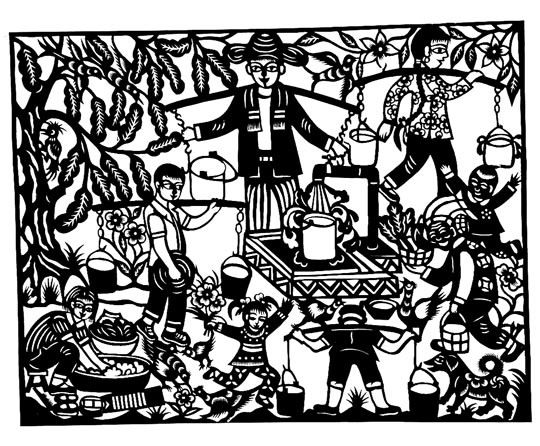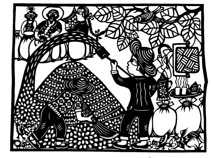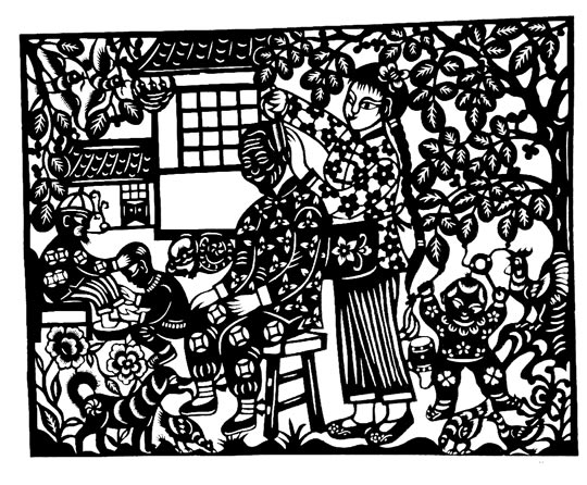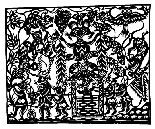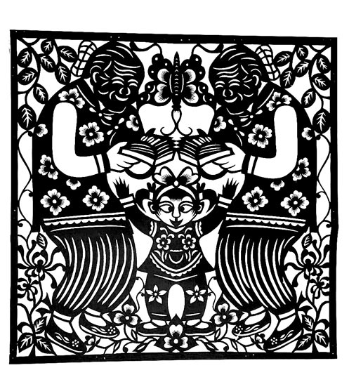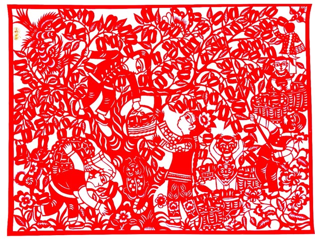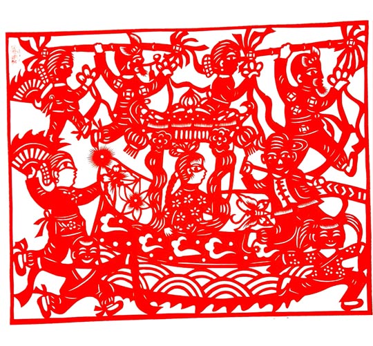 王改银的剪纸粗犷简洁,生动淳朴,剪工利落洒脱。她剪小幅剪纸不描不画,下刀直剪,形象神韵兼备,装饰特点浓郁。剪大幅剪纸,构思奇巧,构图丰满,线条随意流畅。