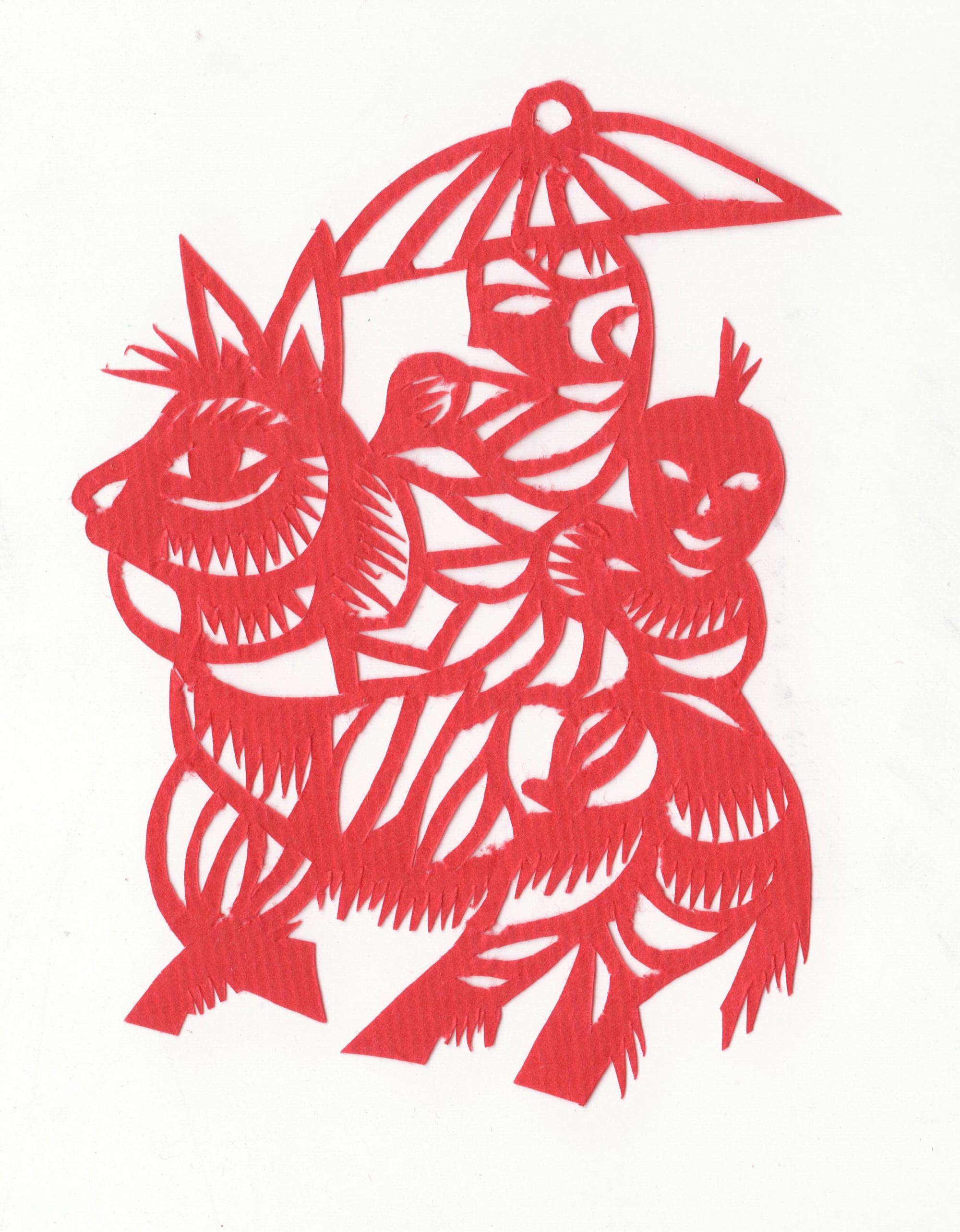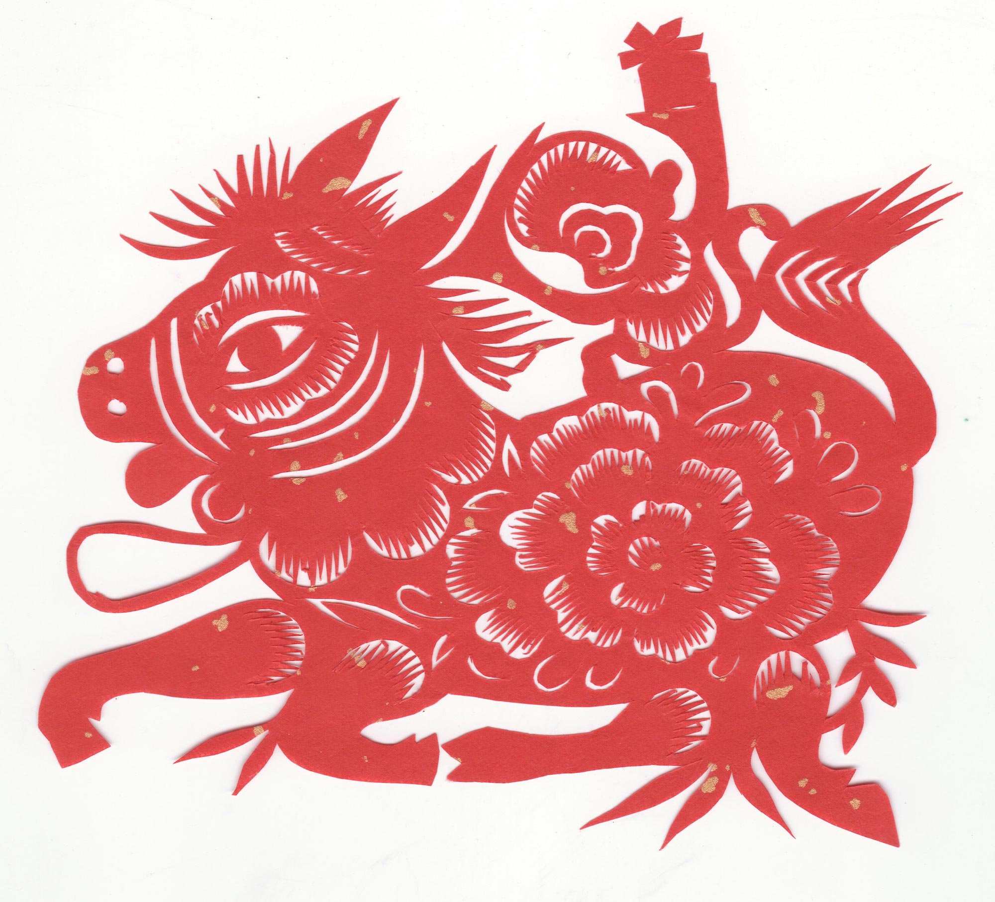 孙学义小时看人家窗子上的窗花很好看,到家里拿出铅笔,照着窗花画出来,再回家剪。20世纪80年代村里兴贴窗花,当时家里的窗花由母亲来剪, 8岁时他也把自己剪的窗花贴在窗子上。母亲认为男娃学剪纸没出息,不让他学,看到他剪就打他,后来偷着剪。每当母亲给别人剪花时,他就跟着看,把母亲剪的花样子用心记下来,回家再偷着剪出,村里人见他剪花都耻笑。父亲见儿子剪花也不支持,一次看到给邻居家剪的花还不错,也就不管了。只要不耽误学习,就随他的兴趣去学。村里有位婶子是村里的剪纸高手,年龄很大,婶子丈夫姓孙,他叫她孙婶。他没事就去看婶子剪花。
