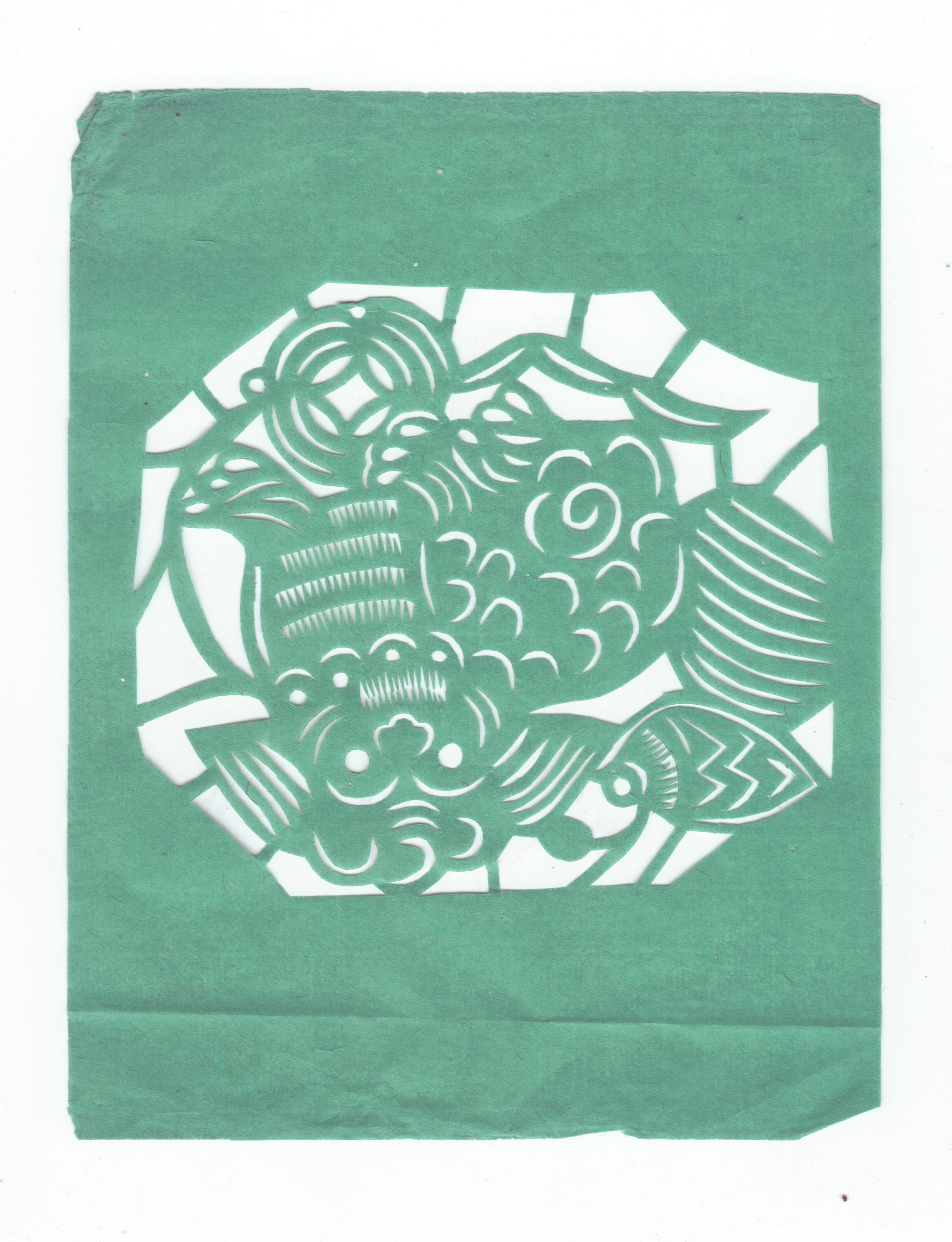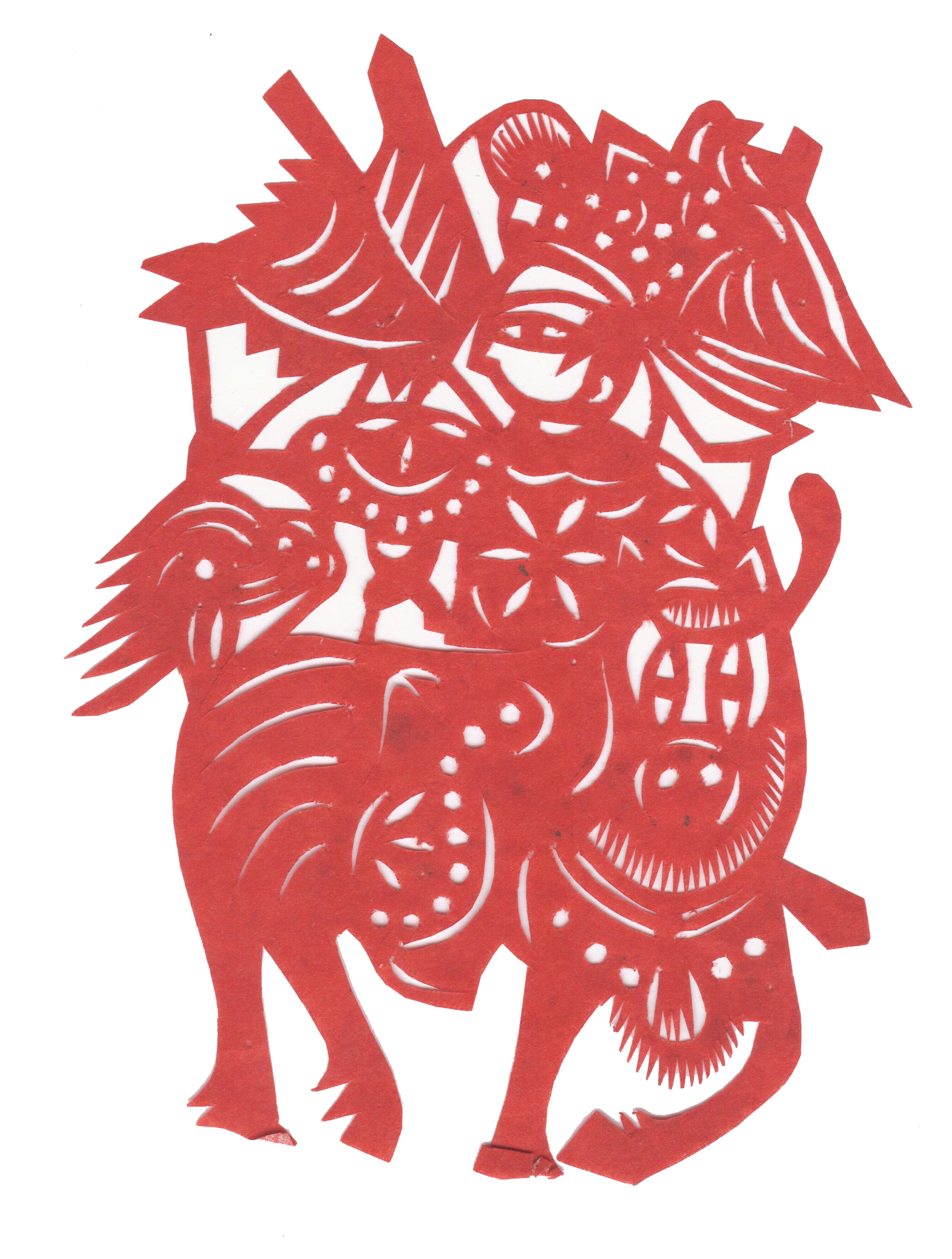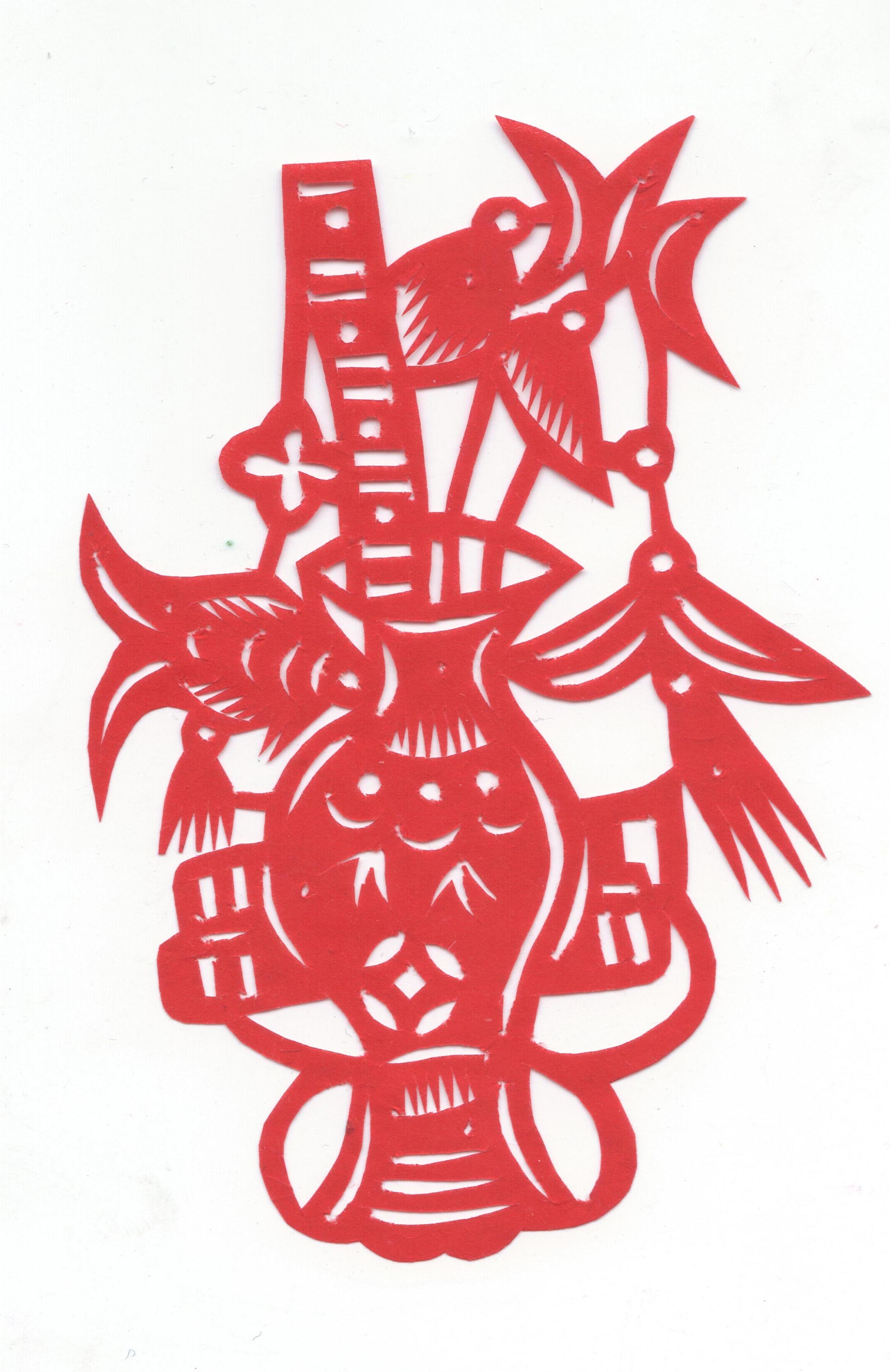 剪纸造型细腻生动,技艺熟练,线条流畅,带有浓厚的乡土气息