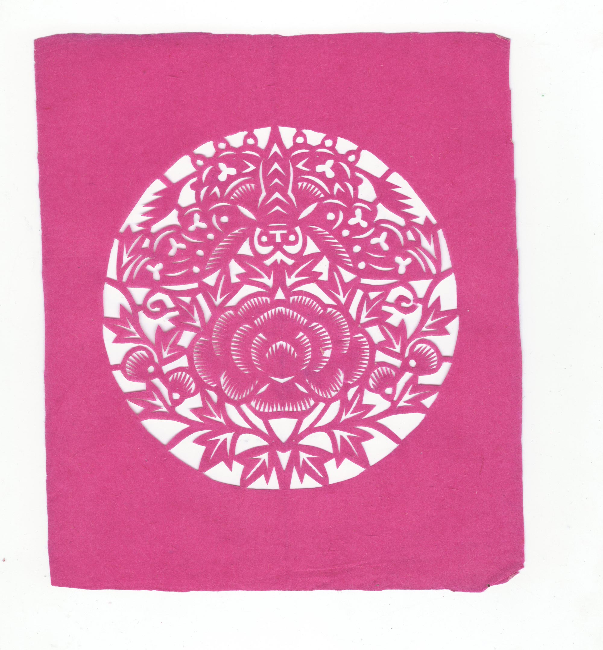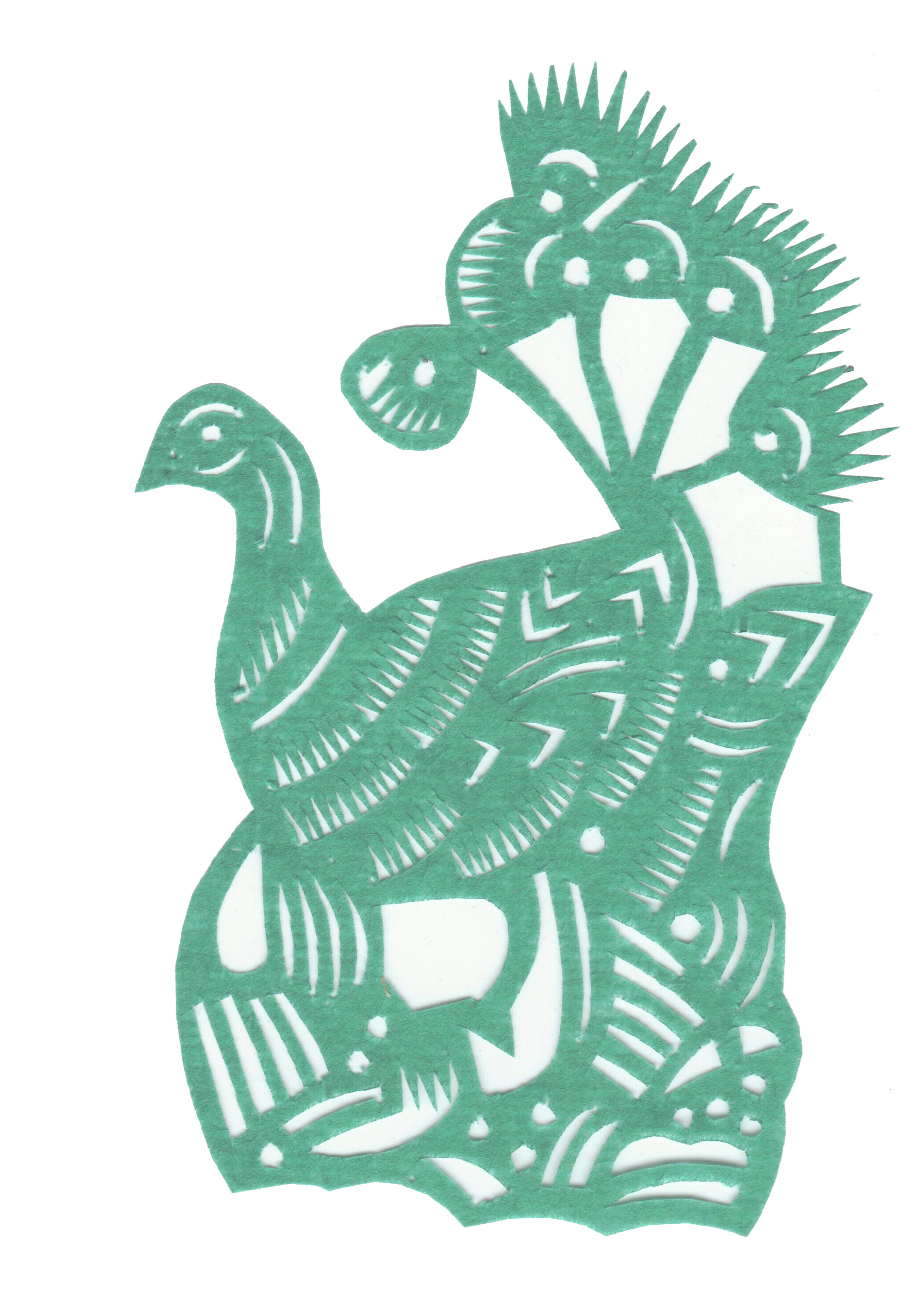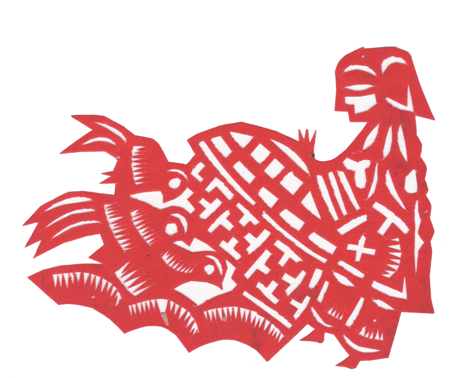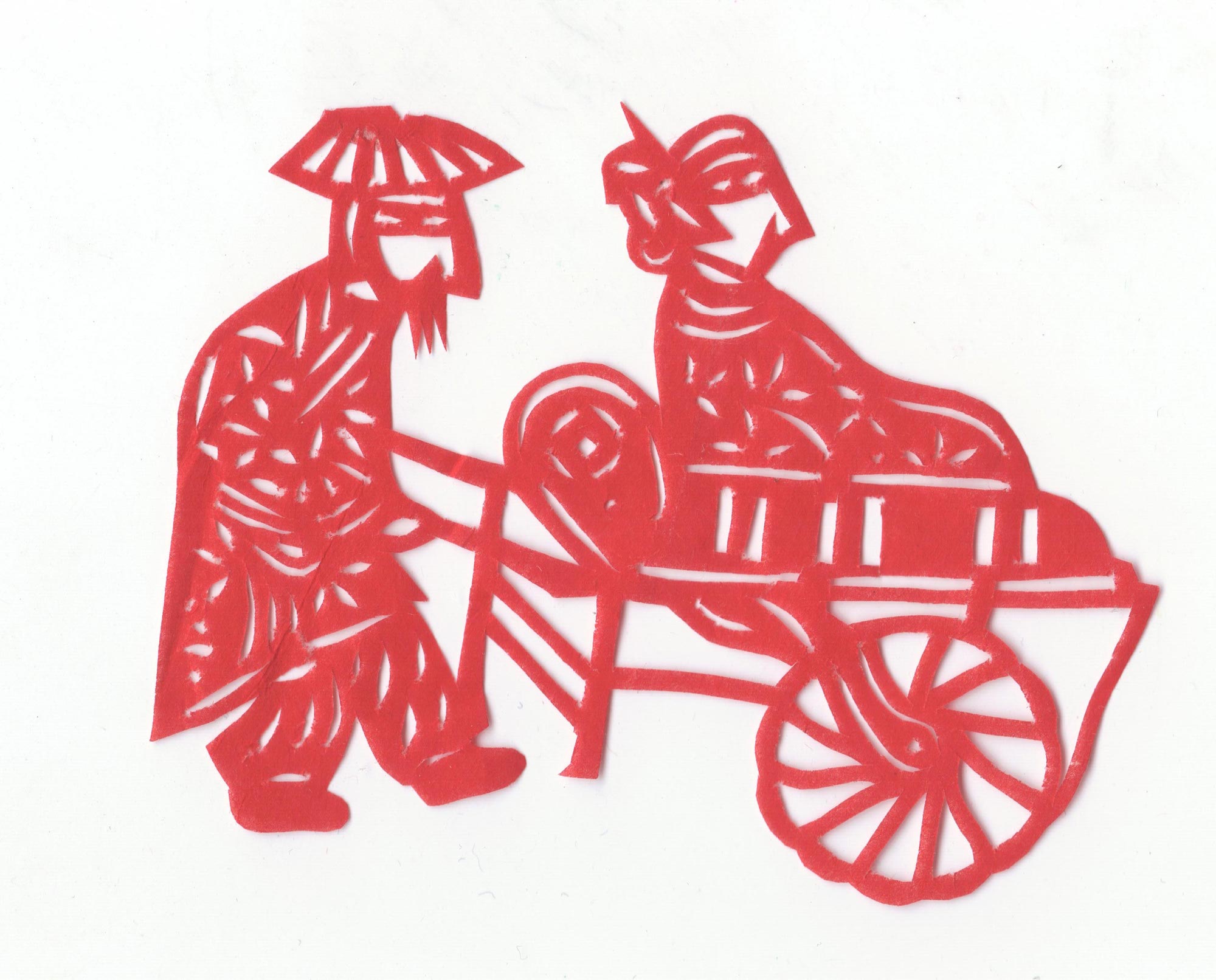 剪纸造型细腻生动,技艺熟练,线条流畅,带有浓厚的乡土气息