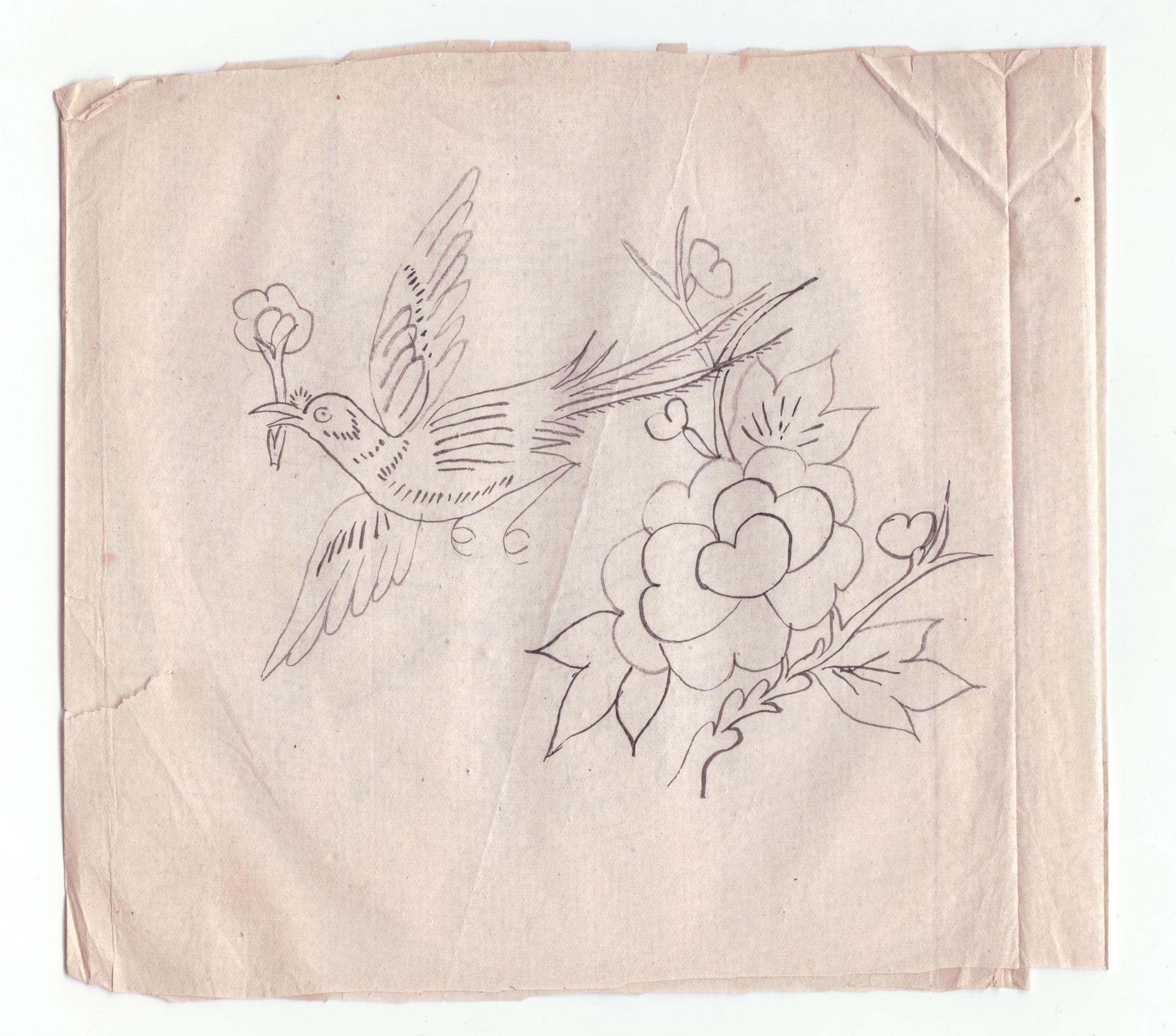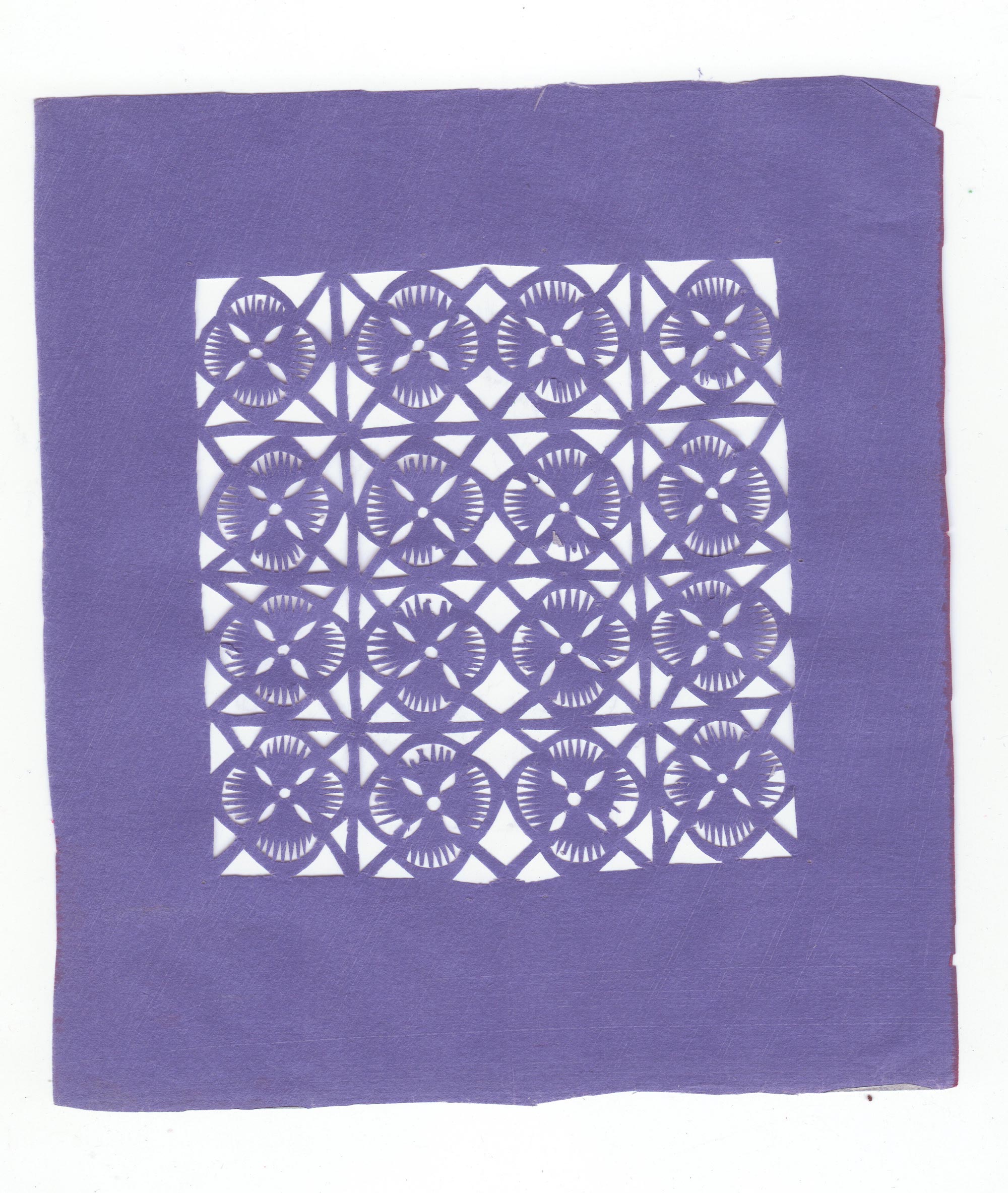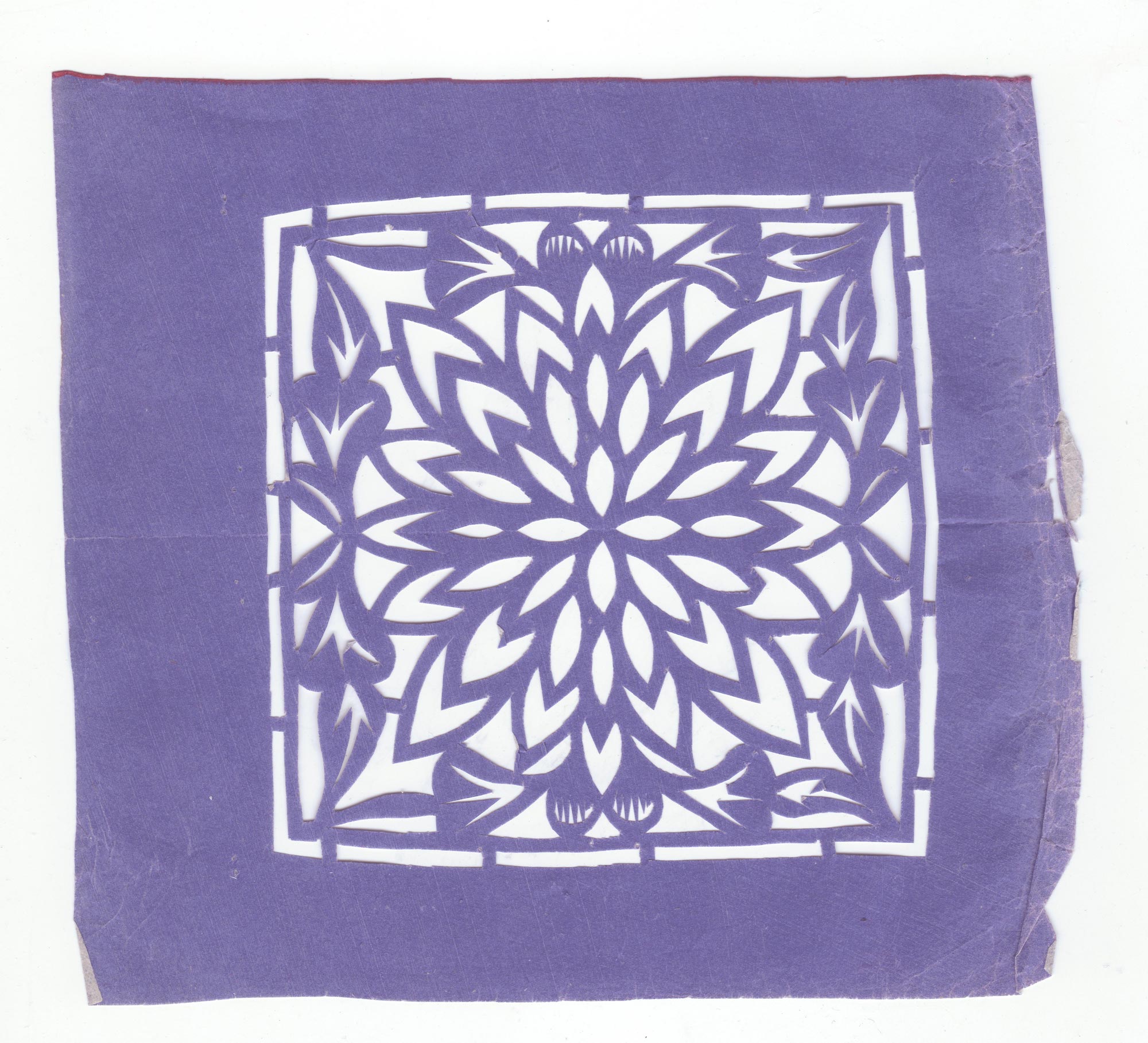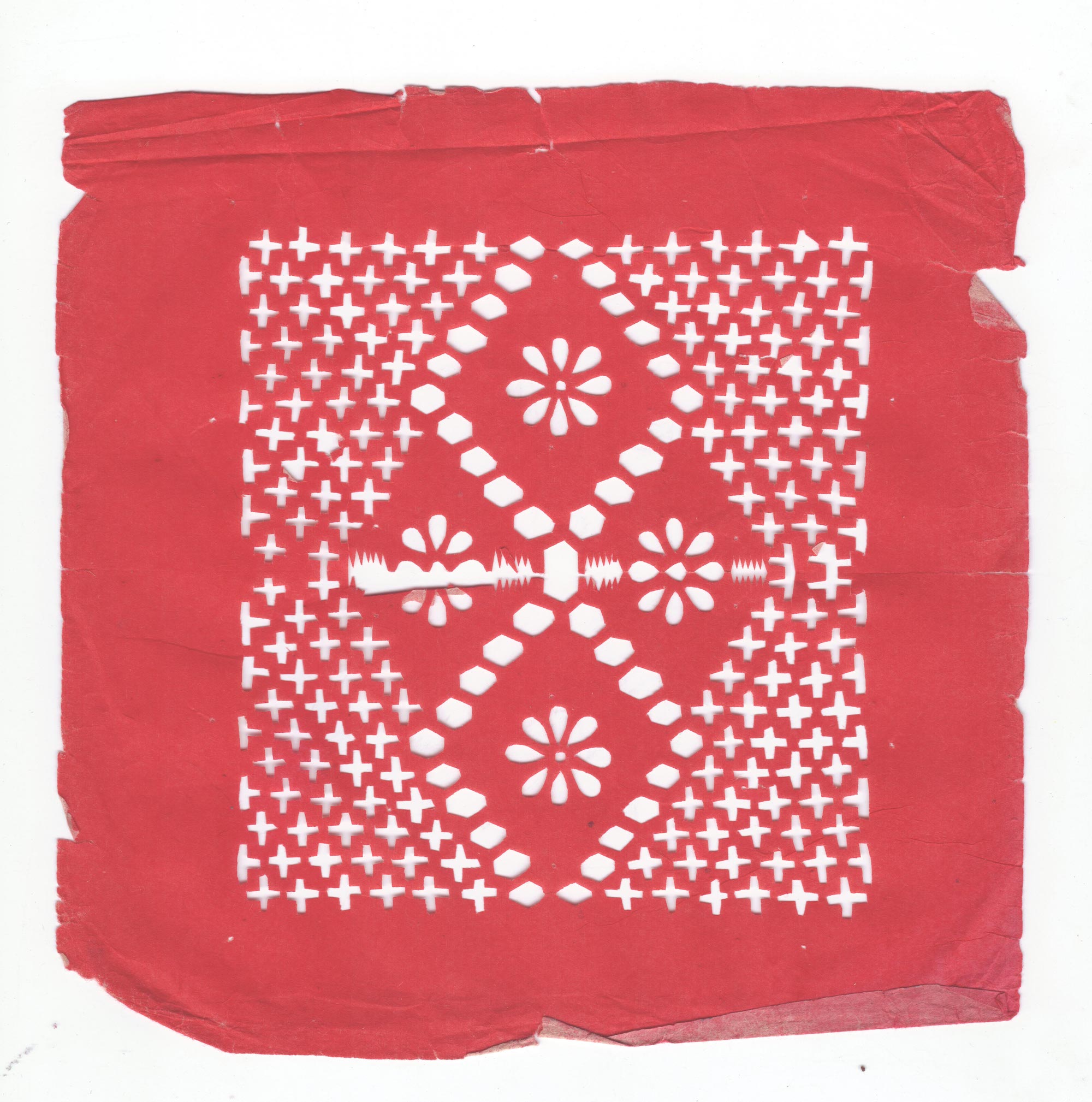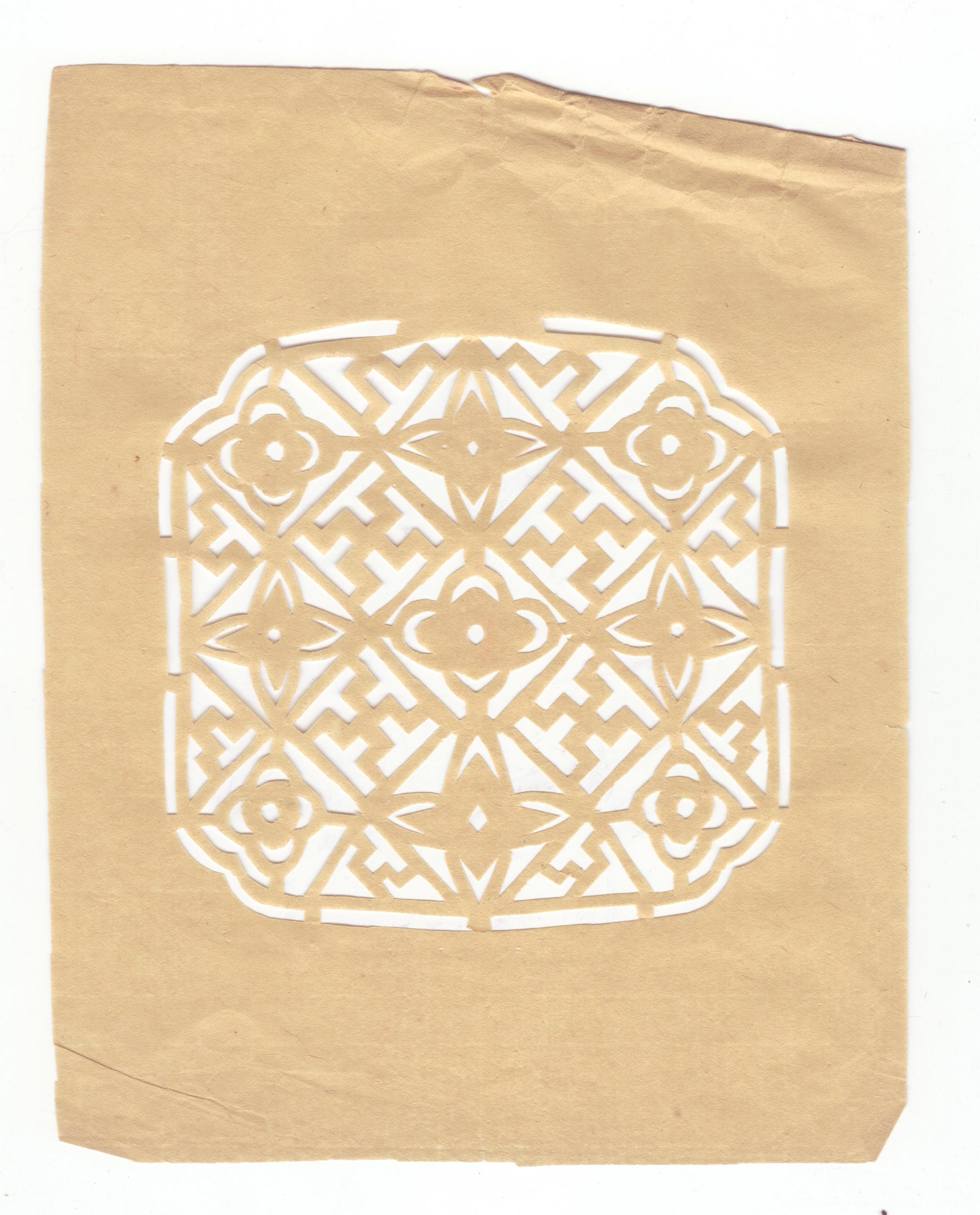 王秀云1962年结婚,那时21岁。婚后王秀云生育了4个娃娃,2儿2女,大儿烧砖窑,二儿当兵在外,二个女儿都学习了剪花。结婚后虽然带孩子、种地非常忙,但还是忙里偷闲的剪花,每年全家人的窗花都是她剪她贴。有了玻璃窗子之后才不剪花了,把自己剪的窗花收藏了起来,包剪纸的花袱子还是那个年代的粗布,熏样剪纸的报张透着时代的气息。有人找来想收购她的剪纸她都舍不得,一直保存到现在。平时过庙会时给庙上剪幡子、旗、斗等宗教剪纸。现在在王村镇上开了一家纸花店增加一些经济收入。