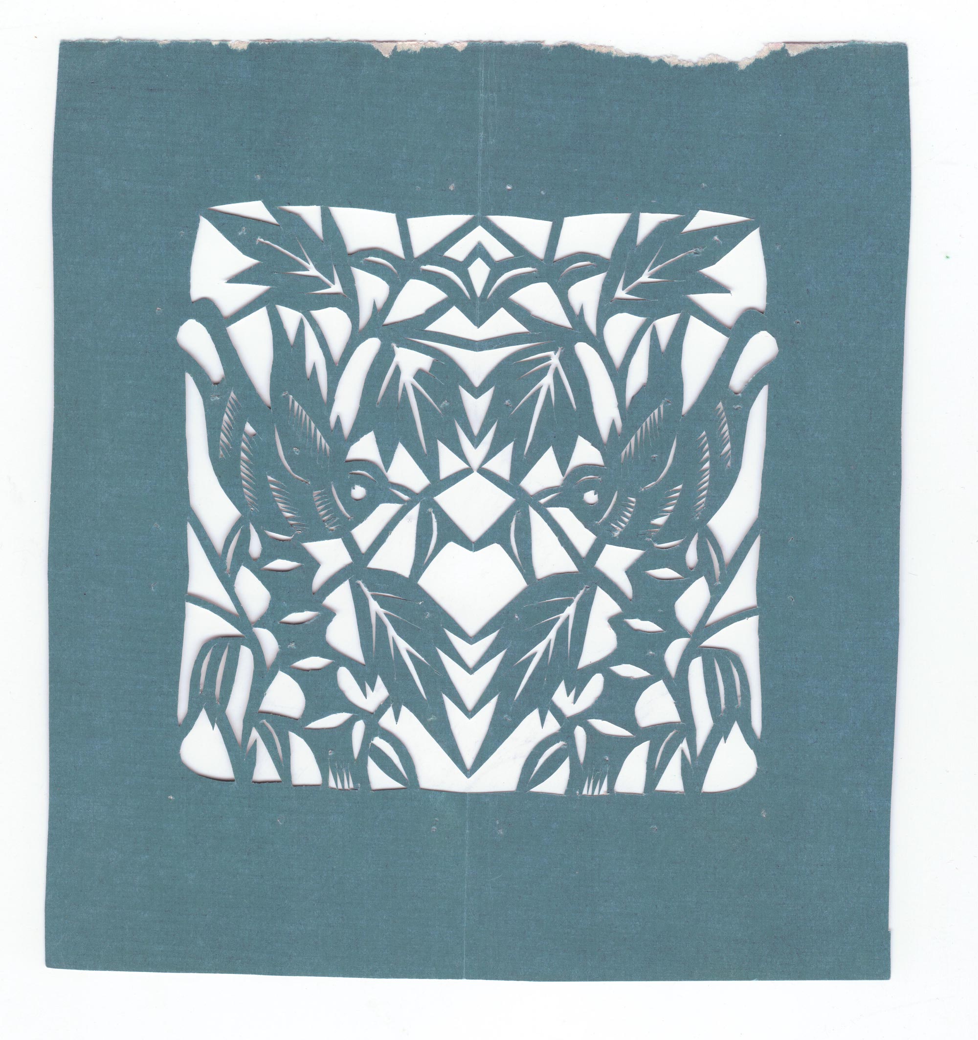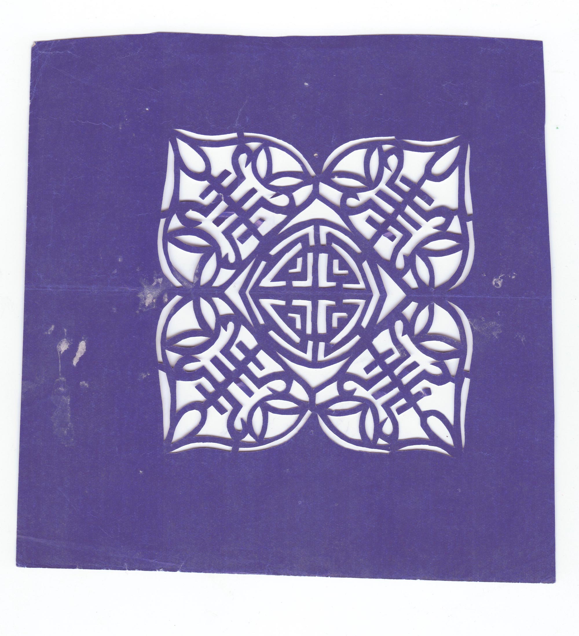 刘妮娃1980年结婚,当时25岁。婆家大王镇大王村老户。丈夫叫梁忠学,高中文化,没有什么手艺。出嫁后婆家都要贴窗花,新媳妇的手艺要展示一下,农村对妇女的要求都要会剪花,剪不好会被村里人耻笑,这才正式开始学着冒剪窗花,同时学织布,学做饭。当时剪不好,常常剪坏,坏了再重剪,一直剪到半夜,有时下雨不去地里劳动了,整整剪一天。有娃后,白天忙的没有时间,到晚上娃等睡了,便拿起剪刀剪上一阵。到过年了家家都要贴窗花,不剪不行,特别是腊月天要挤出时间剪,在腊月二十八、九就要贴好。贴窗花的习俗保持了十几年,2000年后家里经济状况好了盖了新房,都是大玻璃窗,渐渐的也就剪的少了,贴的少了。近几年村里村委会开始重视传统文化,以前爱剪花的妇女又开始剪窗花,还创作大幅的人物剪纸,刘妮娃见后心痒痒的,多年的剪纸爱好再次被焕发出来,加入到村上的剪纸队伍之中,创作了不少好的作品。