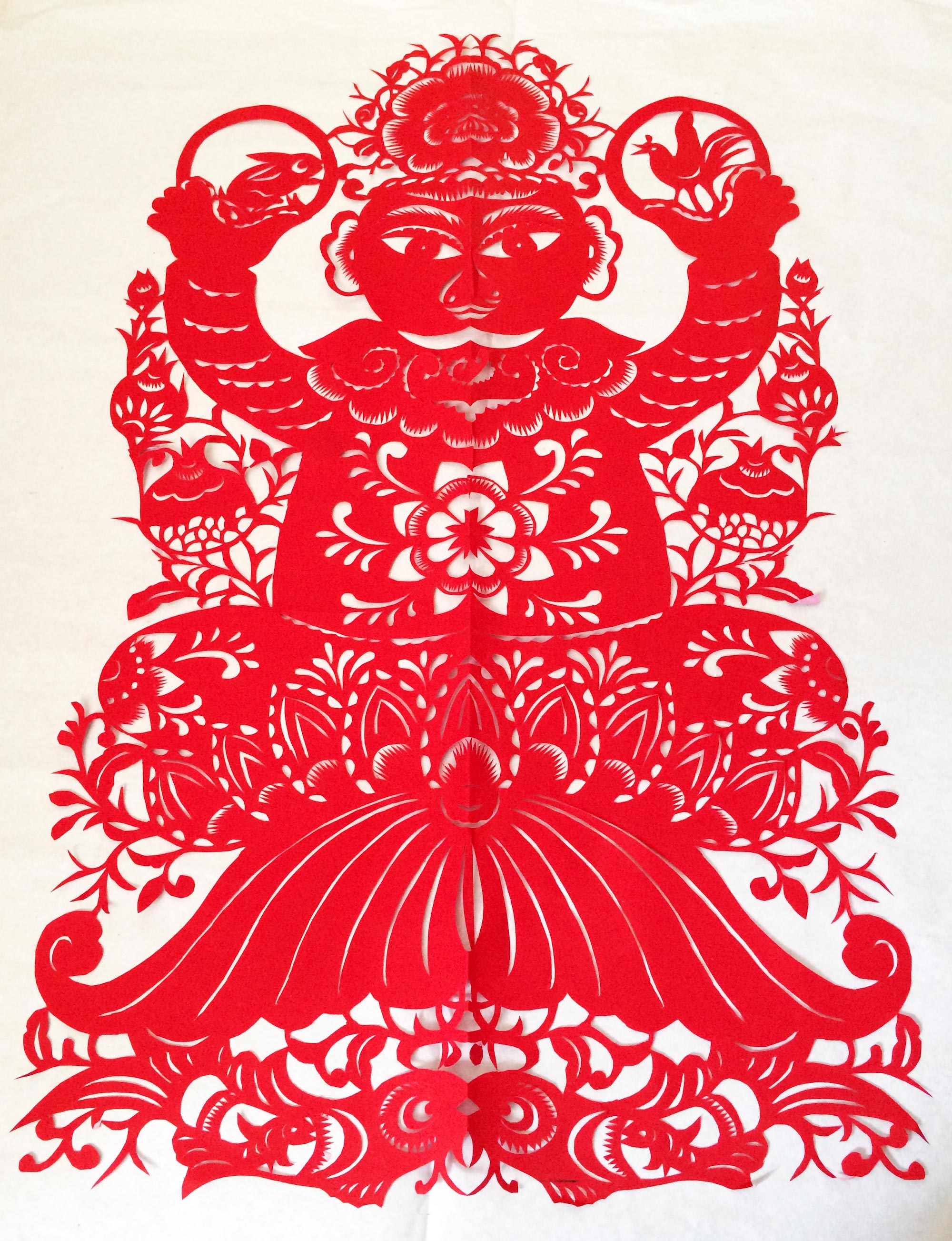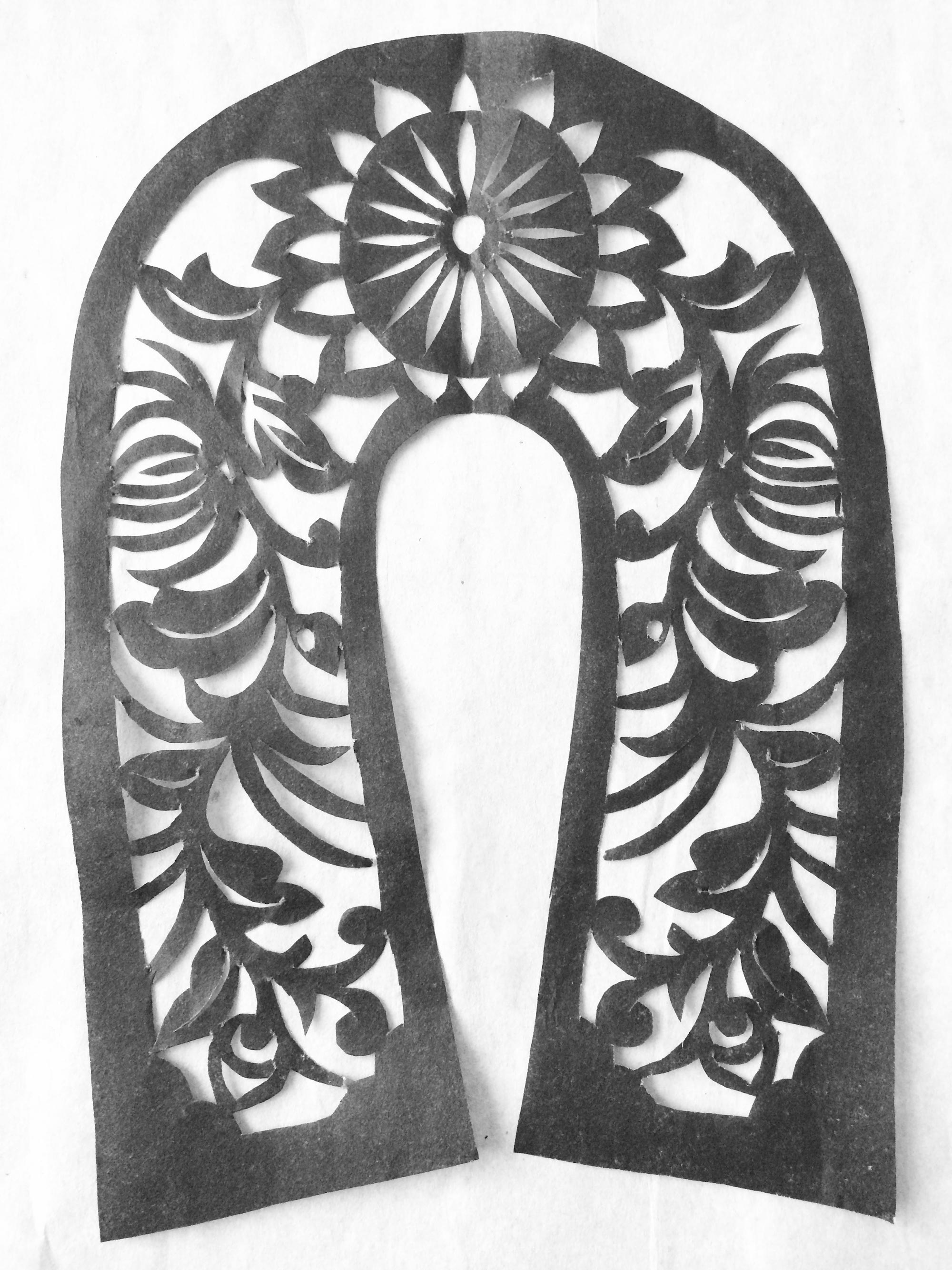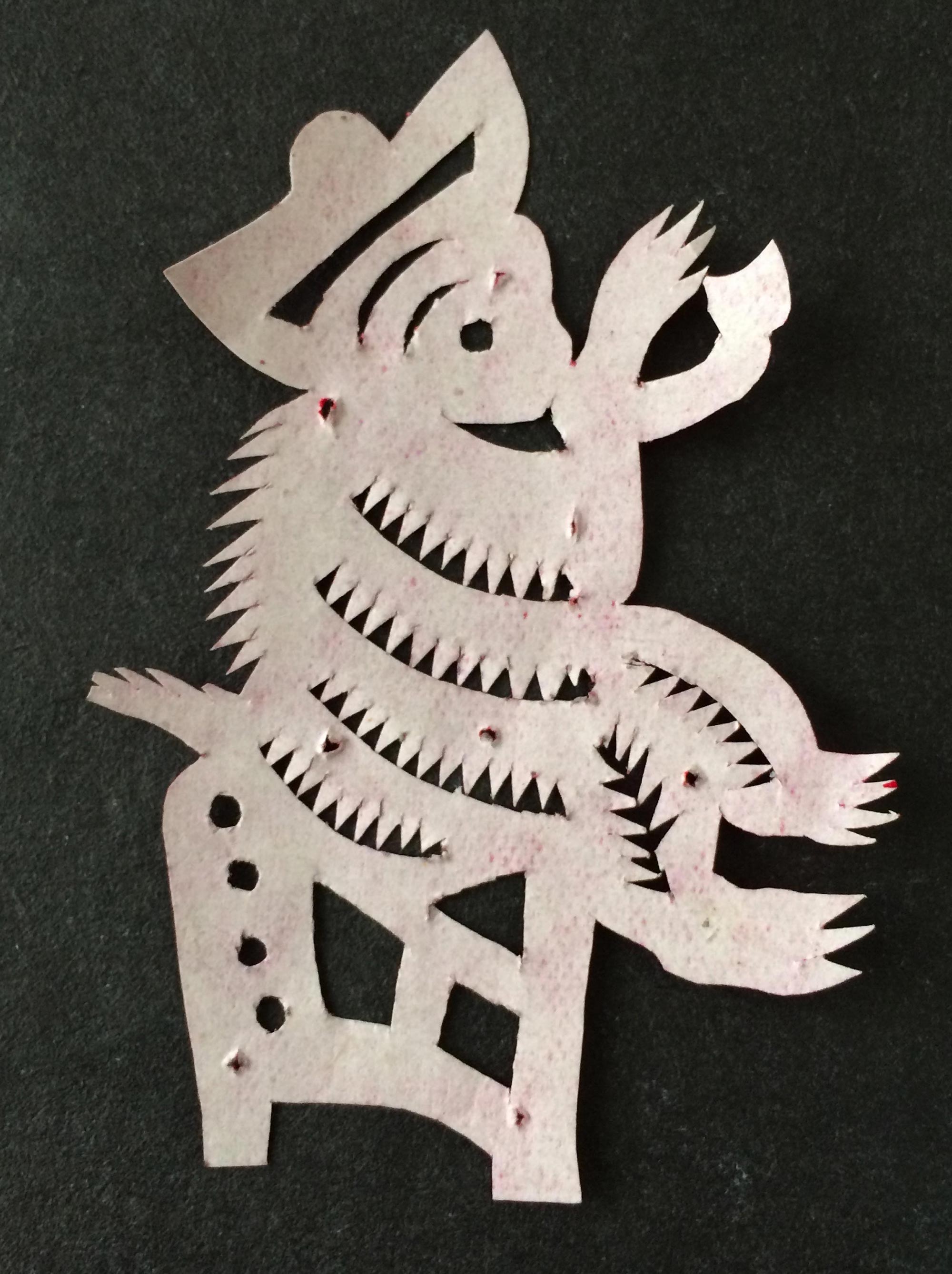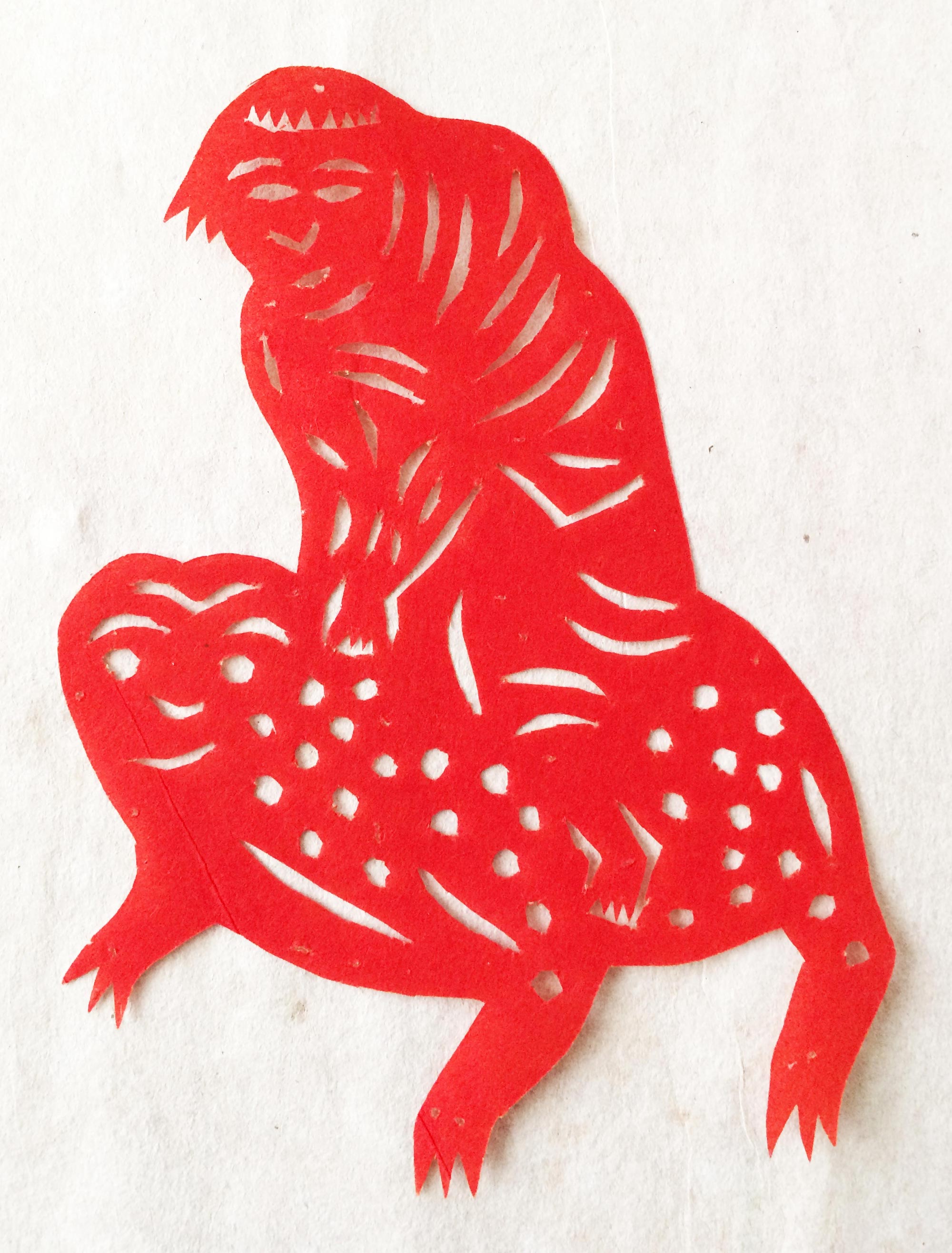 雷蓬岗的作品较好地吸收了当地民间剪纸的特点,造型传统、质朴、剪工利落,对庙宇剪纸的风格特点有一定的研究。