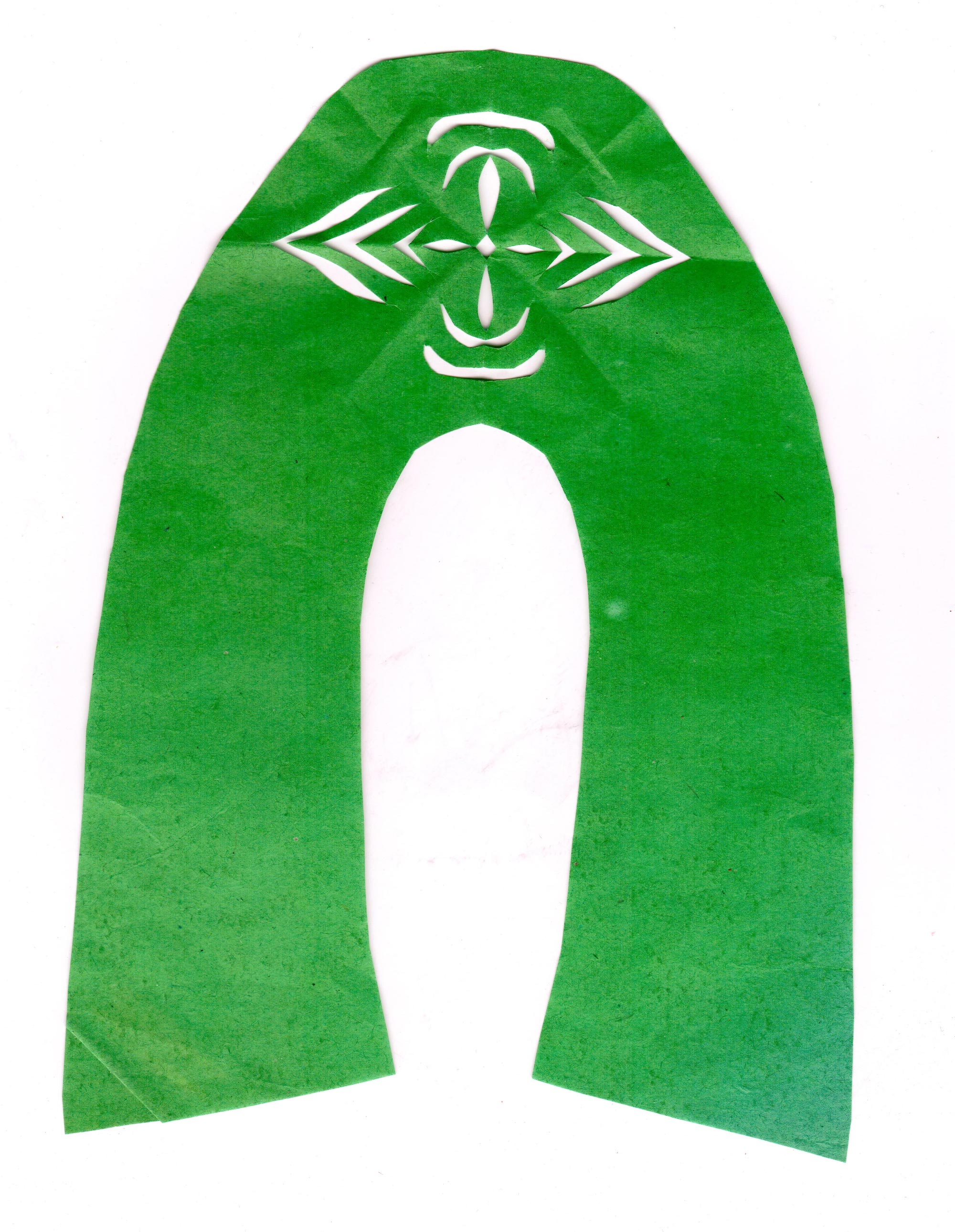20世纪80年代,村上庙会恢复,她同村上一群老婆婆们信了佛。村里有庙会,她和信佛的婆婆们给神剪糊衣袍、鞋帽,剪神幡经幡。村上有过白事的人家,她给剪棺罩上的云云,给亡人剪搭帘剪桌裙,蒸花馍。有过红事的人家,她给剪喜字、剪顶棚花、脸盆花。有村人的孩子受到惊吓或哭闹不止,她去给剪“等身娃娃”,给禳病、招魂。薛芳兰说,自嫁到大南村,给人剪纸无数,特别是村上过四月八、七月二庙会以及邻村过庙会,她一人在家给佛爷爷剪衣袍一次就20多套,糊鞋50多双,一半个月着剪。给佛爷爷送衣袍,就是让爷爷保佑家人好,村人好,都能过上好日子。