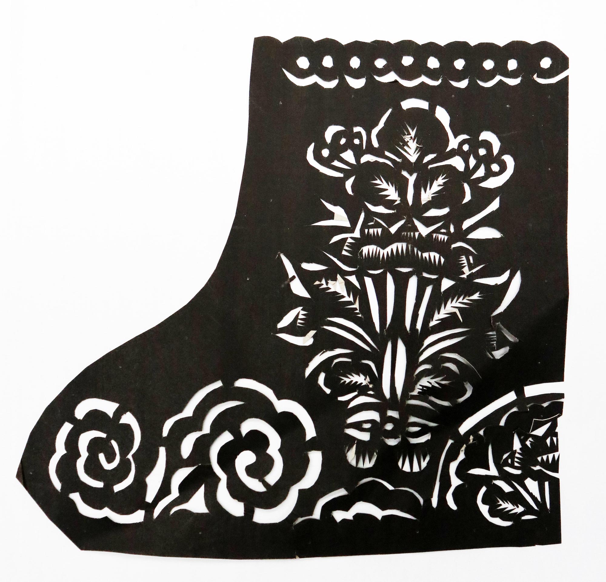 薛芳兰收藏了她近30年剪的200余幅神衣神袍上的各种花样,以及神靴神鞋花样,还有好多喜花样。