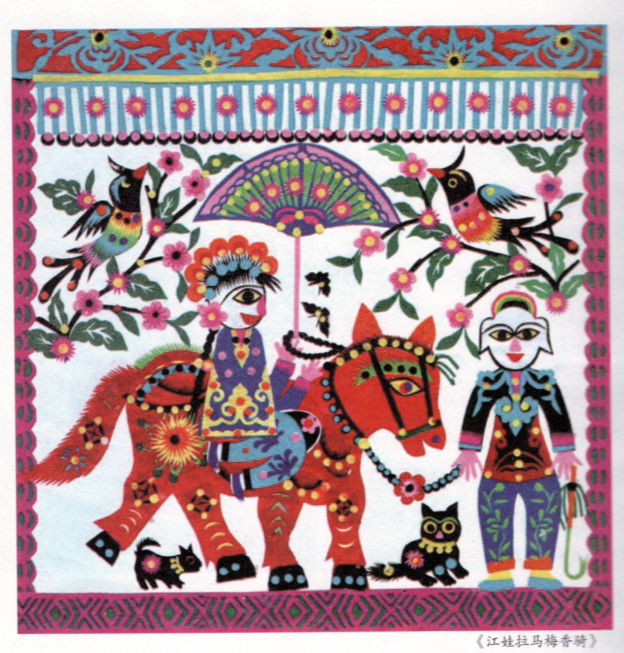 周喜莲很小的时候就对绘画、剪纸产生兴趣,经常看父亲拿回来的字画,绸缎上的花样,很好奇,一看就是半个多小时。从小受母亲的影响,她看到什么就剪什么。在12岁就开始创作小幅剪纸,在母亲的严格指教下周喜莲还学会了各种女红手艺。