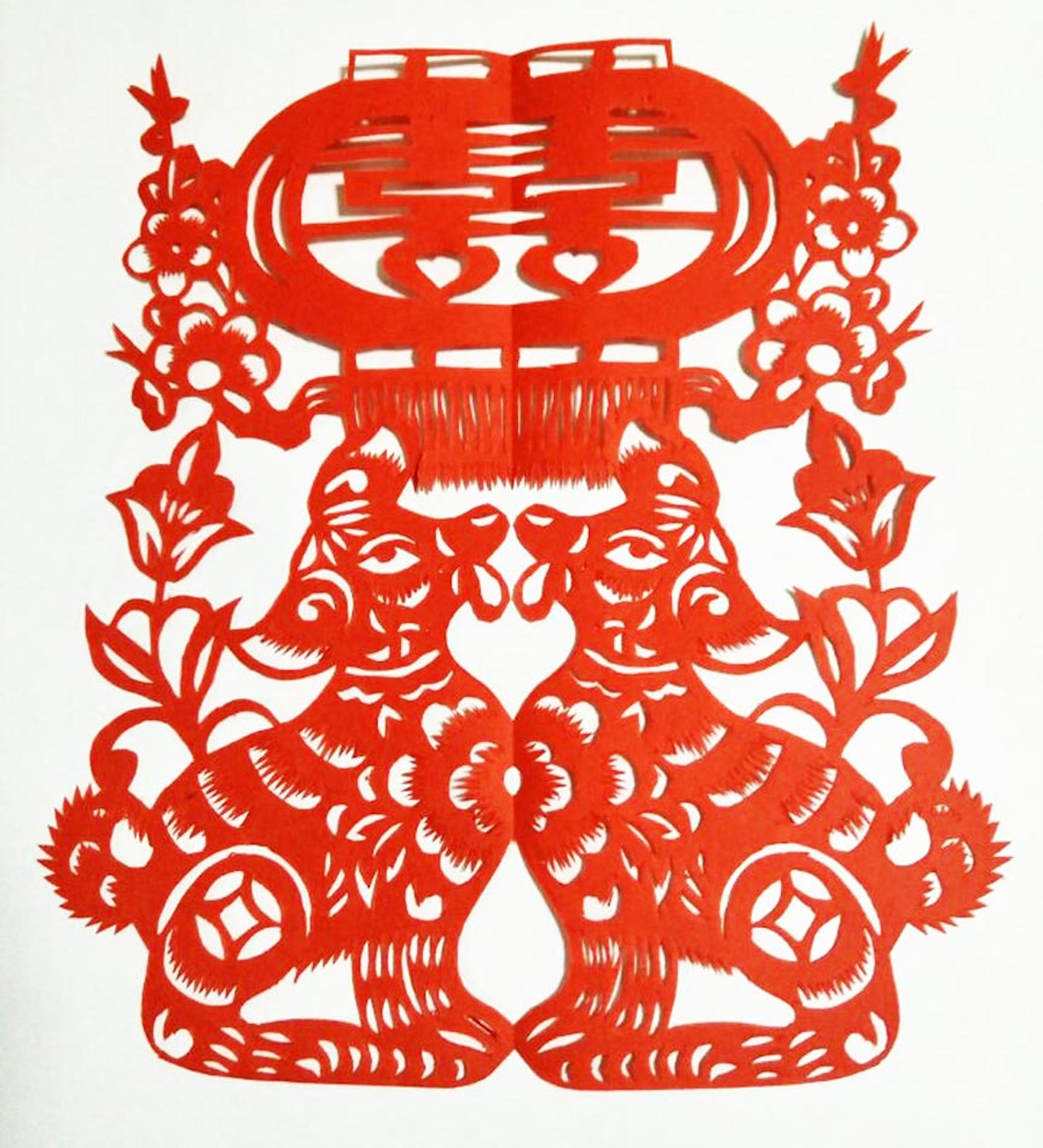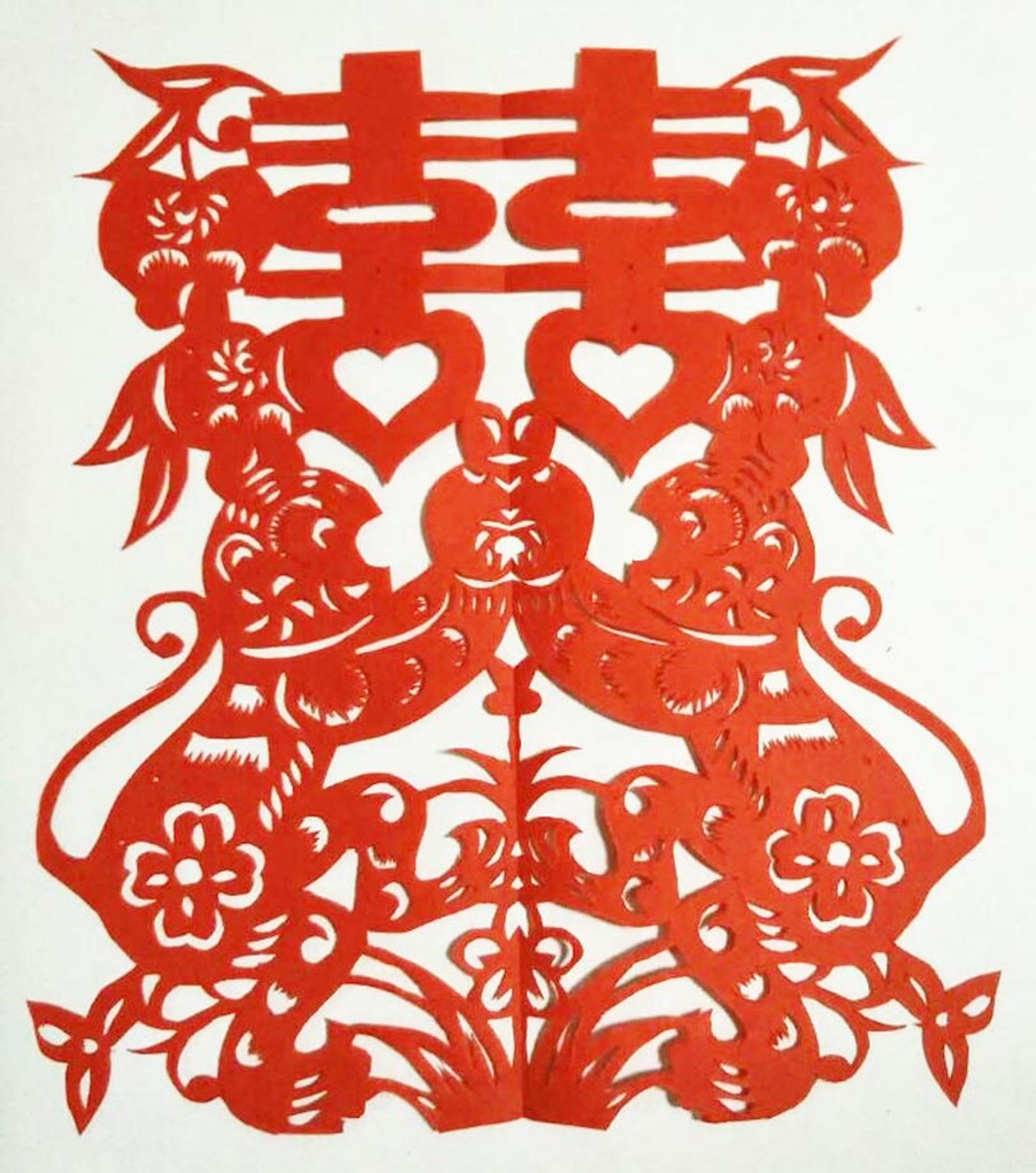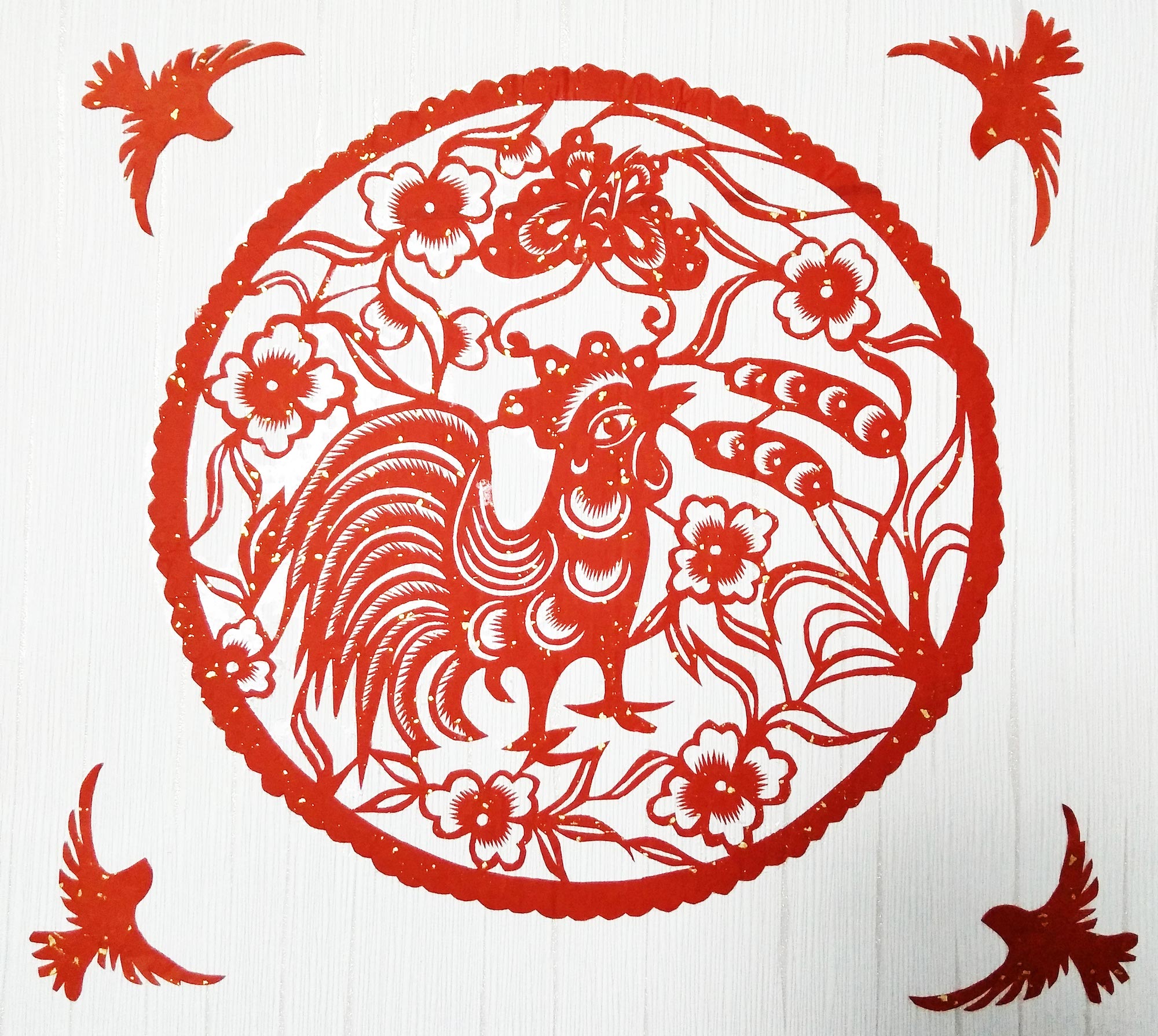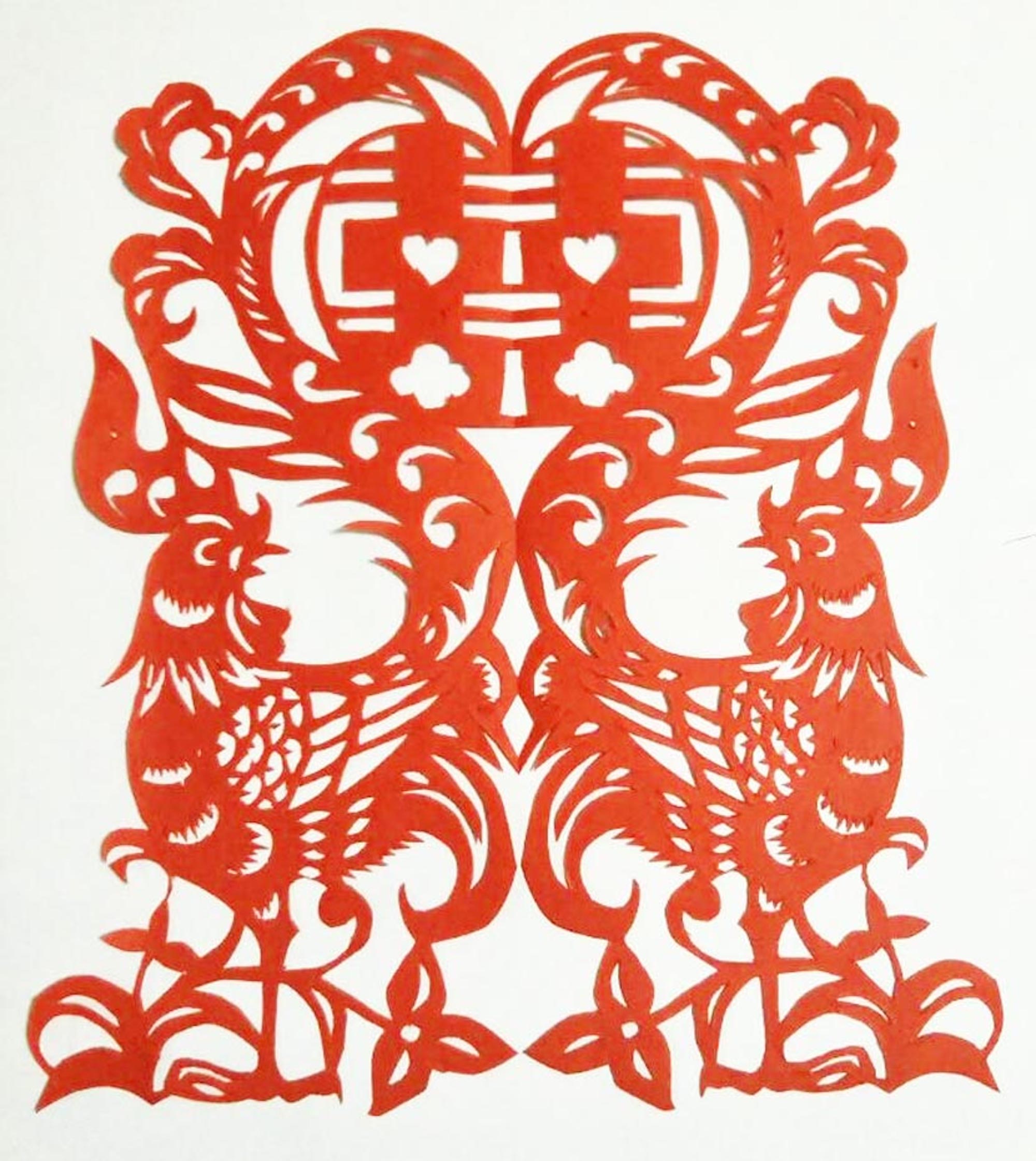 郭亚利,女,1974年8月20日生,汉族。家中姊妹3人,她排行老二,有一姐一弟,都不会剪纸。母亲会简单剪纸刺绣,都是小时候自学。郭亚利8岁上学,上了九年,初中毕业,放学放假常期帮家里干活。十岁开始学剪纸,十三四岁开始学刺绣。小时候特别喜欢剪纸,但因家庭贫穷,母亲舍不得把剪刀给孩子乱用,她就用指甲撕花,撕各种图案,团花、喜字,自己学,第一幅撕的是喜字,用笔写下来照着撕的。学的时候什么都剪,有空的时候就剪,但父母不支持她学剪纸。都是偷着自己剪,直到婚后有了自由,才开始认真剪纸。当时冒剪还不熟练,因为在城里居住,那时已经没有太多贴窗花的习俗。
