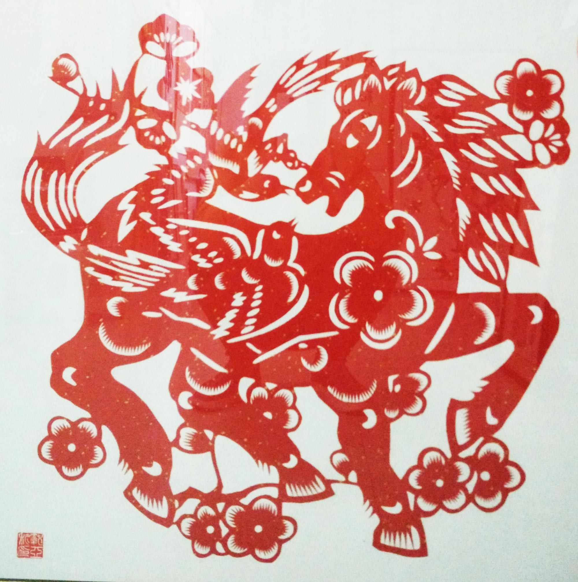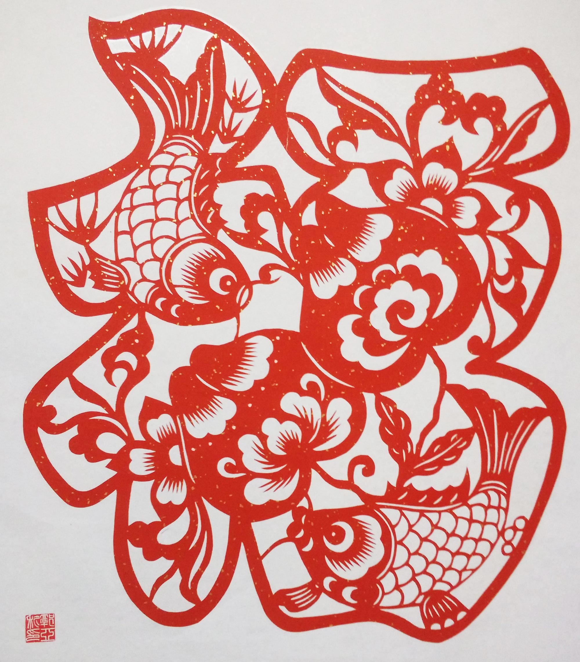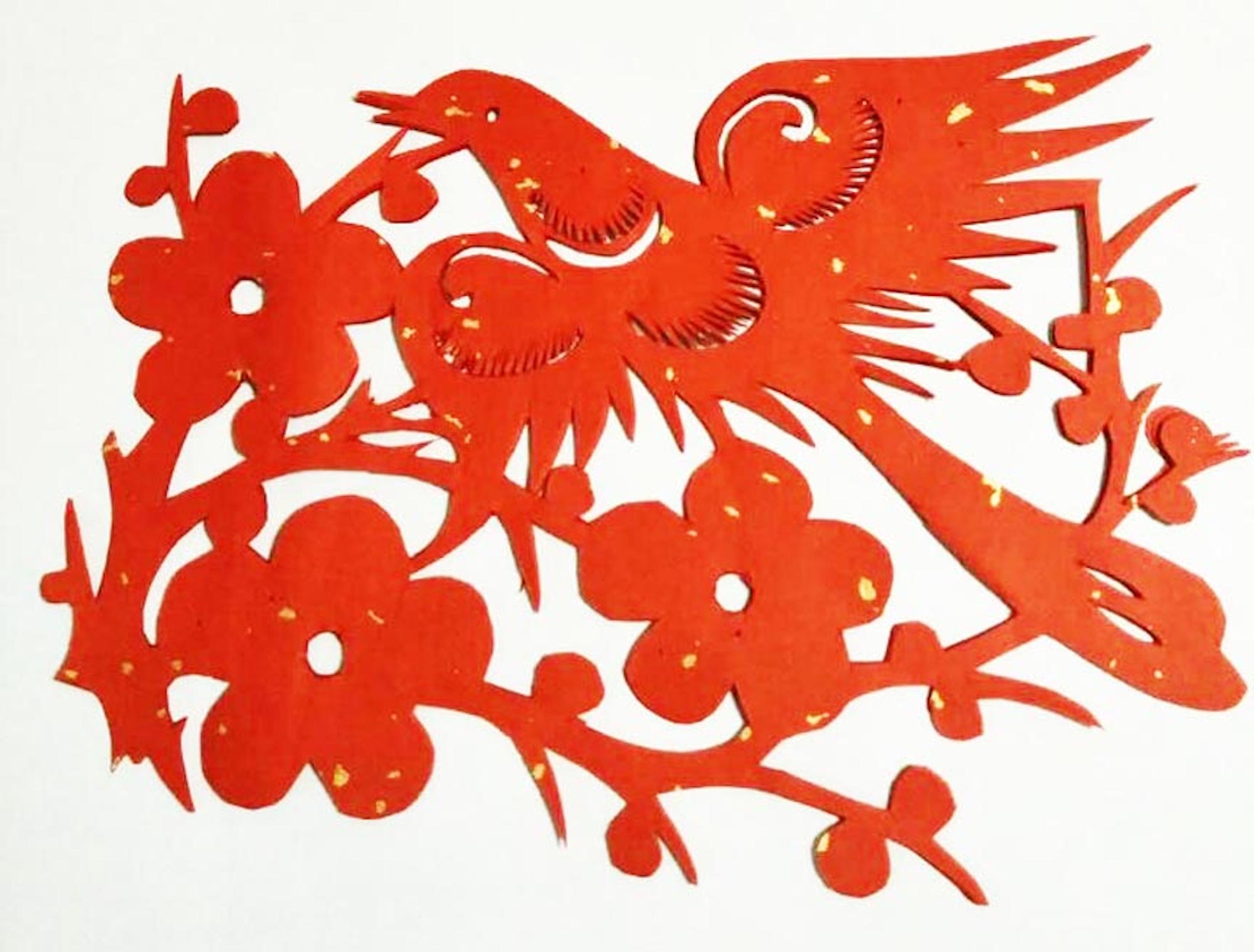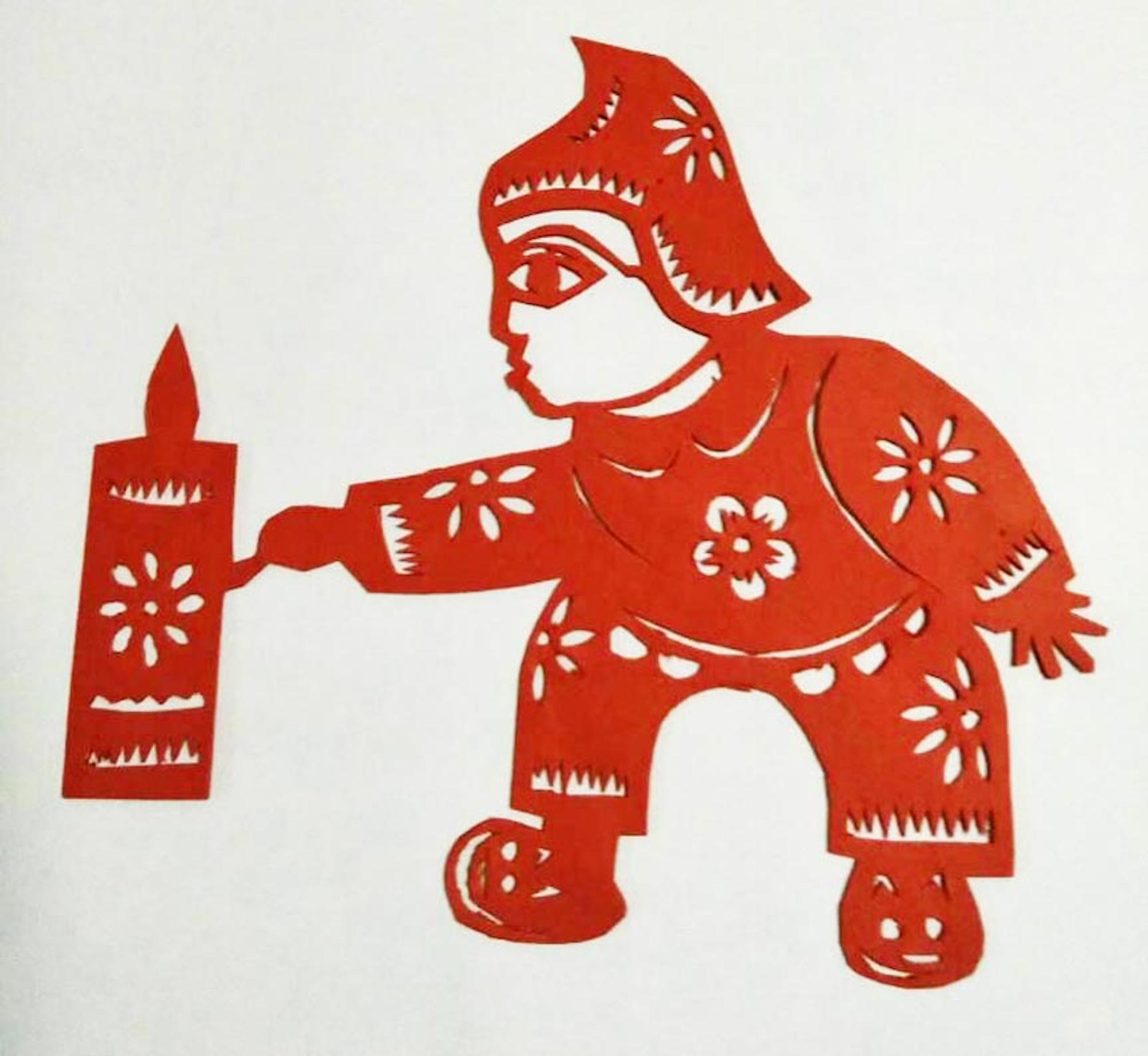 郭亚利,女,1974年8月20日生,汉族。家中姊妹3人,她排行老二,有一姐一弟,都不会剪纸。母亲会简单剪纸刺绣,都是小时候自学。郭亚利8岁上学,上了九年,初中毕业,放学放假常期帮家里干活。十岁开始学剪纸,十三四岁开始学刺绣。小时候特别喜欢剪纸,但因家庭贫穷,母亲舍不得把剪刀给孩子乱用,她就用指甲撕花,撕各种图案,团花、喜字,自己学,第一幅撕的是喜字,用笔写下来照着撕的。学的时候什么都剪,有空的时候就剪,但父母不支持她学剪纸。都是偷着自己剪,直到婚后有了自由,才开始认真剪纸。当时冒剪还不熟练,因为在城里居住,那时已经没有太多贴窗花的习俗。