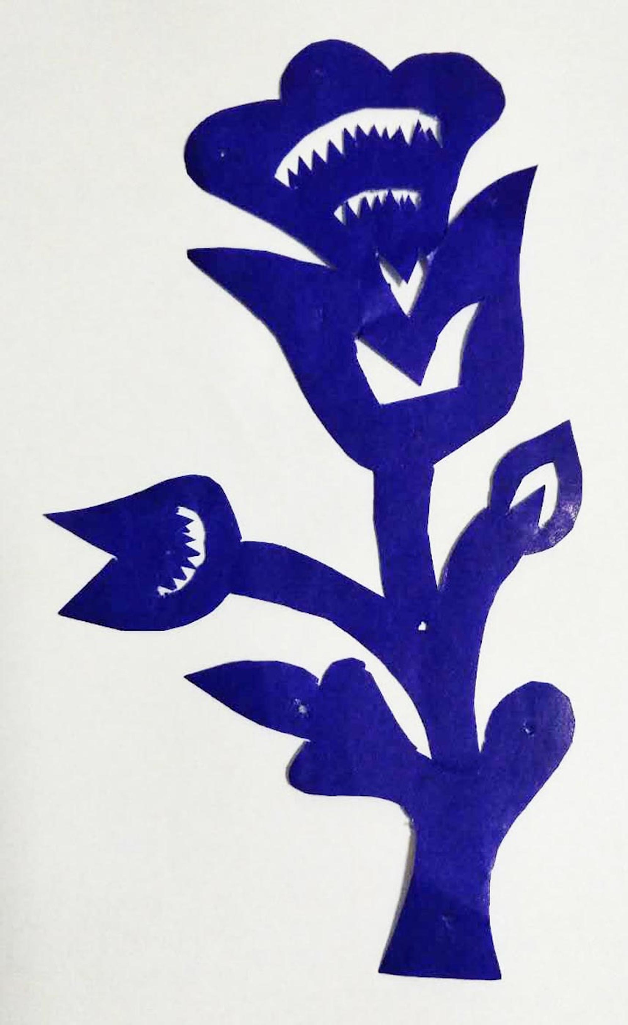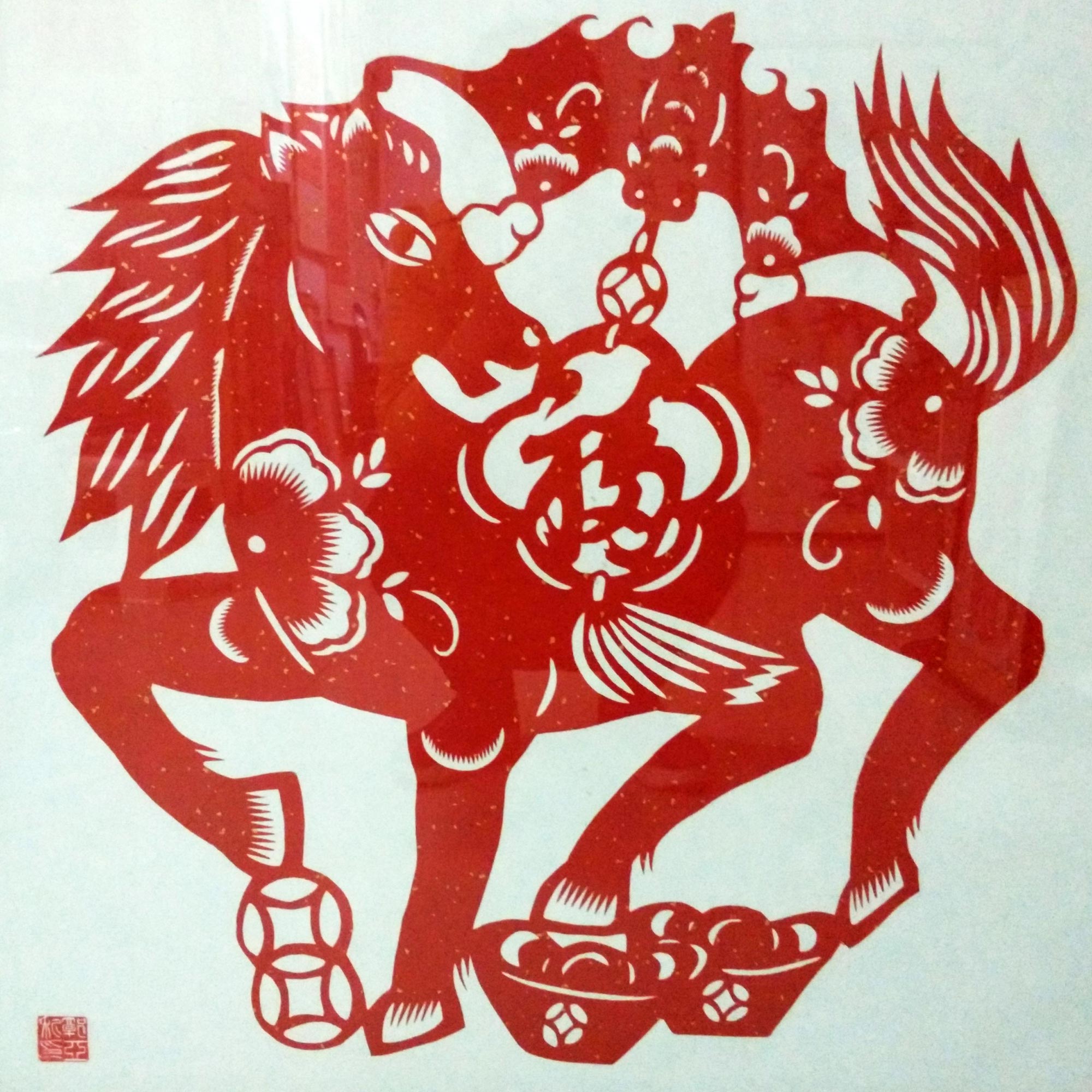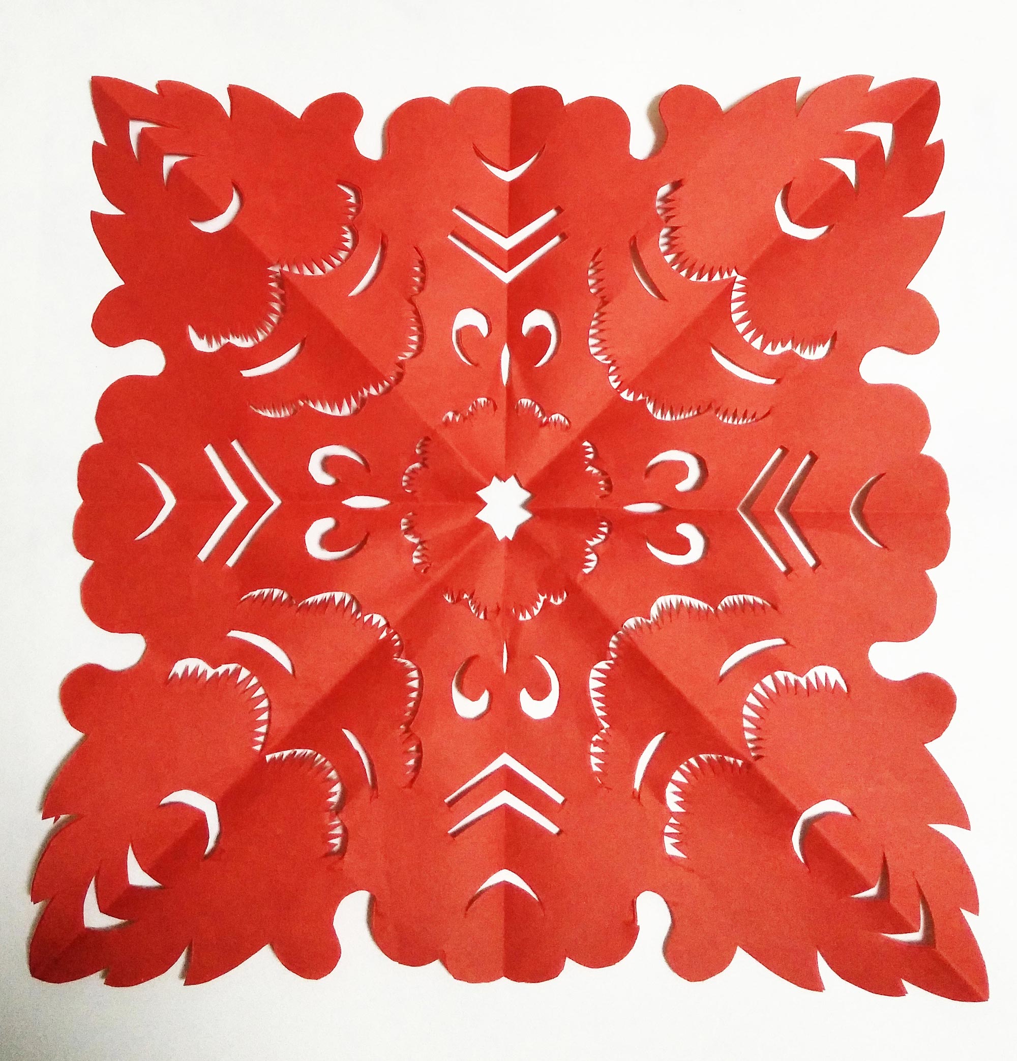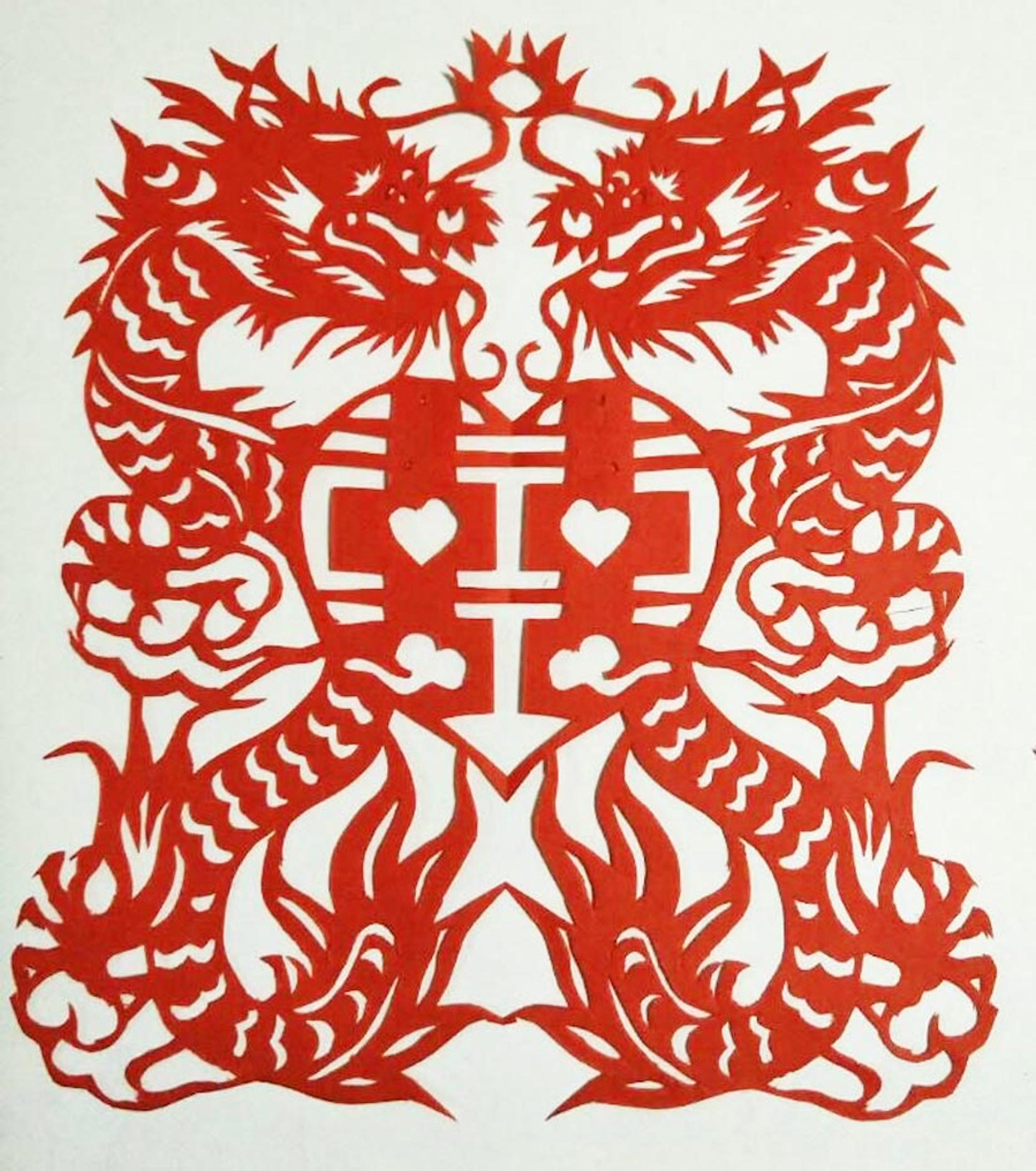 郭亚利,女,1974年8月20日生,汉族。家中姊妹3人,她排行老二,有一姐一弟,都不会剪纸。母亲会简单剪纸刺绣,都是小时候自学。郭亚利8岁上学,上了九年,初中毕业,放学放假常期帮家里干活。十岁开始学剪纸,十三四岁开始学刺绣。小时候特别喜欢剪纸,但因家庭贫穷,母亲舍不得把剪刀给孩子乱用,她就用指甲撕花,撕各种图案,团花、喜字,自己学,第一幅撕的是喜字,用笔写下来照着撕的。学的时候什么都剪,有空的时候就剪,但父母不支持她学剪纸。都是偷着自己剪,直到婚后有了自由,才开始认真剪纸。当时冒剪还不熟练,因为在城里居住,那时已经没有太多贴窗花的习俗。