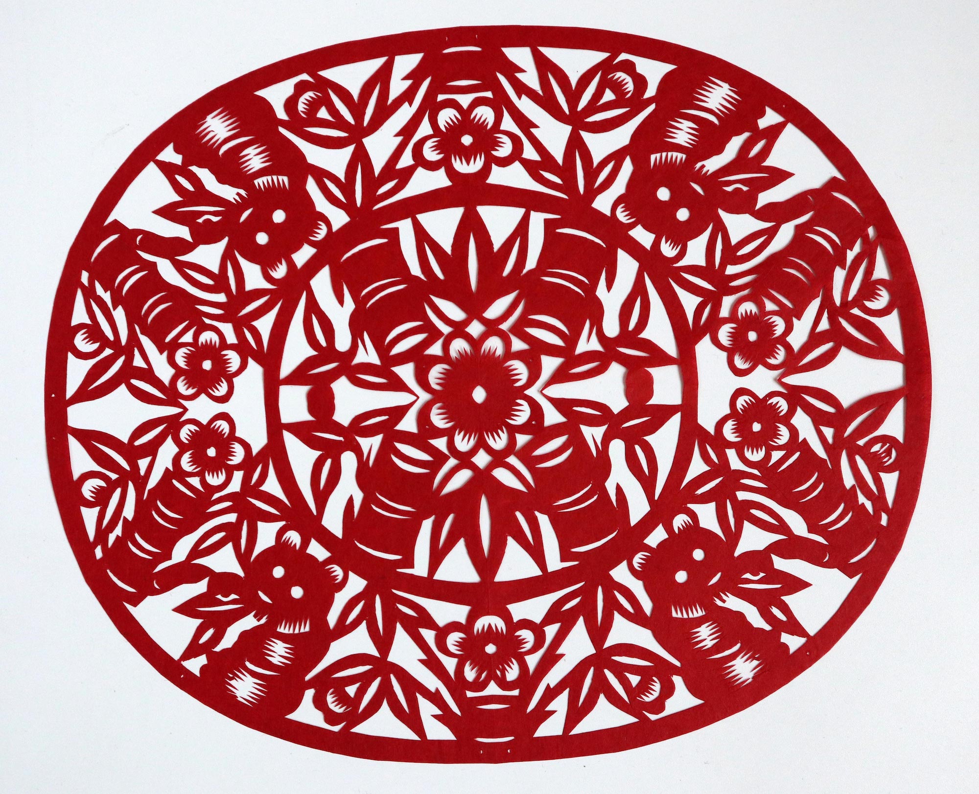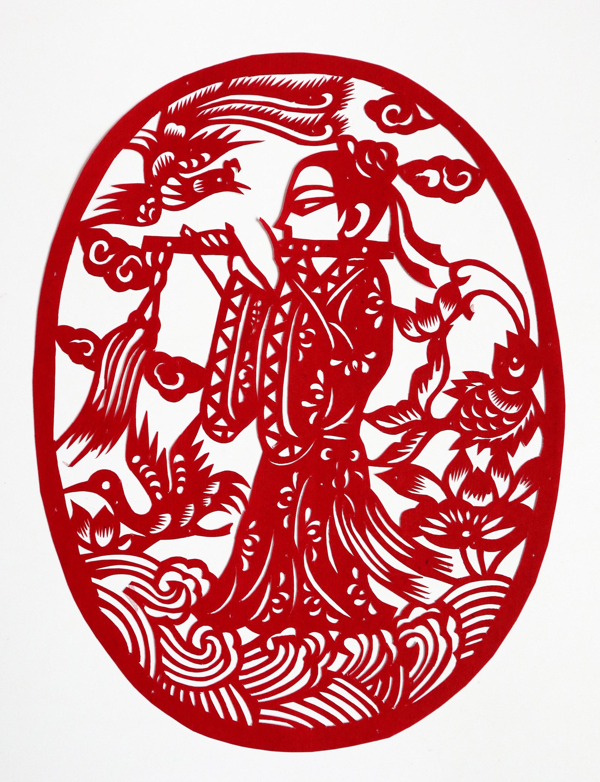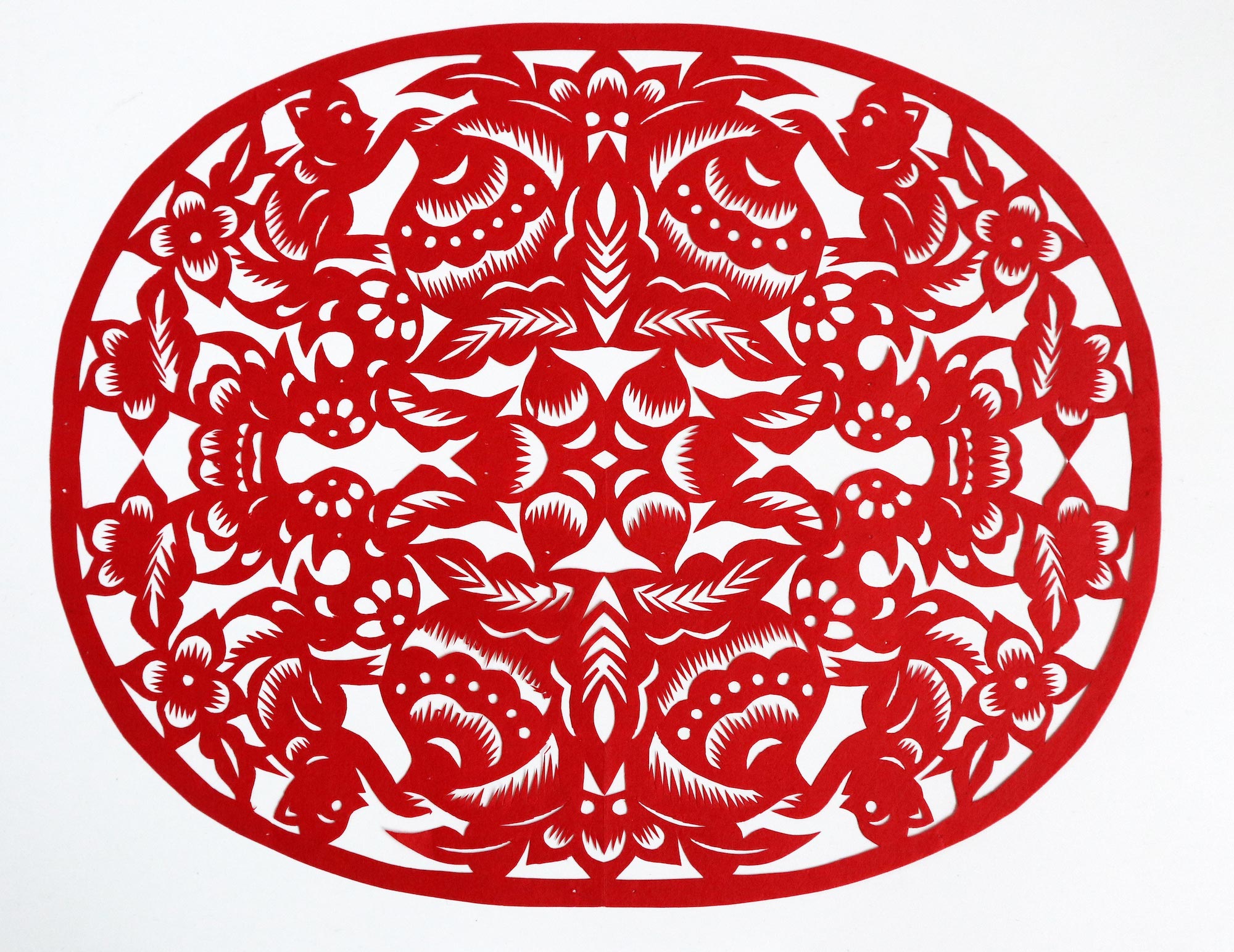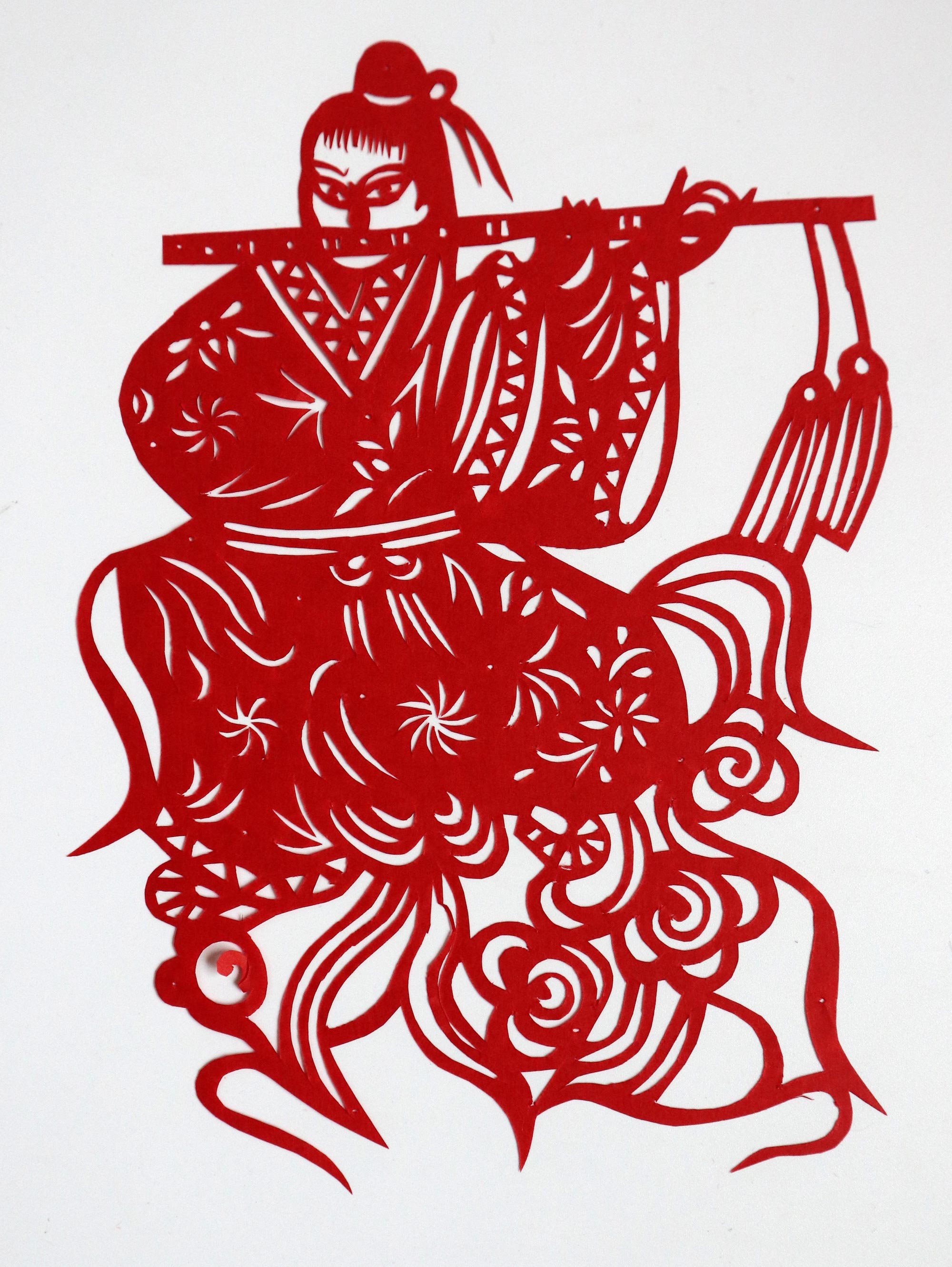 罗洁1992年结婚,那时20岁。结婚时的嫁妆中有母亲剪的花样也有她自己剪的。丈夫对妻子剪纸很是支持。婚后生育有两个孩子,一女一儿孩子小的时候忙着带孩子,都是农忙之后抽时间剪纸。现在孩子大了,罗洁有了更多时间全身心投入其中,家人也全力支持,在家没事的时候就开始搞创作。有几次母亲有事,她代替母亲给旬邑县逸夫小学剪纸班授课。