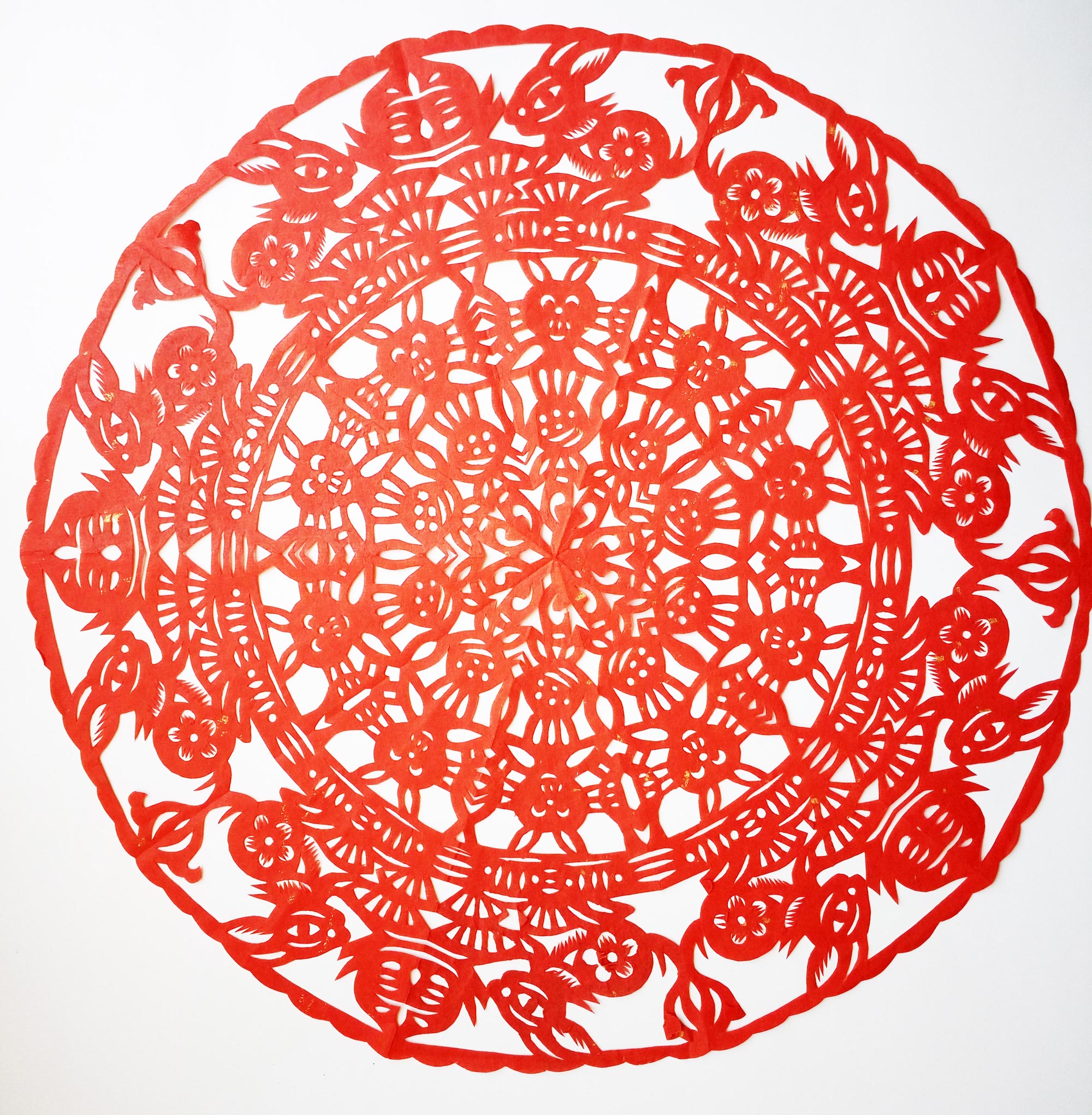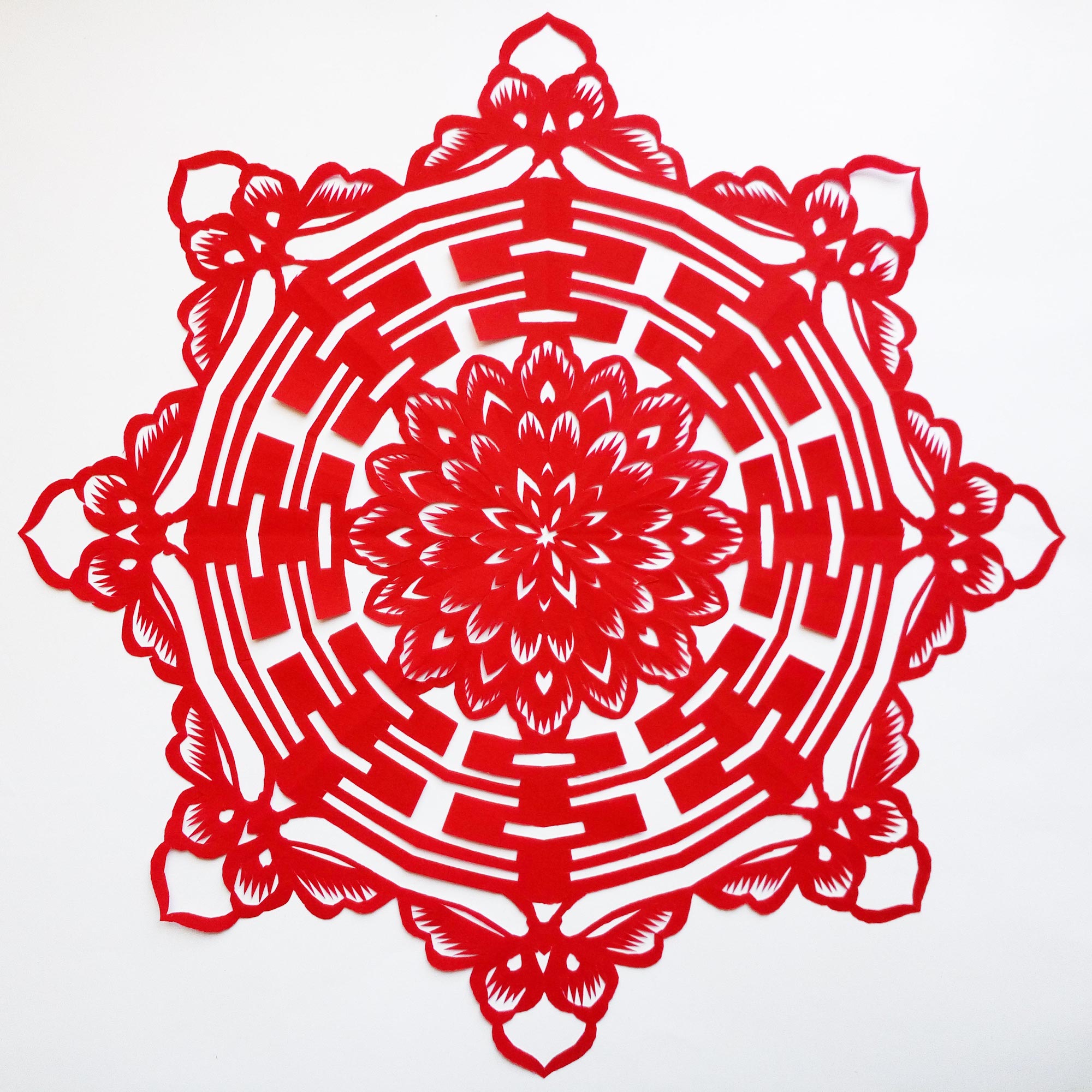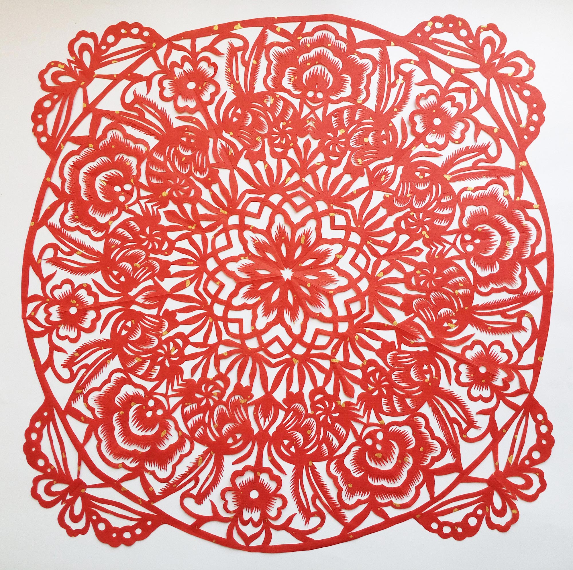 1982年结婚,当时26岁,结婚的嫁妆都是在母亲的指导下自己剪自己绣的的。公公读过一点书,以种地为生,有做灯笼的手艺。每到腊月,公公都会做些各式各样的灯笼在县城去买,来补贴家用。婆婆不识字,擅长剪纸、刺绣等女工活。丈夫是干部,大专文化程度,喜欢写书法、画画,对妻子的剪花很支持。在村中,村民们过红白喜事都离不开她,写对联,剪窗喜花,白事做饭菜等等。她育有两个孩子,现在都已经大学毕业上班了。女儿对剪纸兴趣较浓,但因带孩子只能在晚上待孩子睡后才挤点时间去剪。