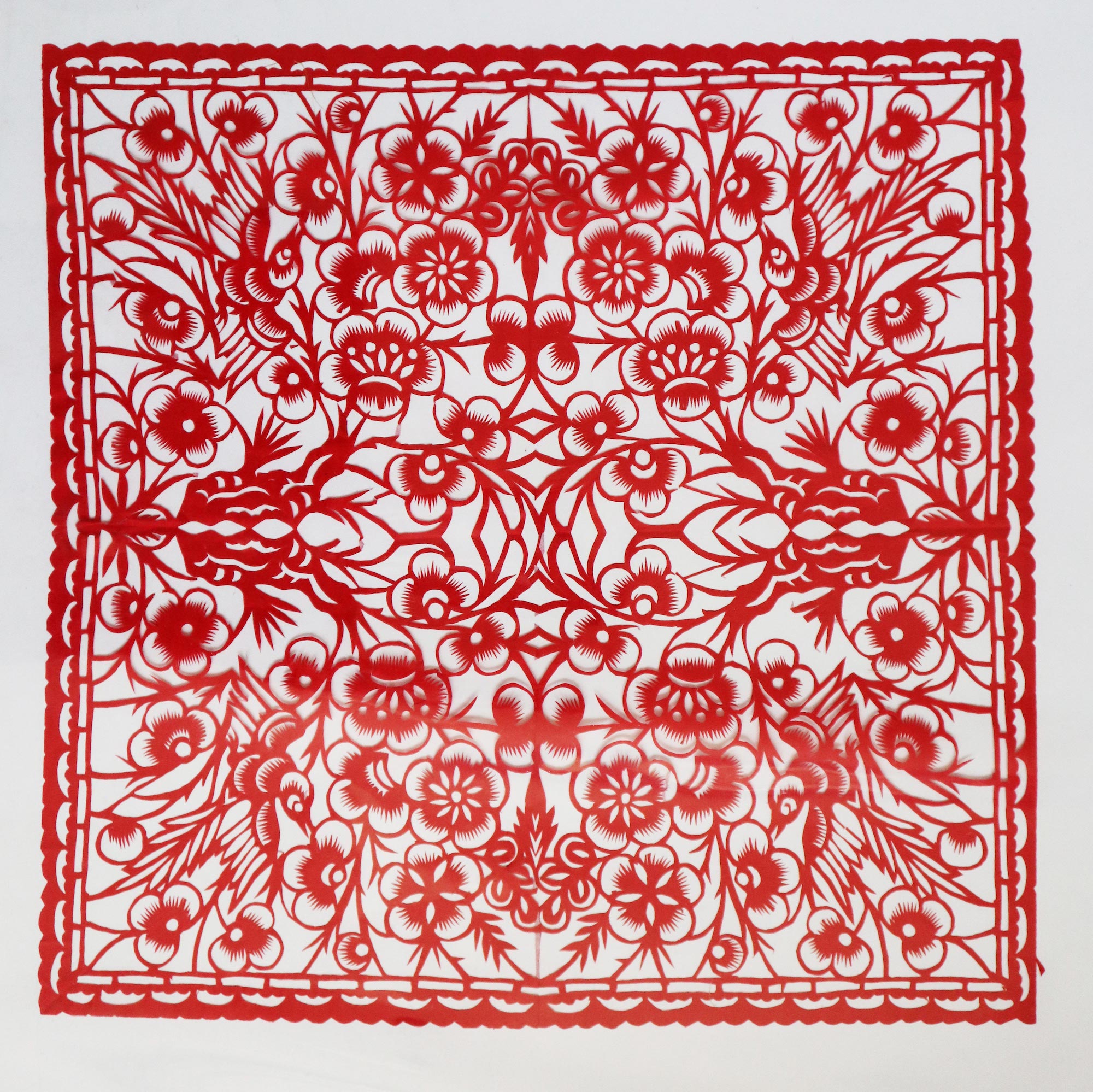 王彩霞1970年结婚,当时19岁。结婚时的嫁妆都是自己亲手做的。丈夫初中文化,农民,没有什么爱好,但对妻子剪纸特别支持。王彩霞是一个能干的人,曾在妇联、卫生、计划生育等部门工作近30年。从很小的时候就开始冒剪,那时主要剪一些民俗窗花。30岁之后陆续创作了一些大作品,《狮子滚绣球》《喜鹊登梅》《凤凰戏牡丹》《金鱼闹莲花》等。